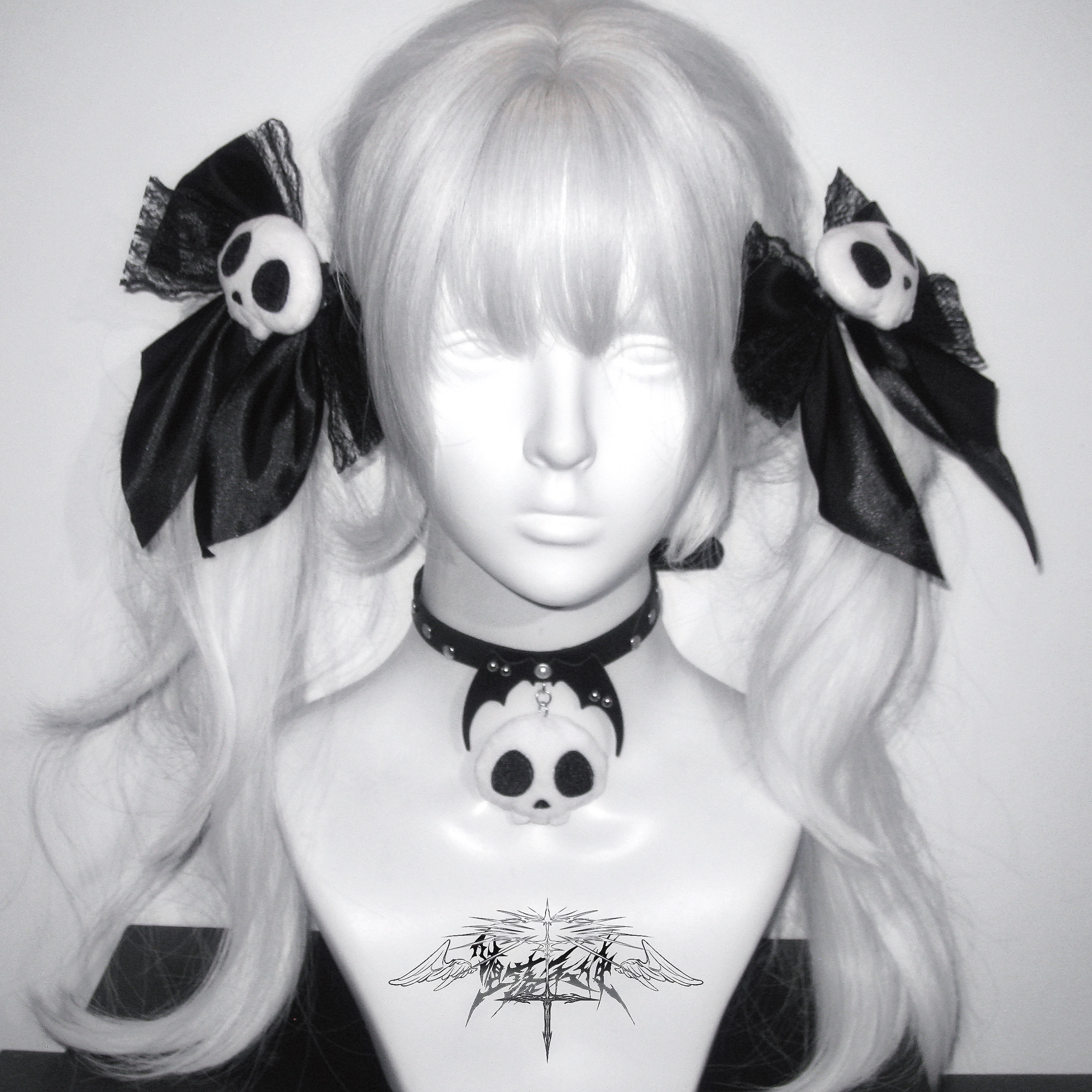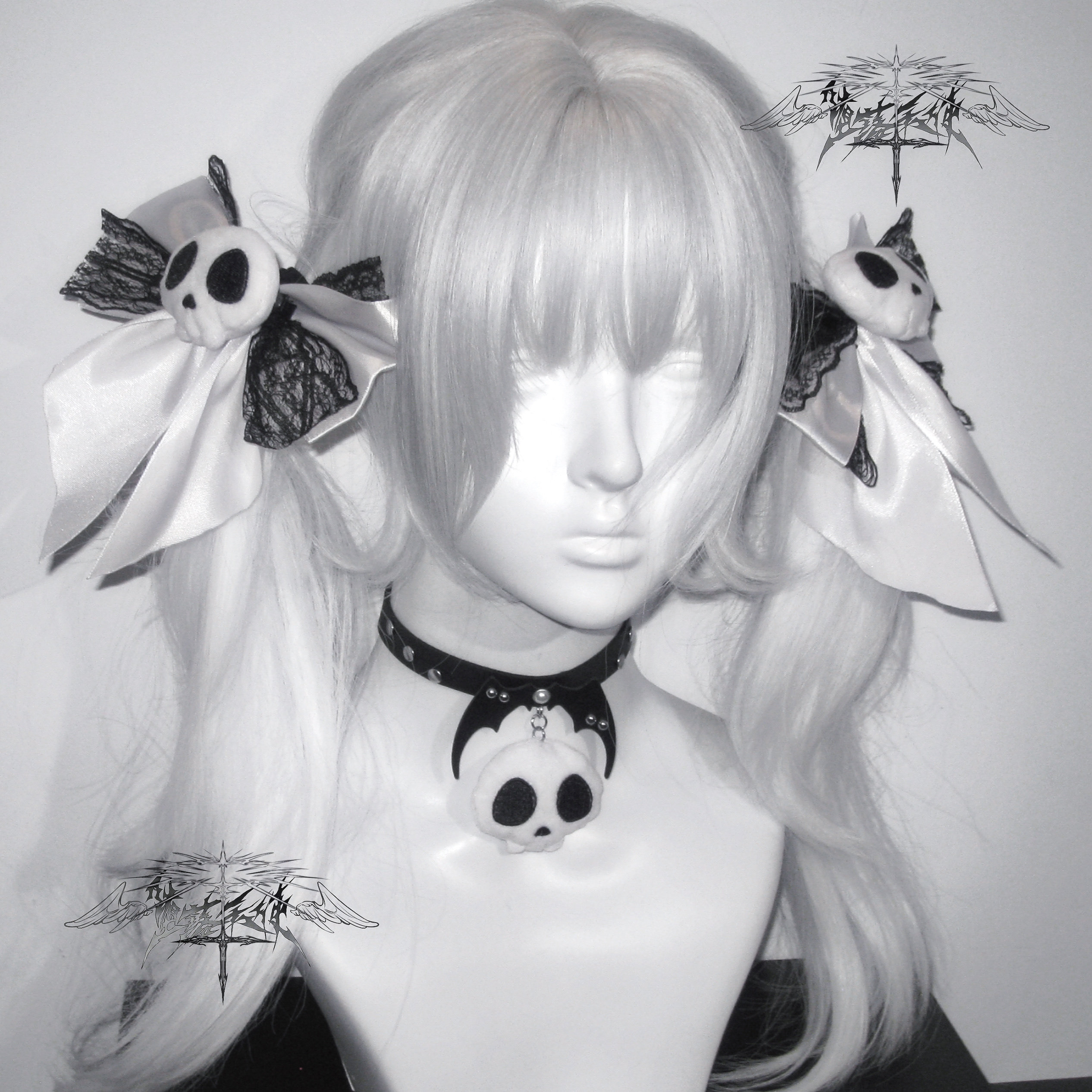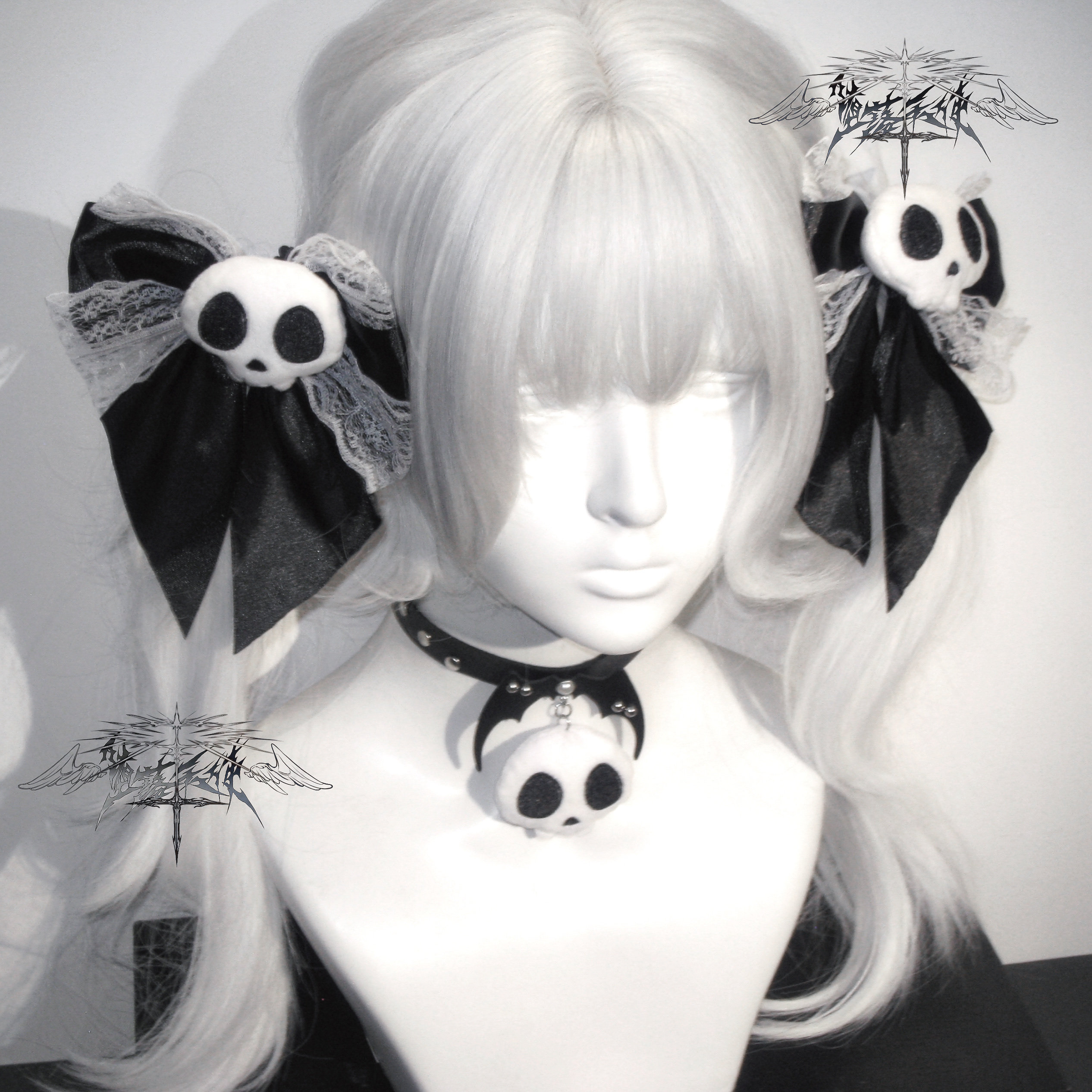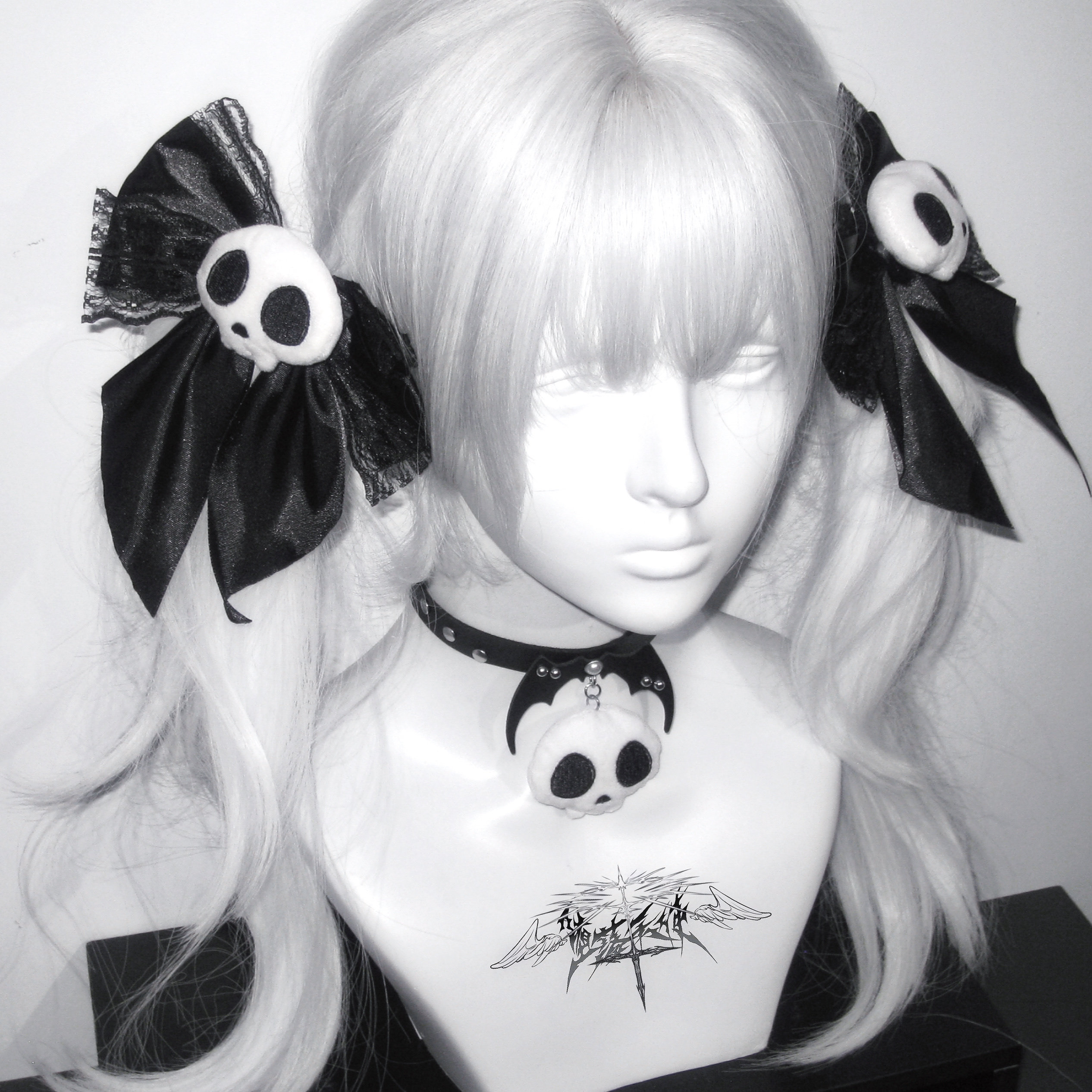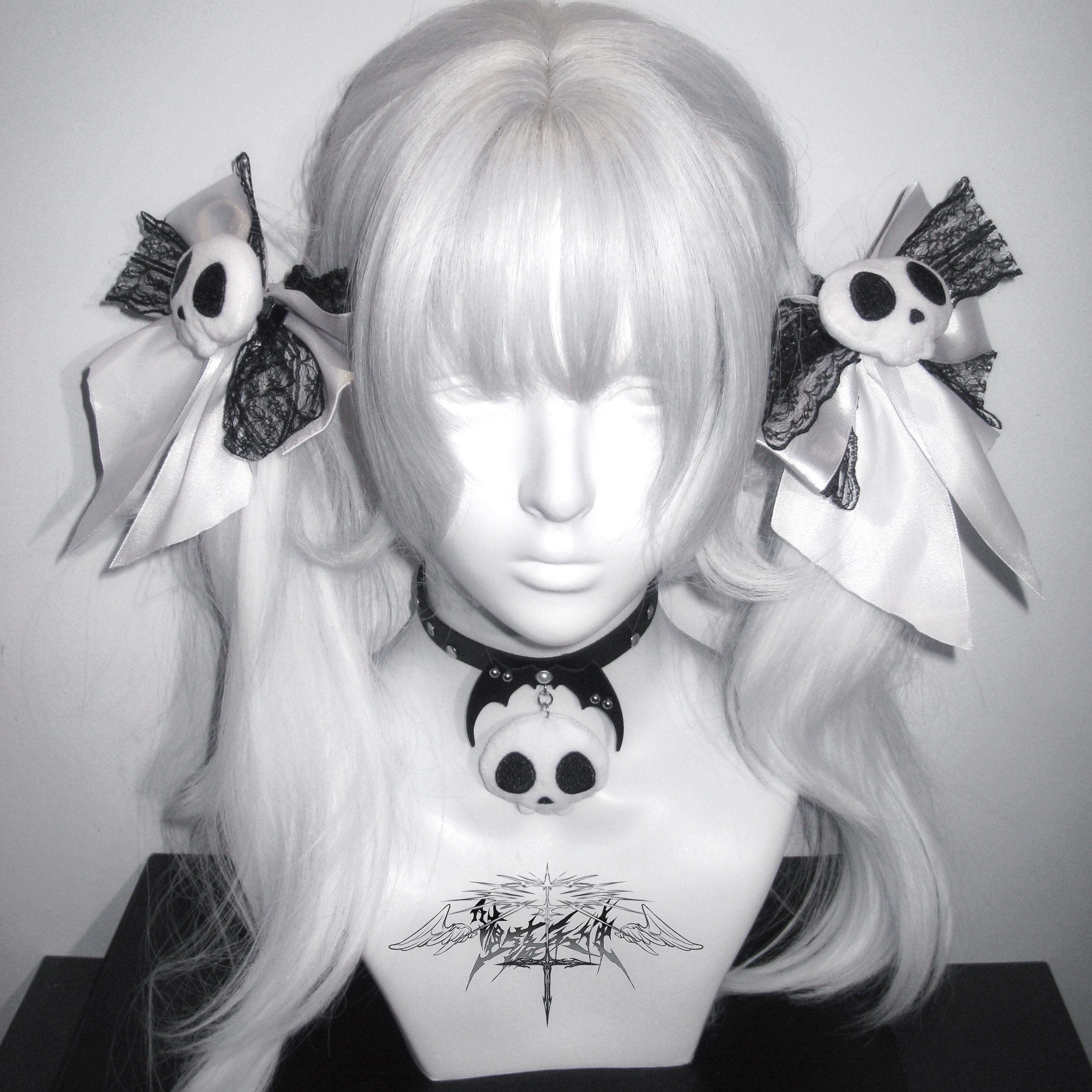Fallen Angel | Original Subculture Cute Skull Plush Bow Lace Hair Clip Punk Collar