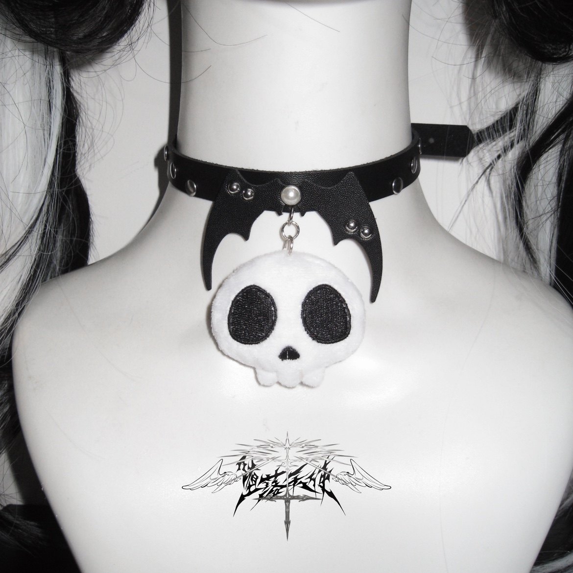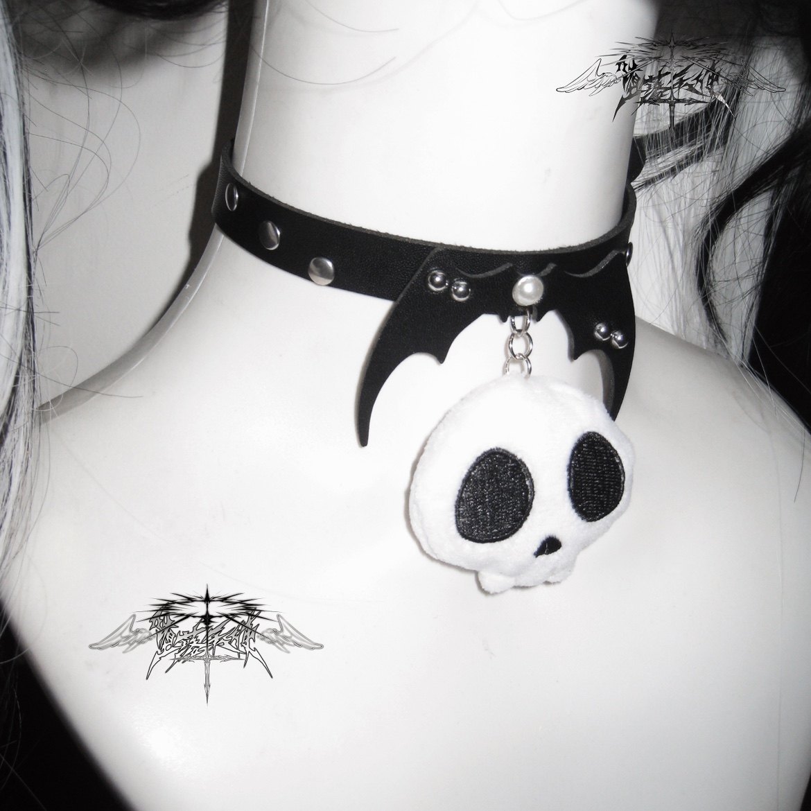 堕落天使|原创亚文化可爱头骨毛绒蝴蝶结蕾丝发夹朋克领 [Original Page Link]