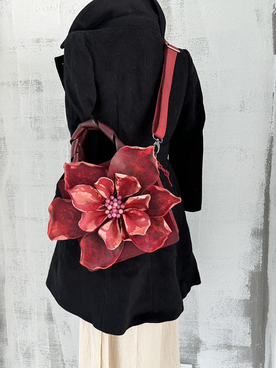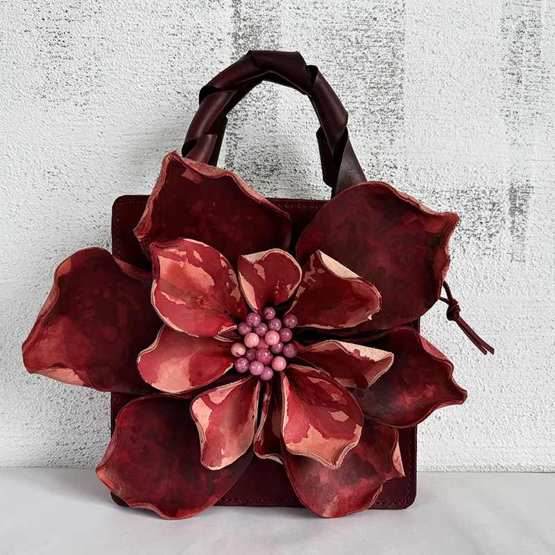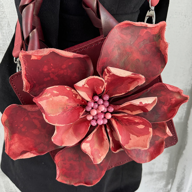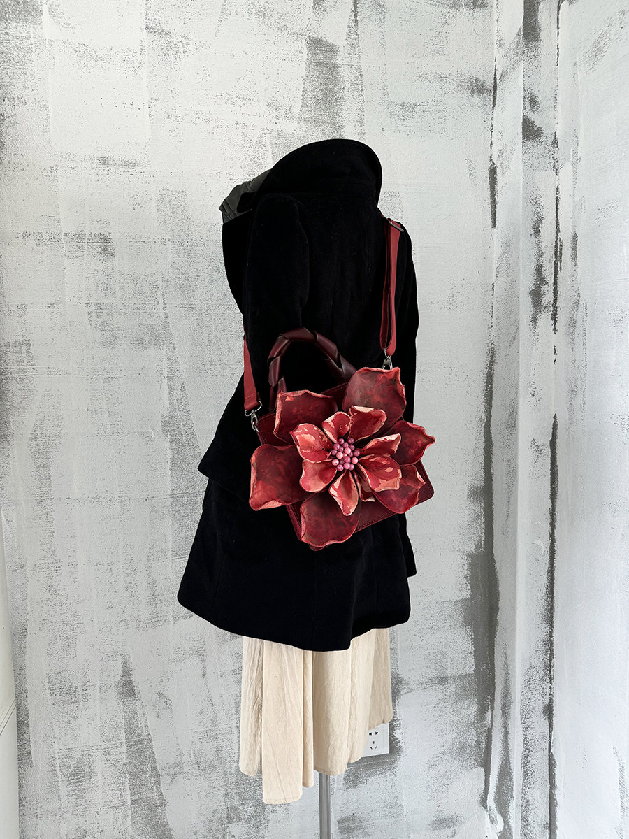【绽放】 真皮手工包优雅女 花瓣包 红粉 高贵气质 手提包 斜挎包 [Original Page Link]