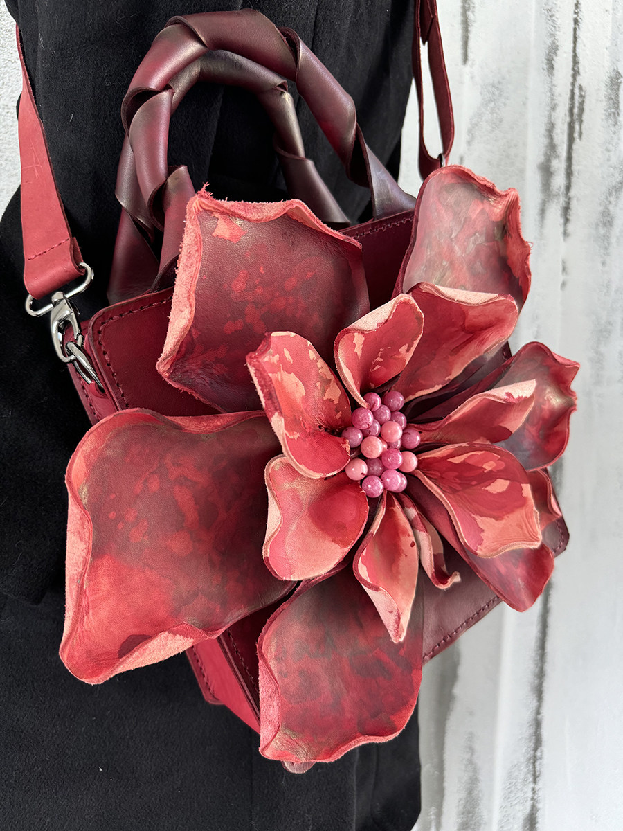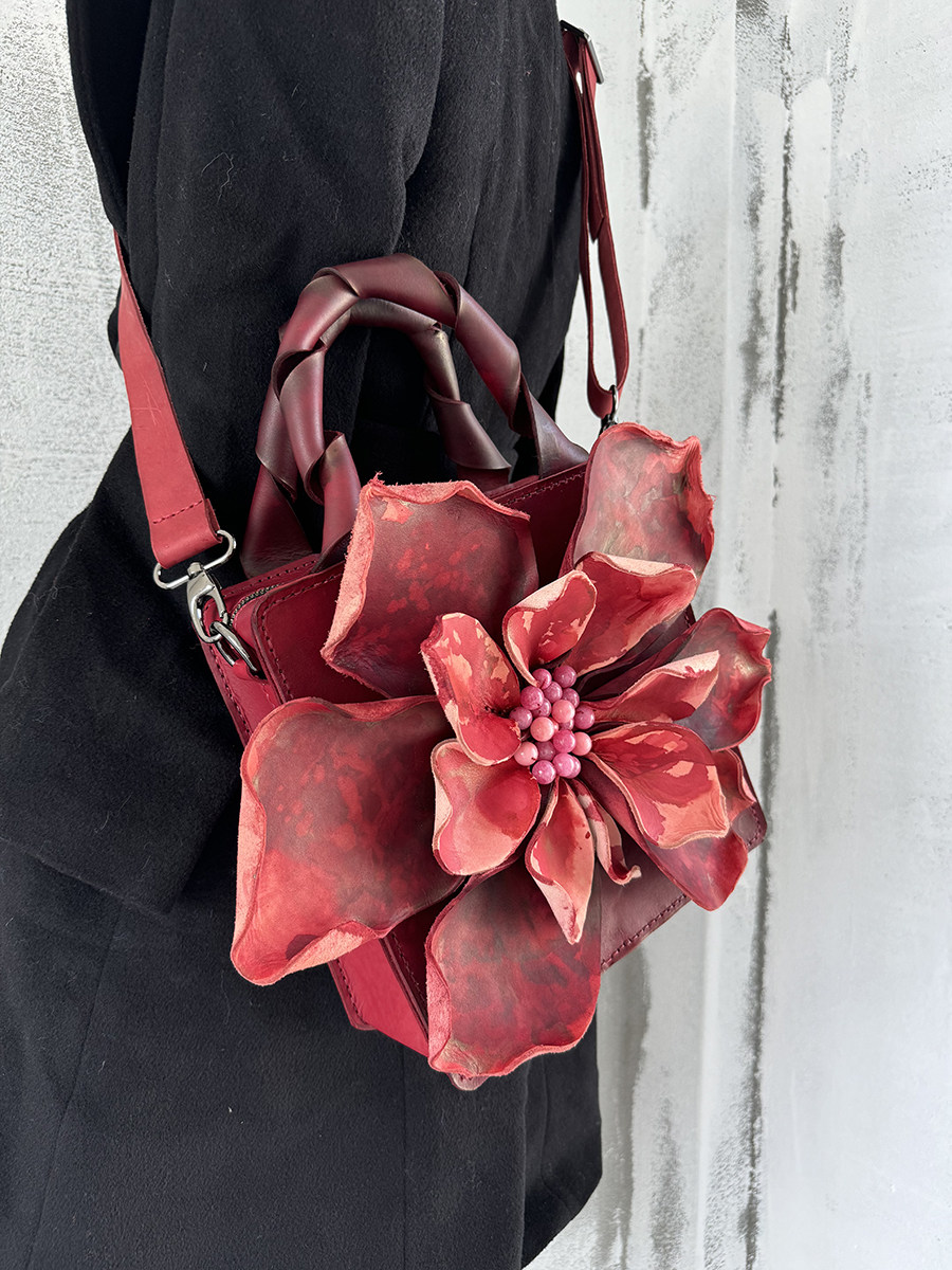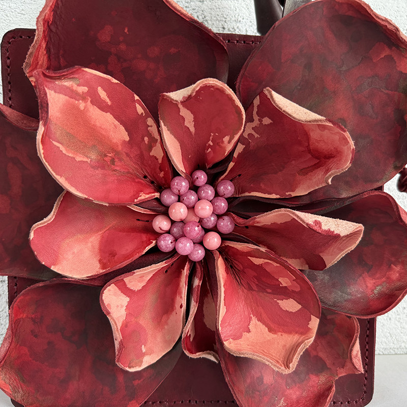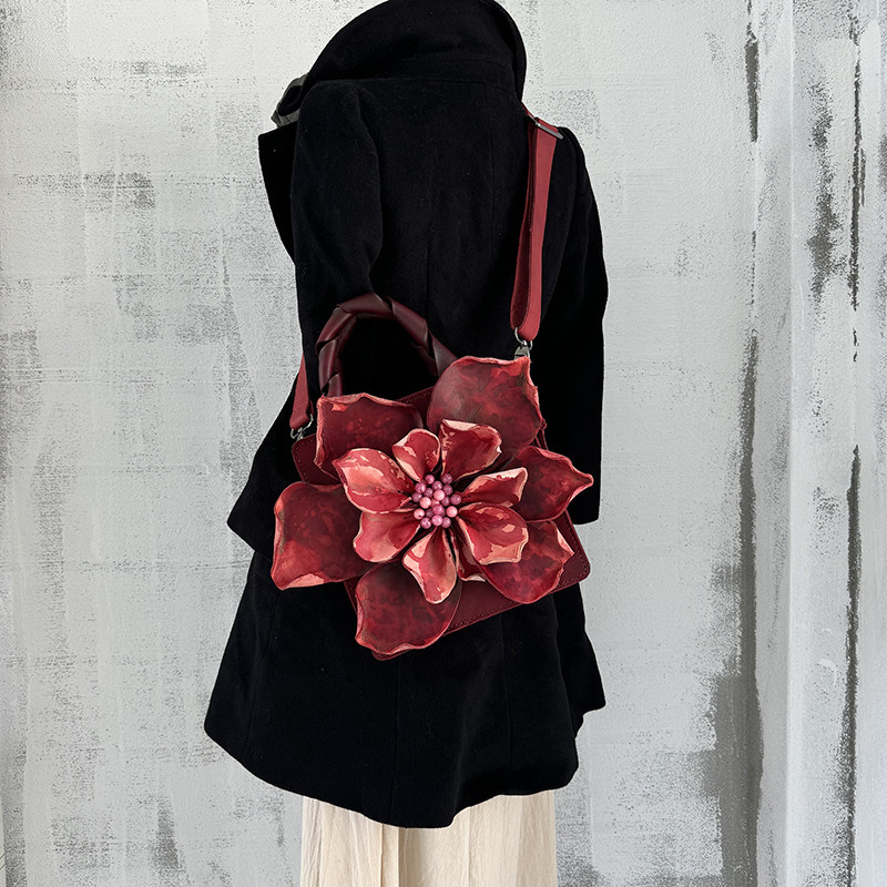 【绽放】 真皮手工包优雅女 花瓣包 红粉 高贵气质 手提包 斜挎包 [Original Page Link]