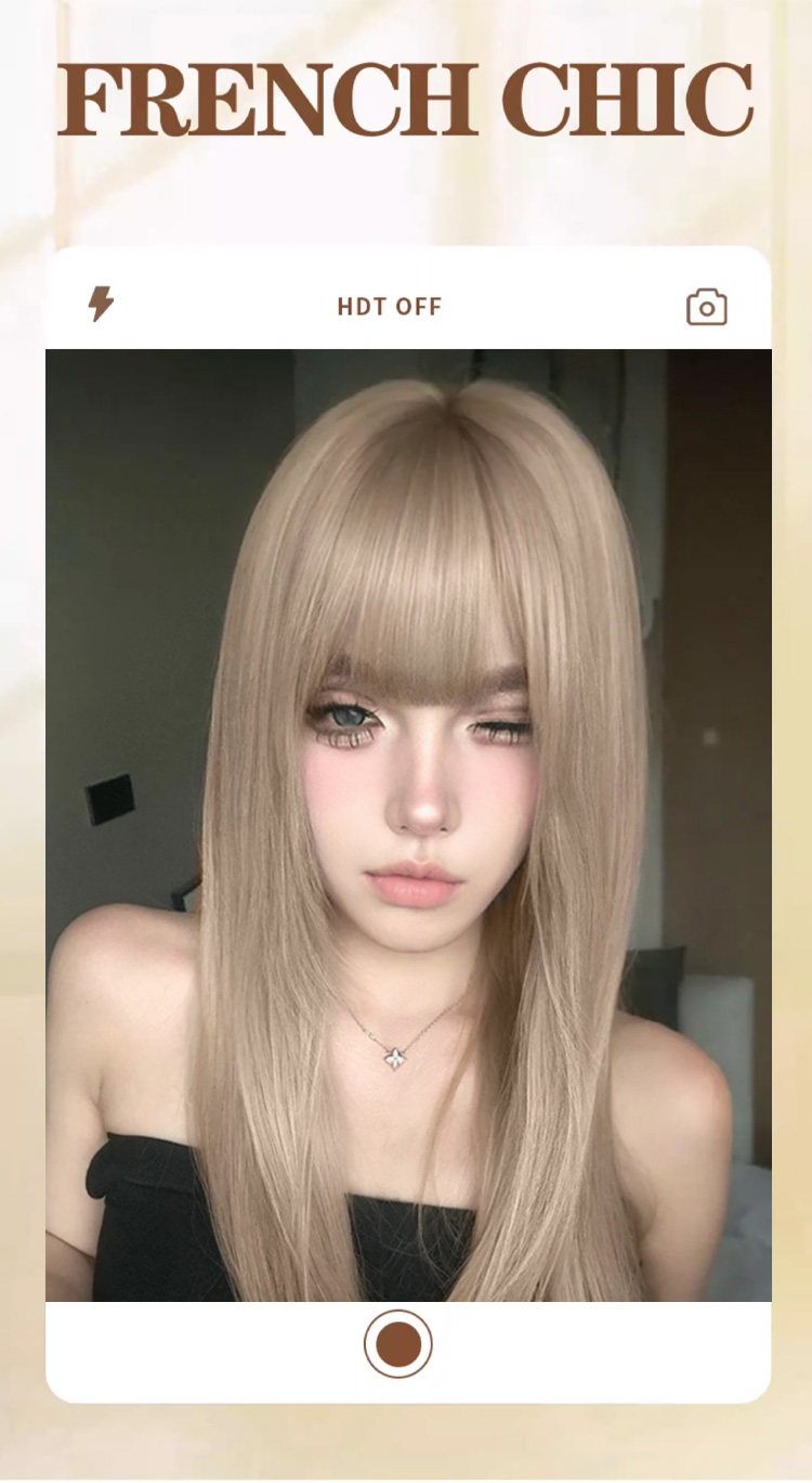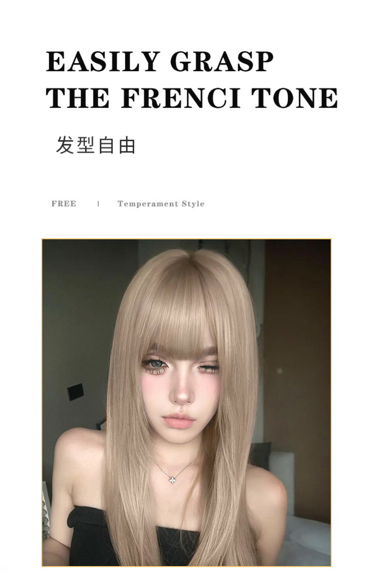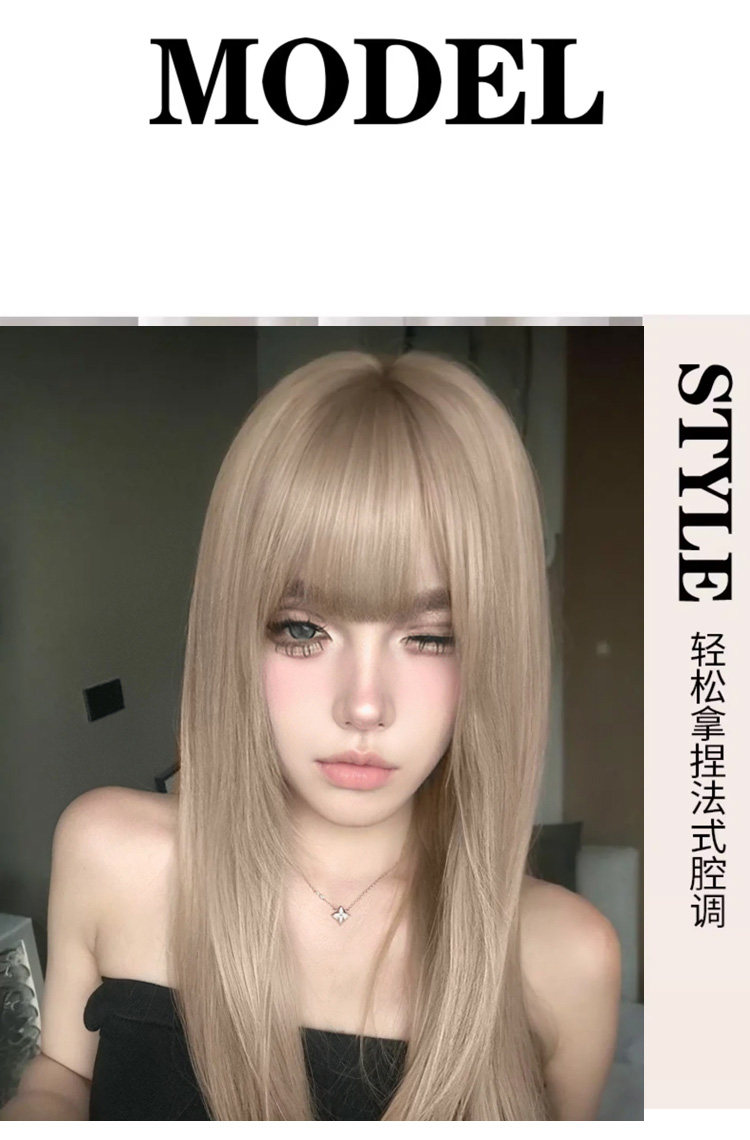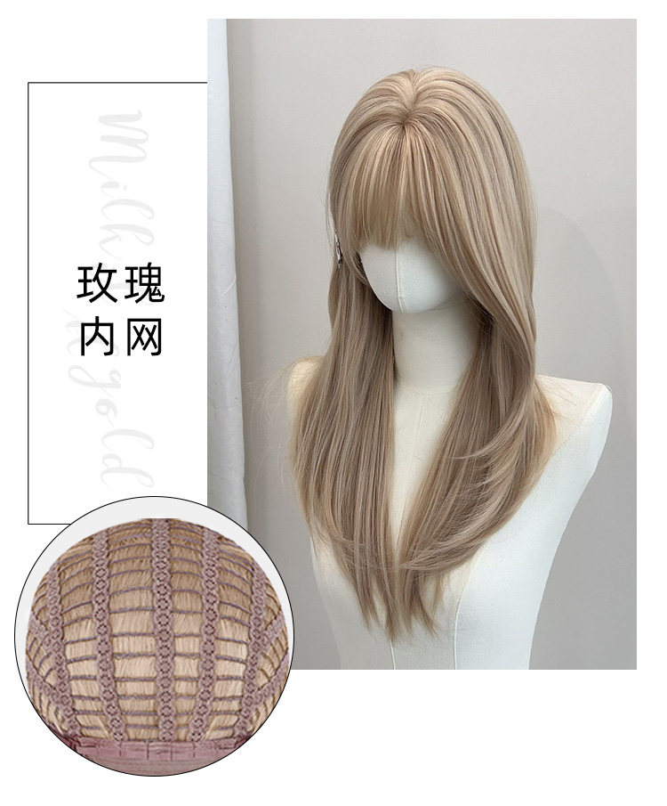 朵喵喵假发女长发网红Lisa同款甜美可爱白金色长直发JK自然全头套 [Original Page Link]