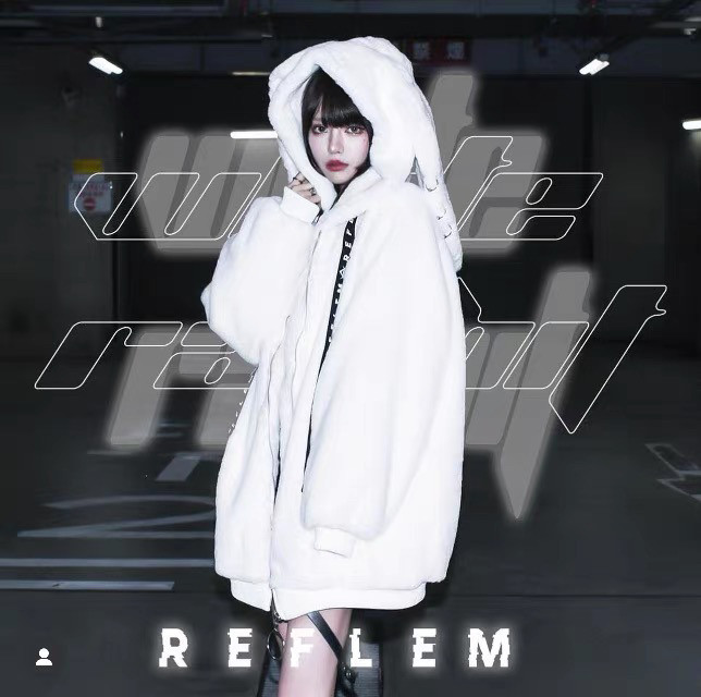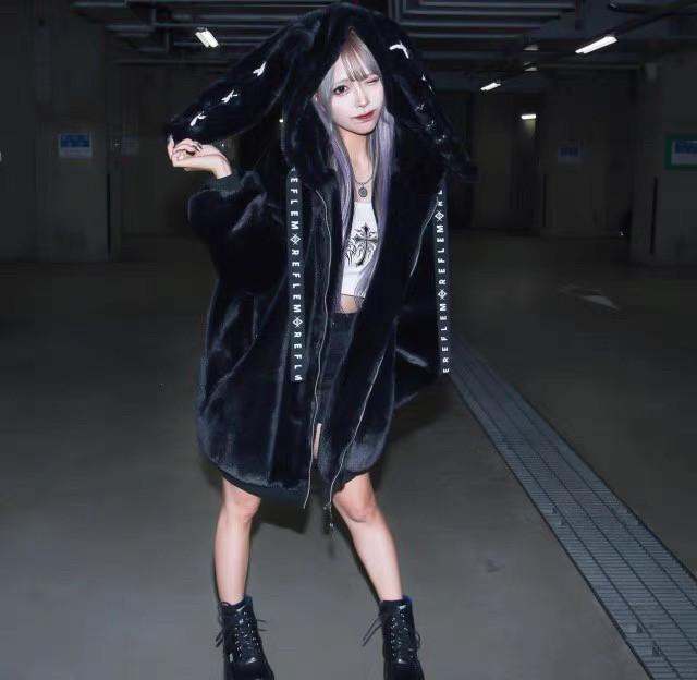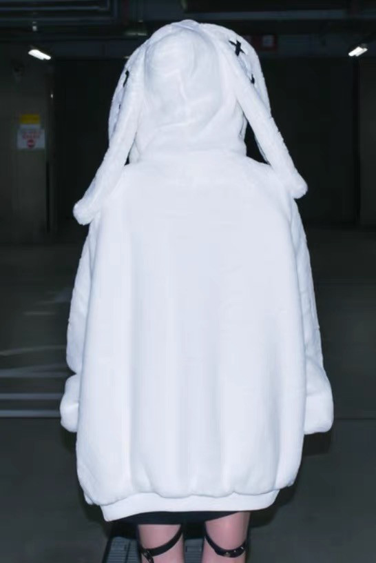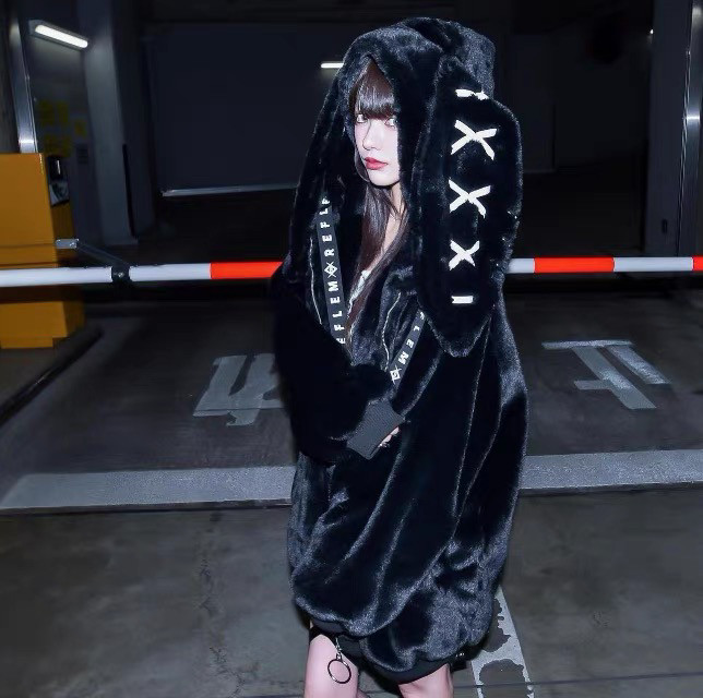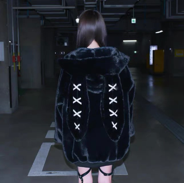 日单 原宿暗黑人气萌款兔耳仿皮草毛绒连帽外套秋冬新款加厚保暖 [Original Page Link]