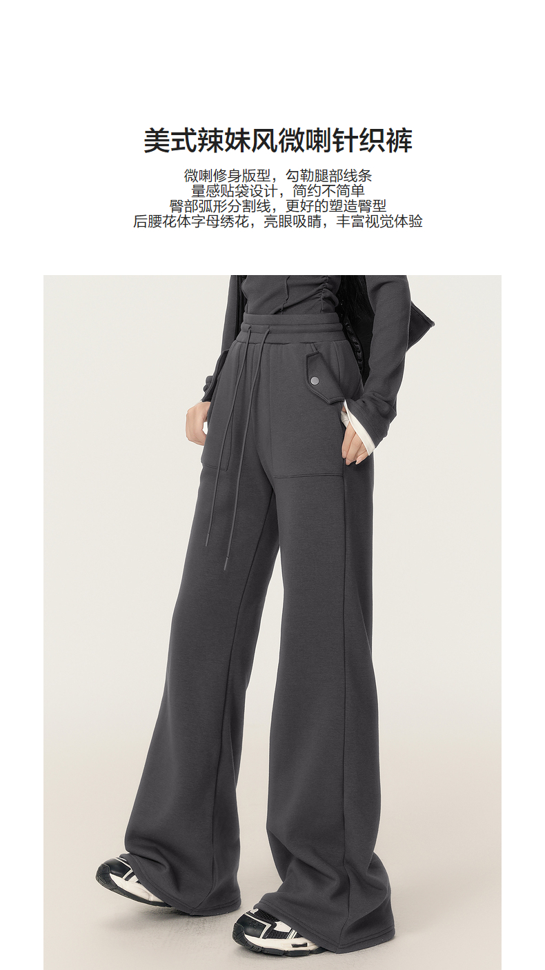 EPTISON美式辣妹风喇叭针织裤女2025冬季新款显身材时髦休闲长裤 [Original Page Link]