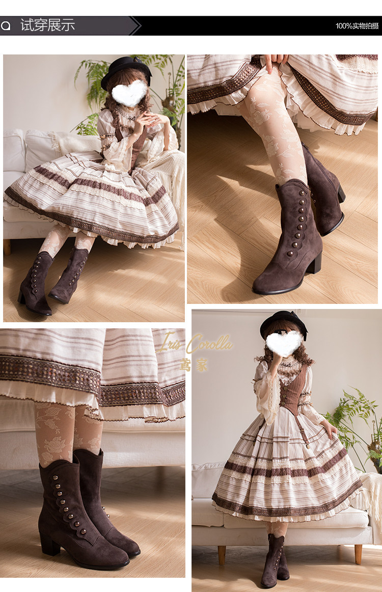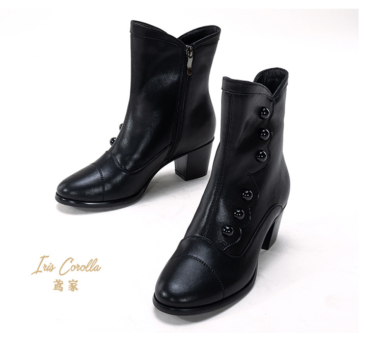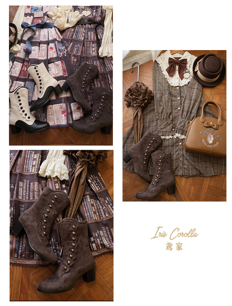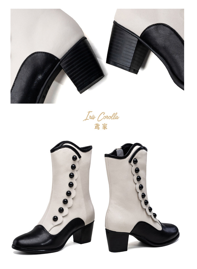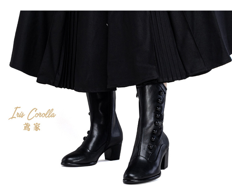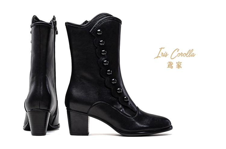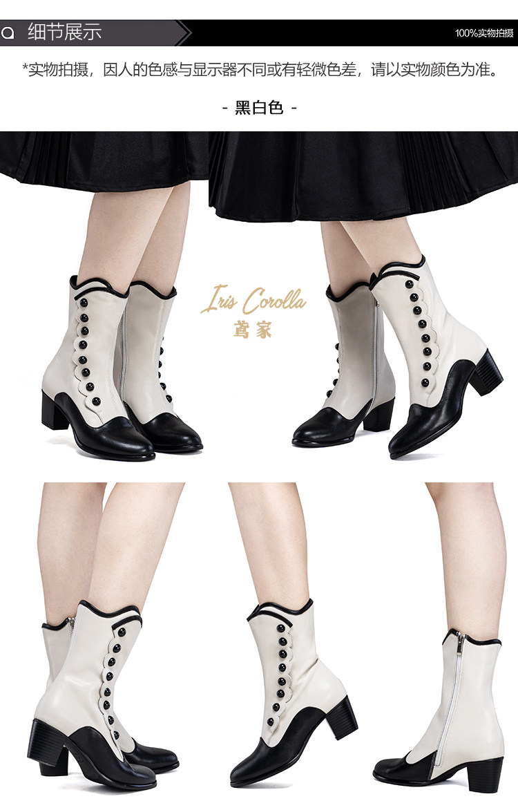 【现货】鸢家维多利真皮圆头加绒中长短筒中低粗跟冬lolita女靴 [Original Page Link]