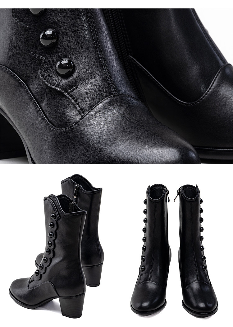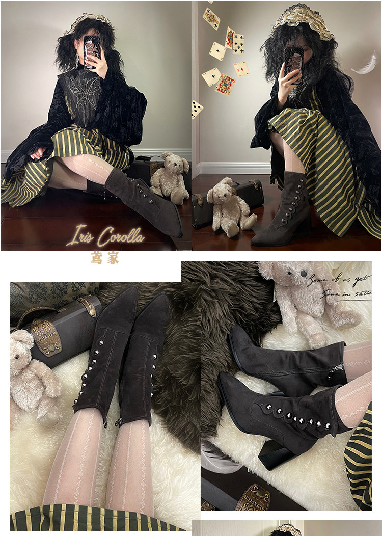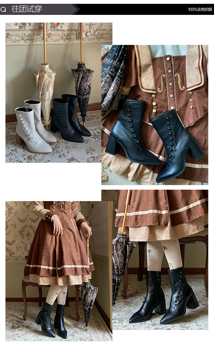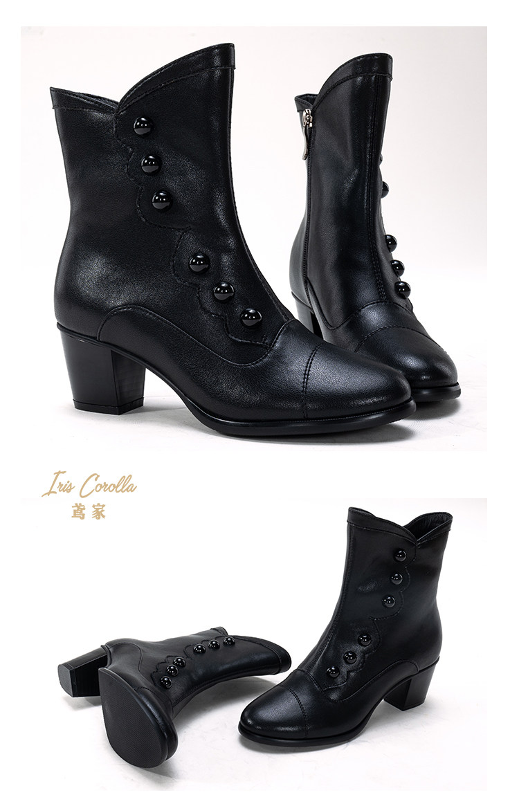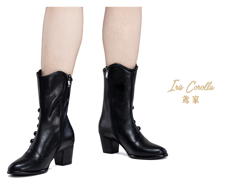 【现货】鸢家维多利真皮圆头加绒中长短筒中低粗跟冬lolita女靴 [Original Page Link]