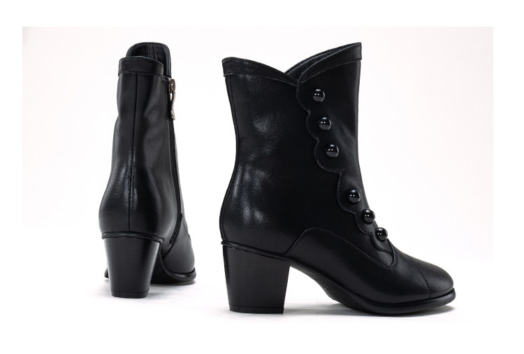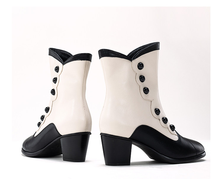 【In Stock】Yuanjia Victoria Genuine Leather Round Toe Fleece Lined Mid-Length Short Boots with Chunky Heel Winter Lolita Women's Boots