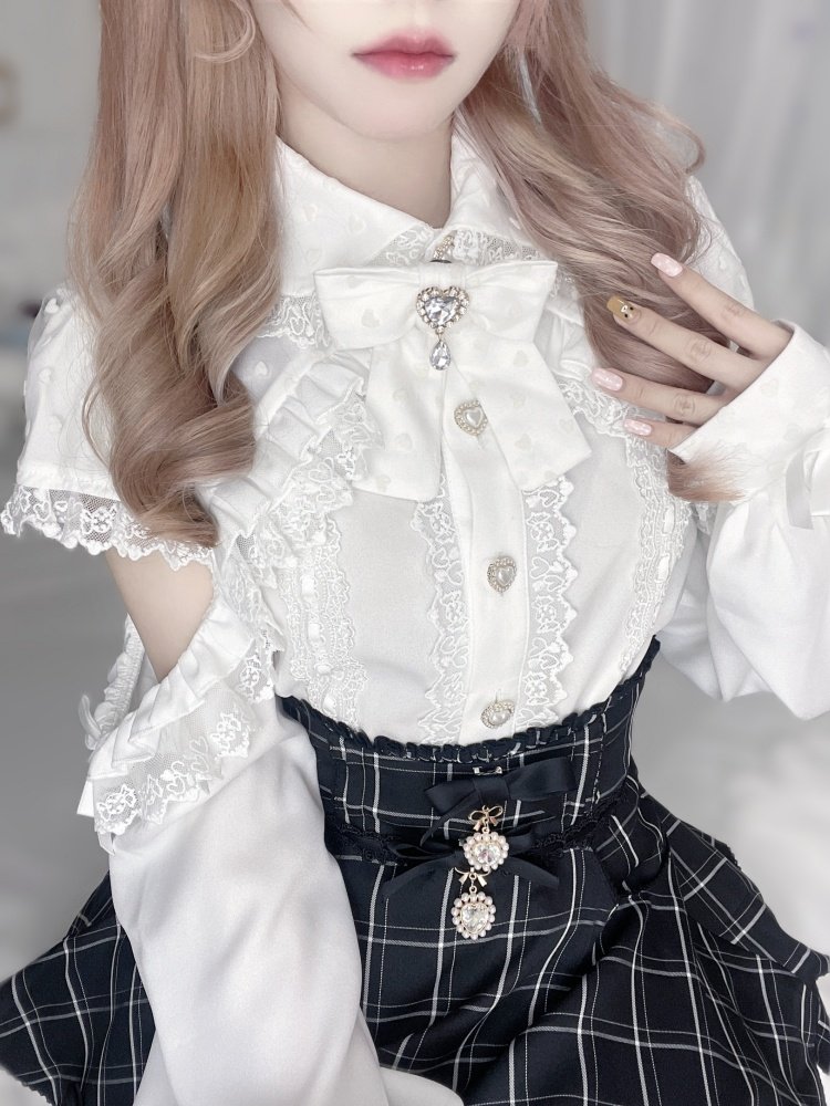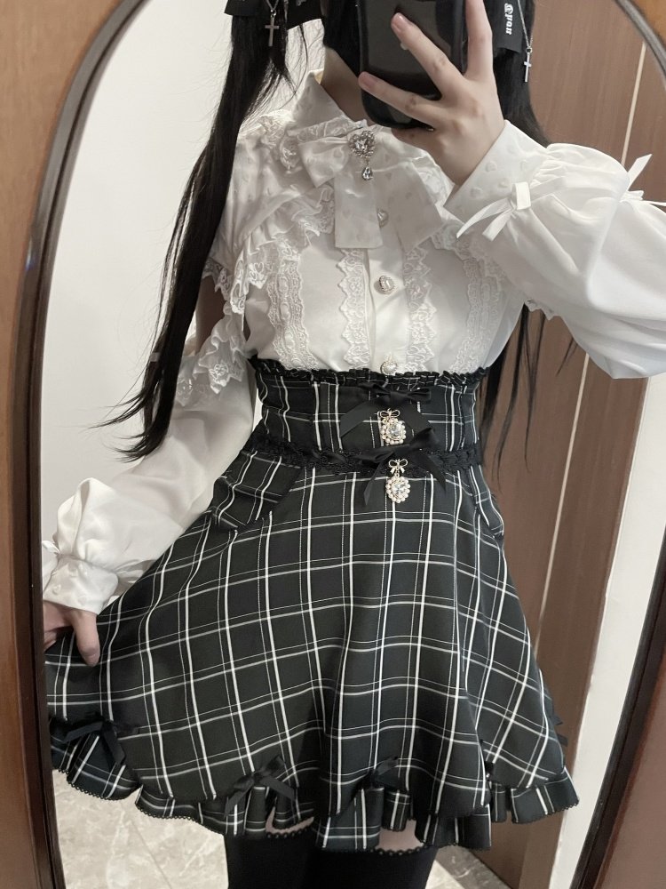 High-waisted sweet rhinestone bow pocket petal skirt with a Japanese style, mass-produced lace design.