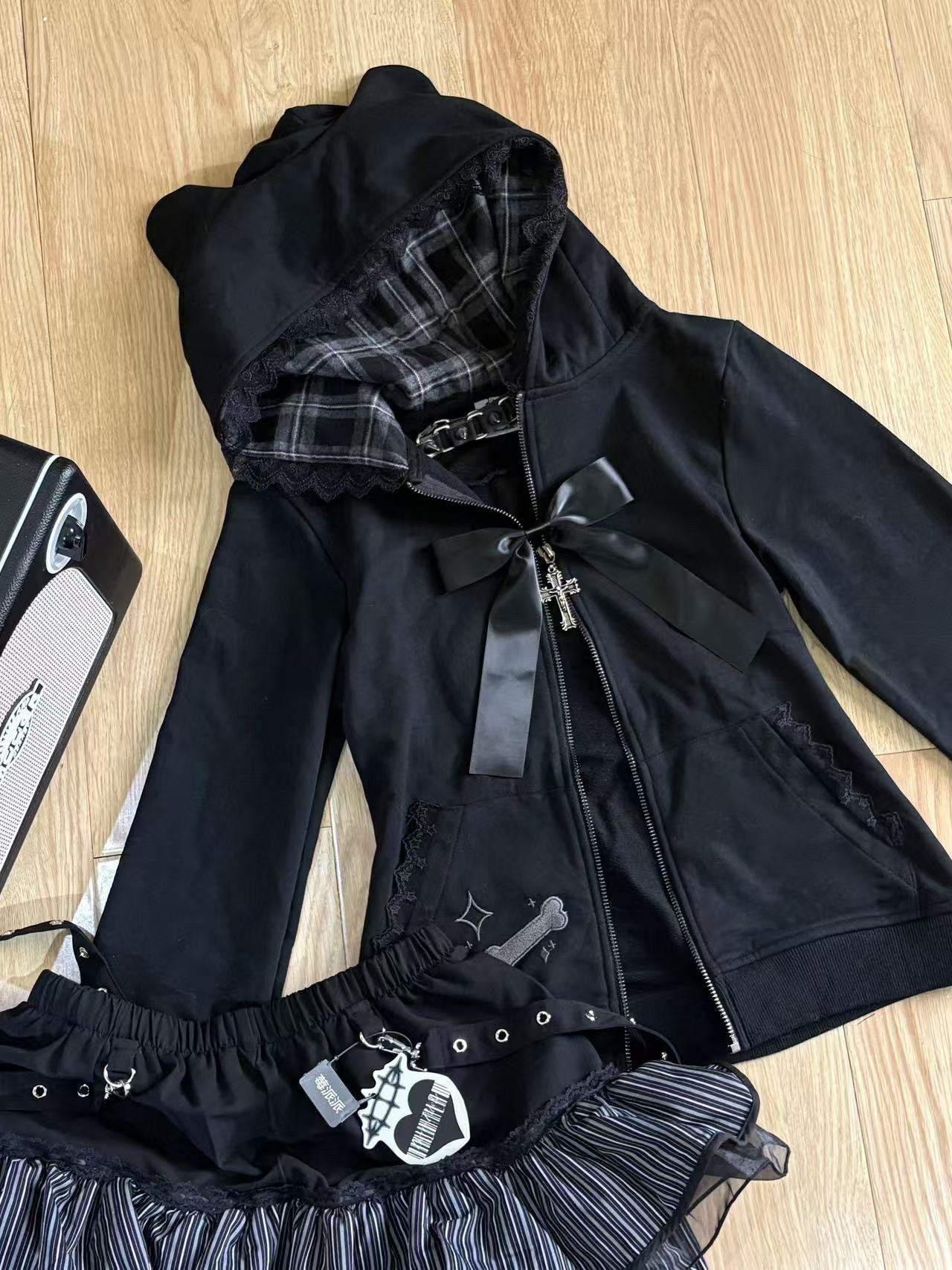 Black Mist Call/Straight Shoulder Long Sleeve Sweater Hooded Jacket Slim Fit Hooded Raspberry Pie Original