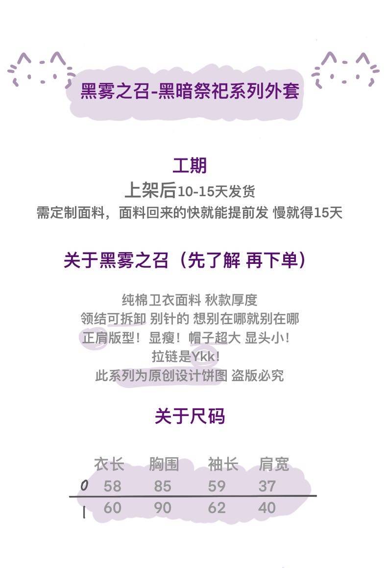 黑雾之召/正肩长袖卫衣连帽外套修身连帽莓派派原创 [Original Page Link]