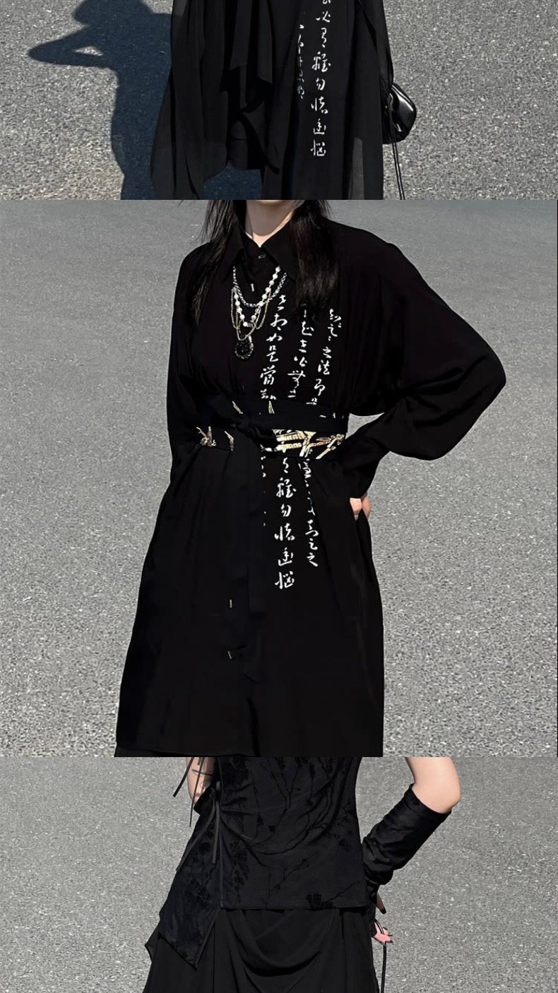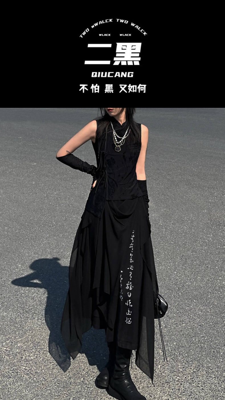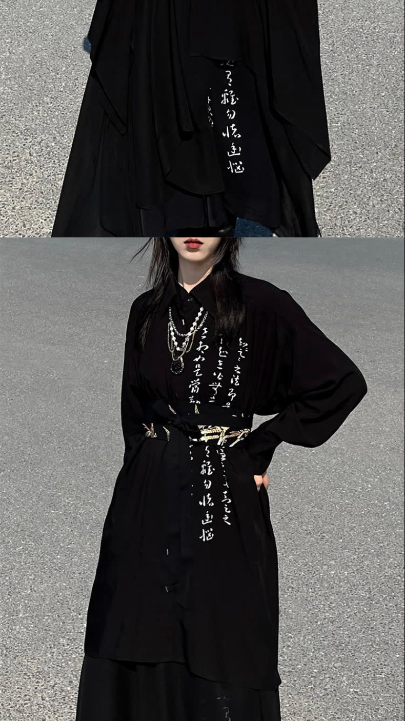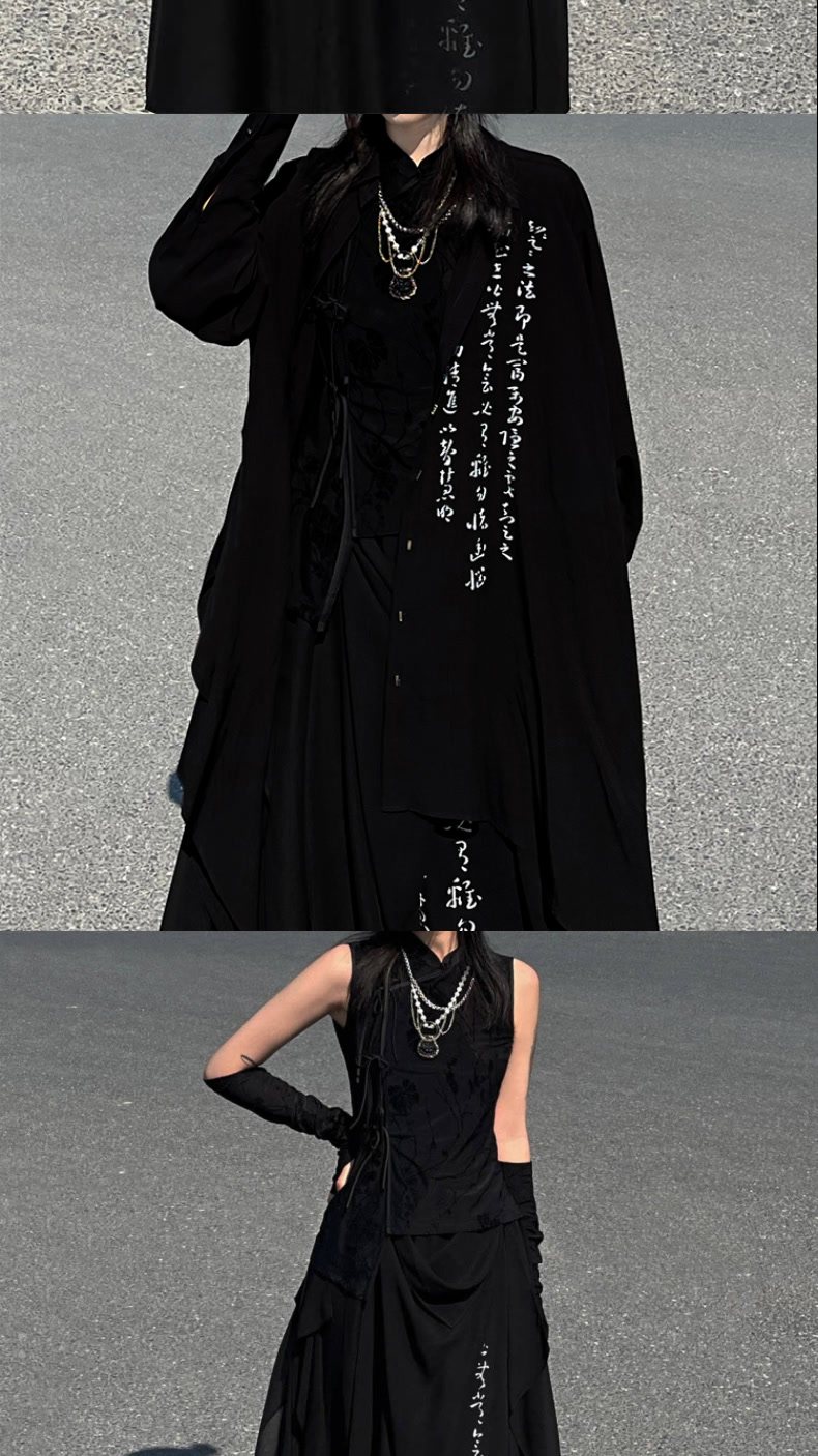 【二黑】山本风小众书法印花雪纺阔腿裙裤女春夏新中式上衣套装男 [Original Page Link]