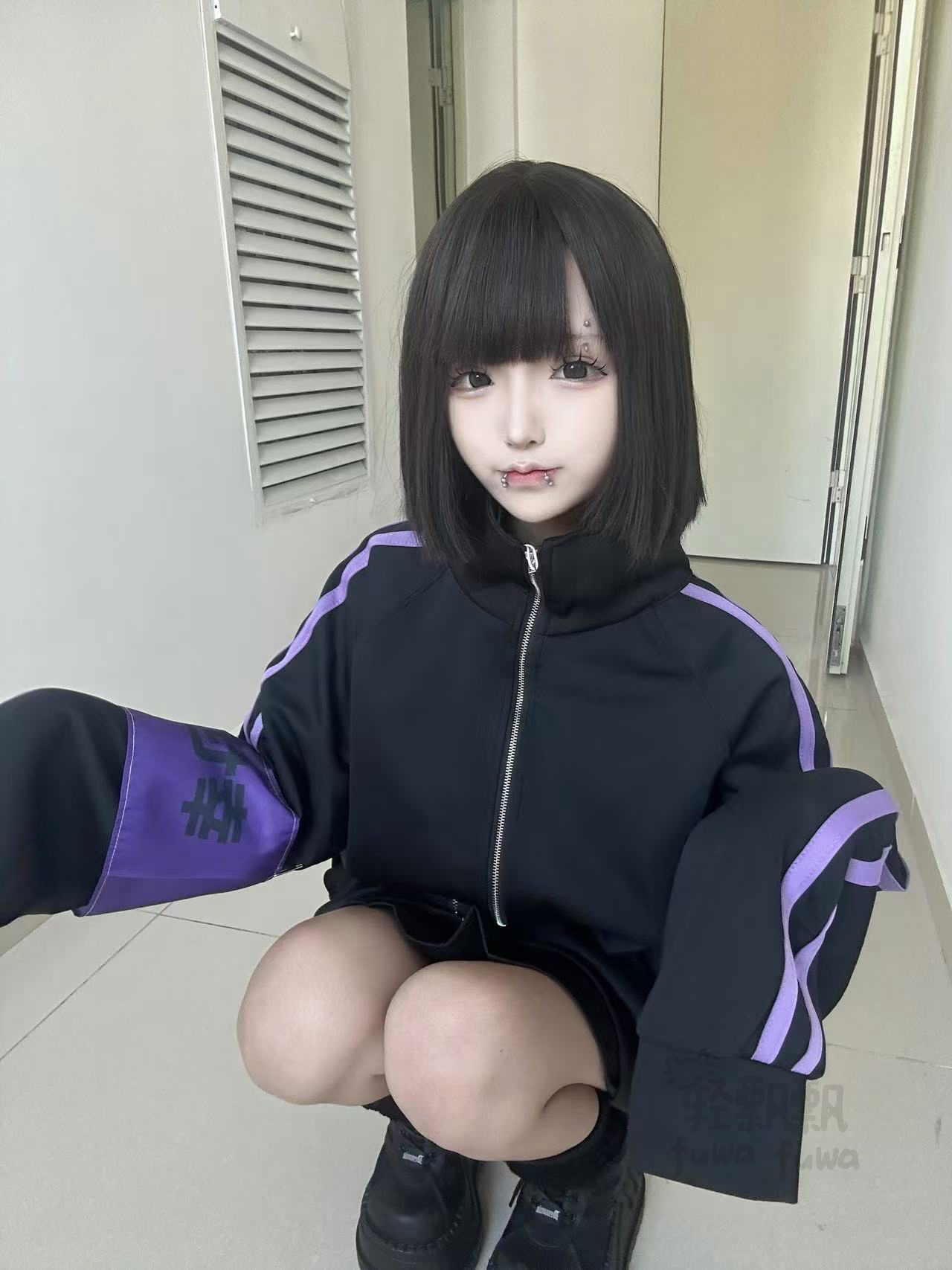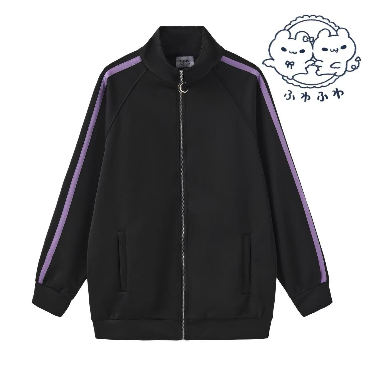 【现】轻飘飘fuwafuwa大大大两条杠运动外套黑紫色套装-袖章可换 [Original Page Link]