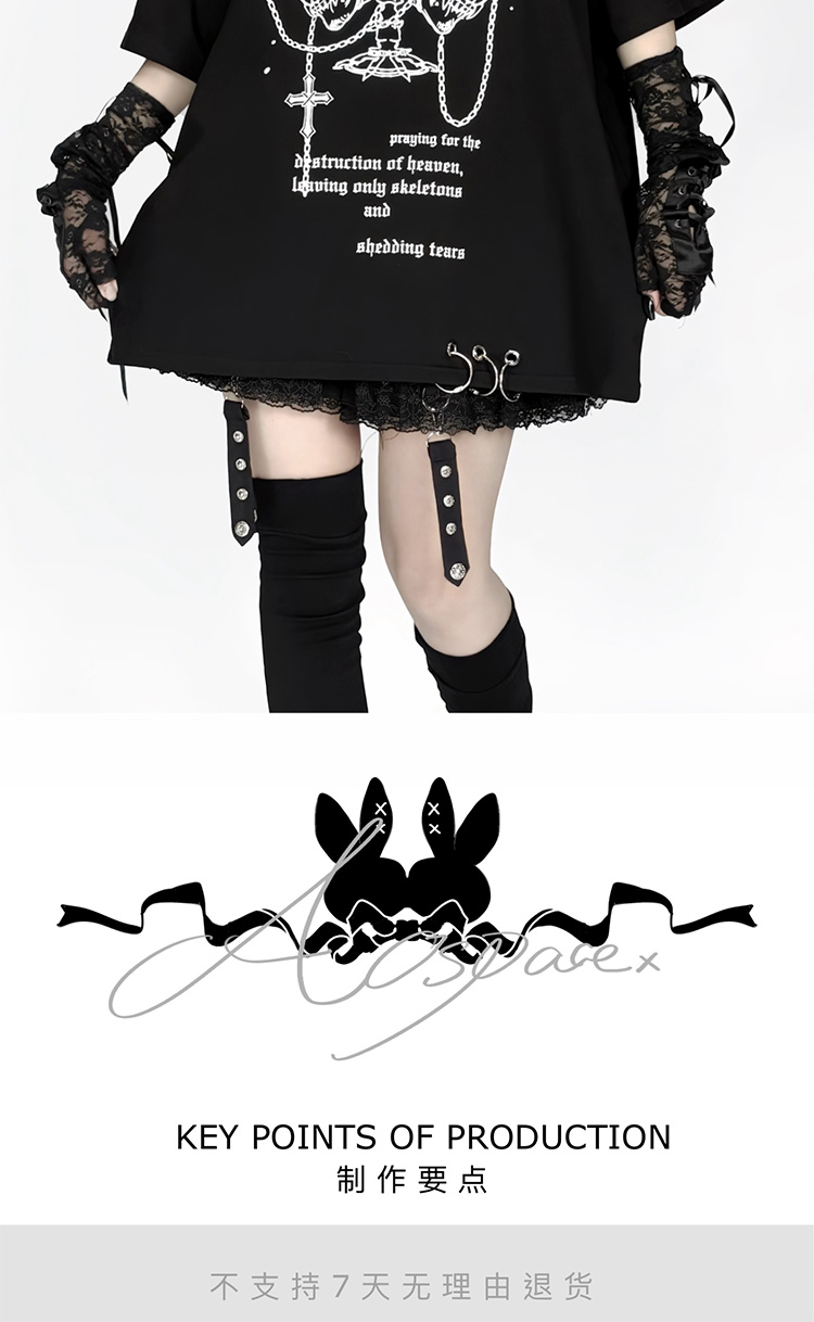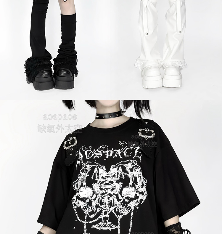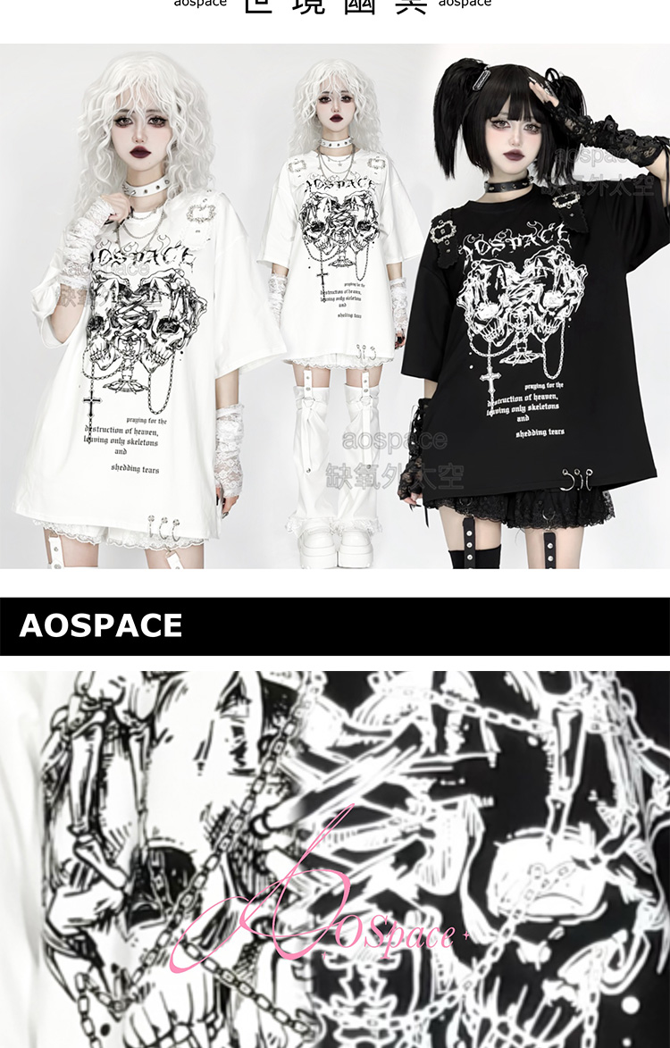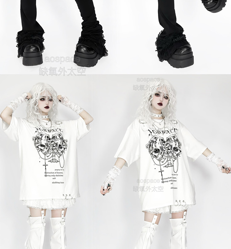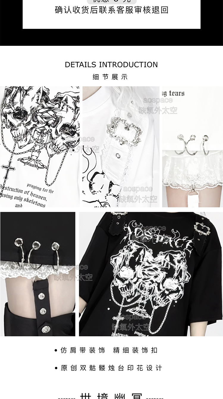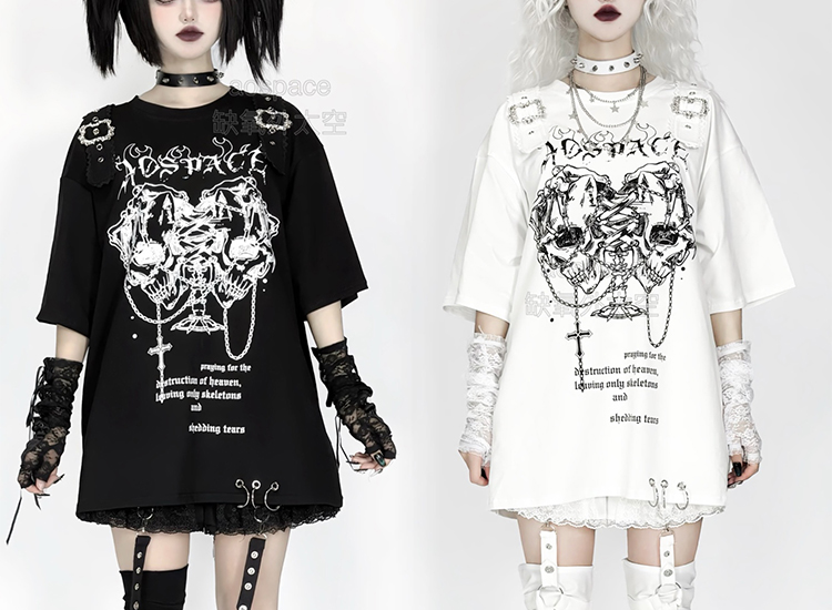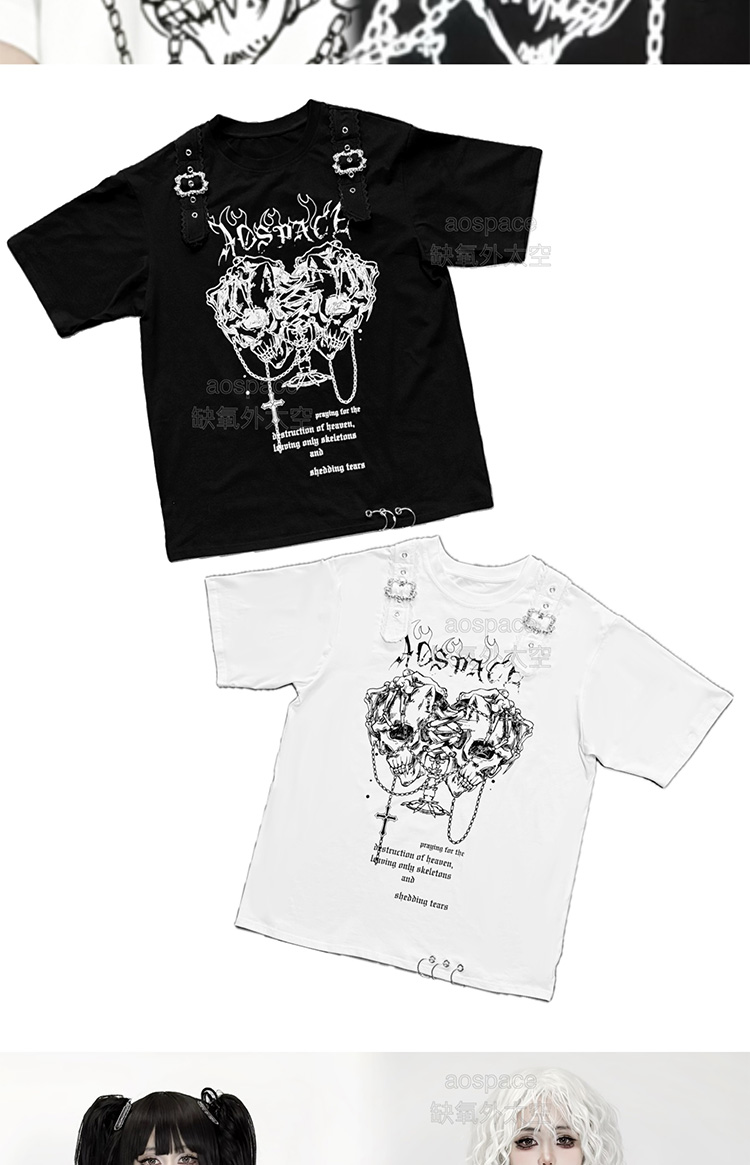 缺氧外太空【世境幽冥】原创亚文化朋克双骷髅印花暗黑短袖 [Original Page Link]