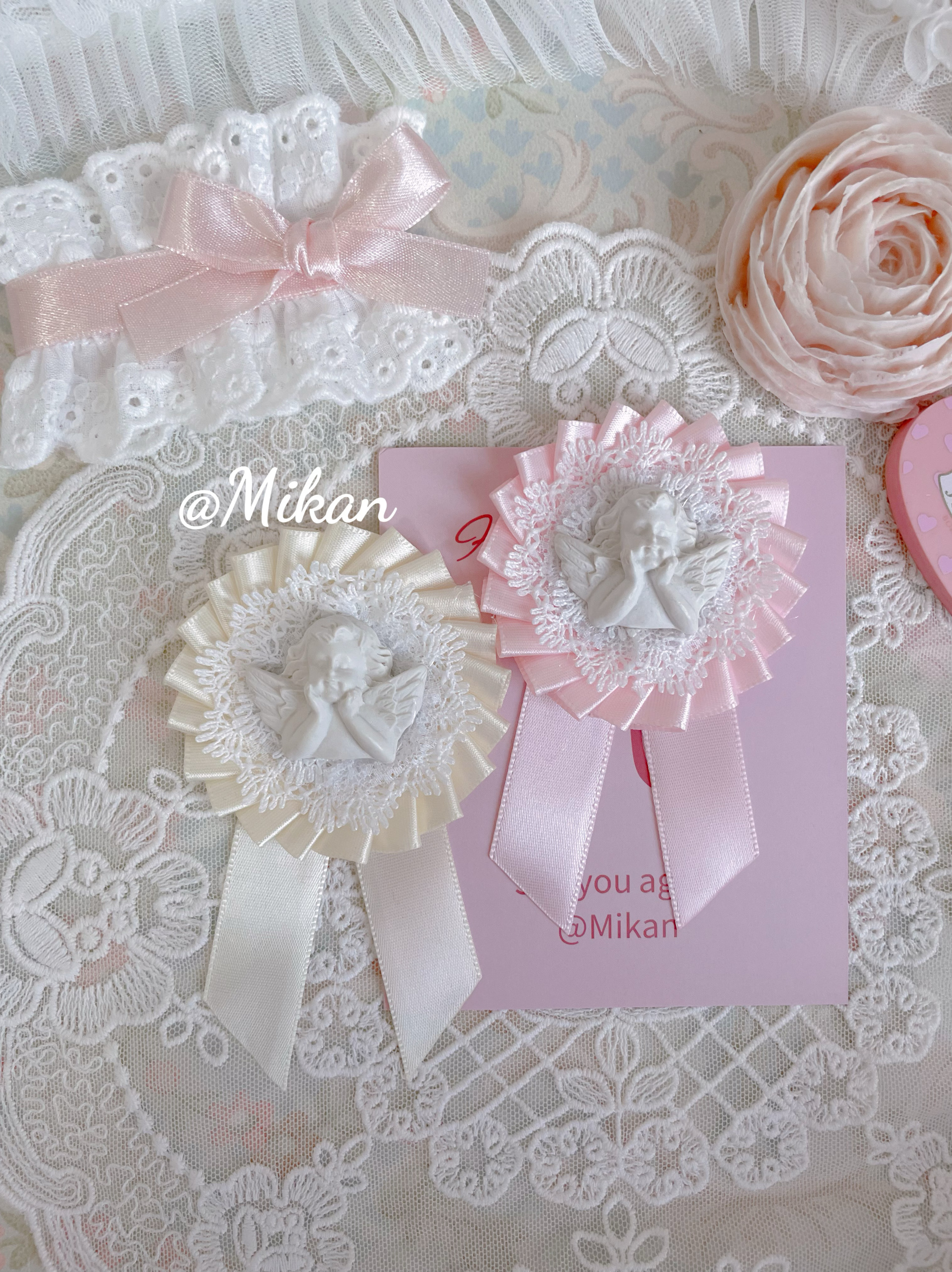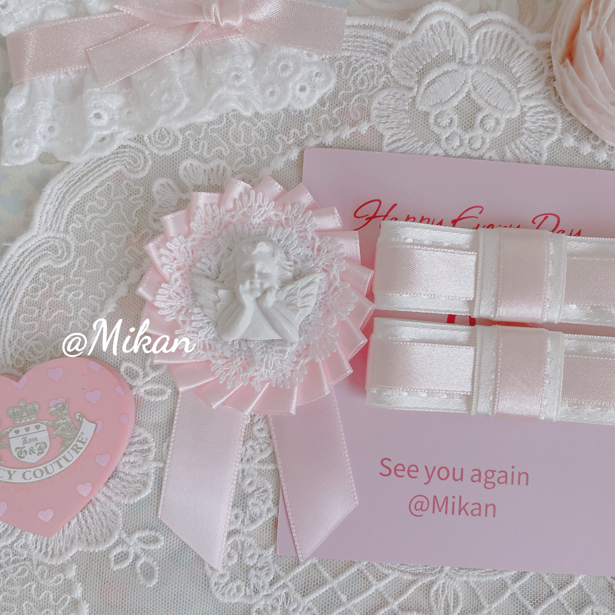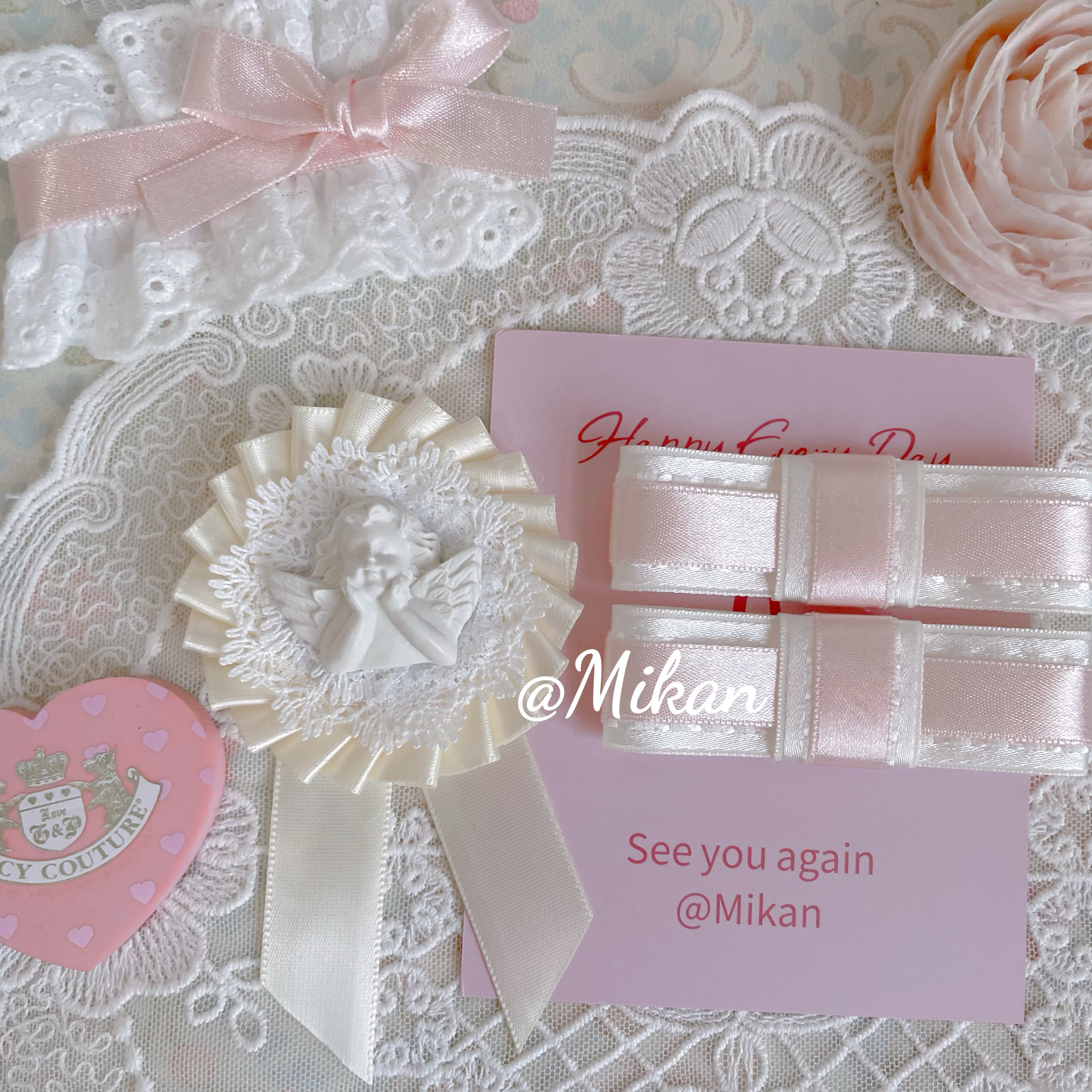 Mikan「小天使」vintage蕾丝层叠花边复古法式樱花粉胸章发夹边夹 [Original Page Link]