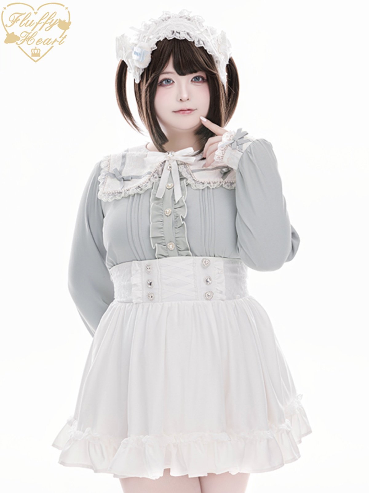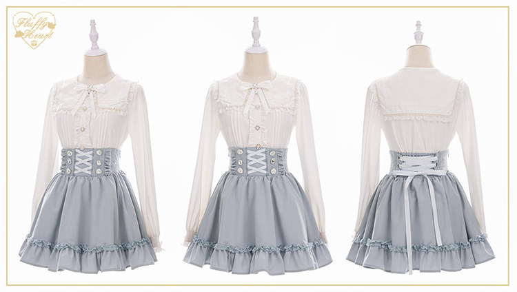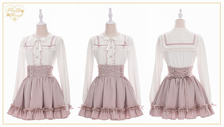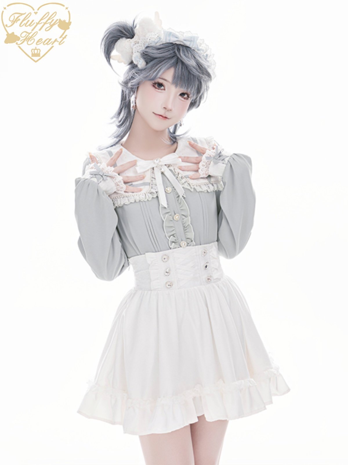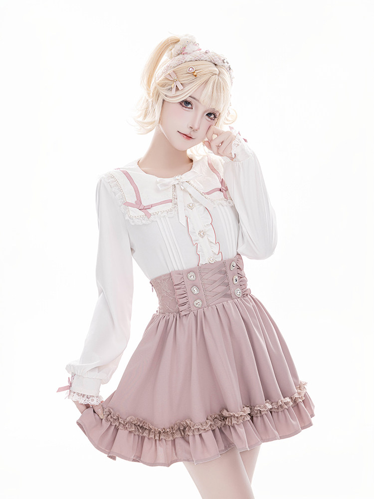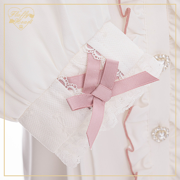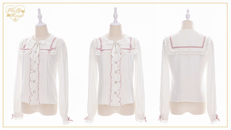 【Fluffy Heart】推活系列 日系少女蕾丝方领 长袖衬衫 四色 现货 [Original Page Link]