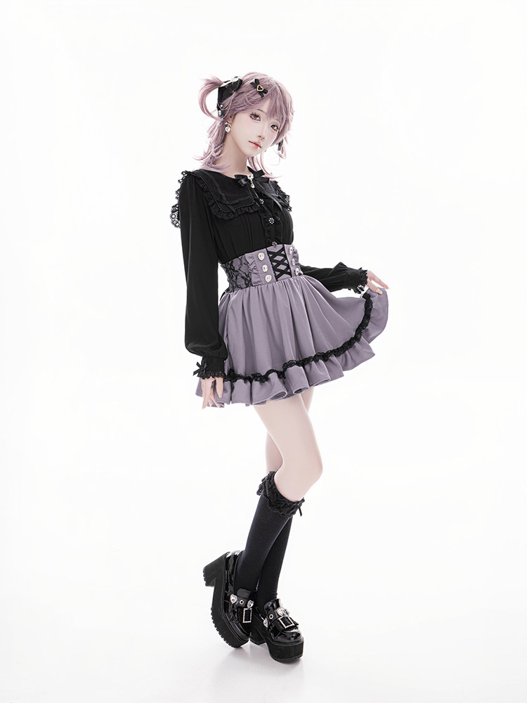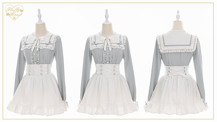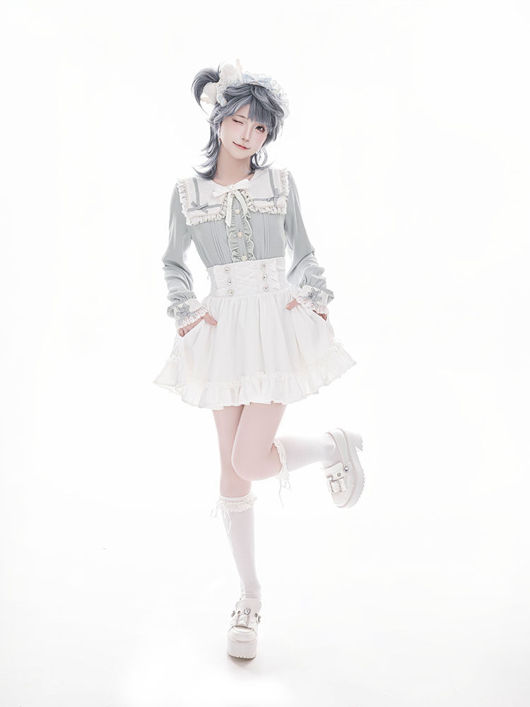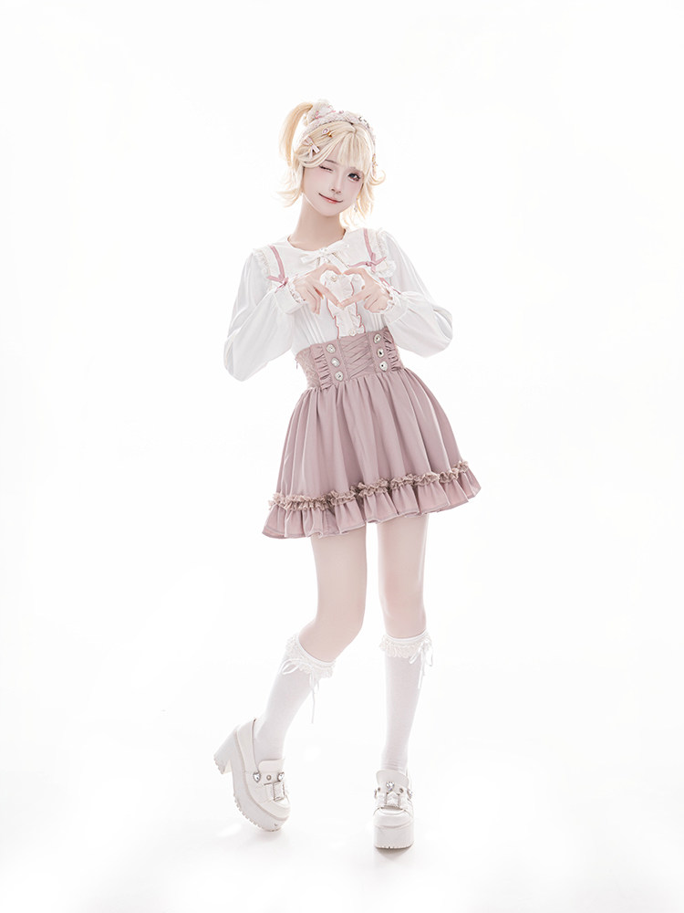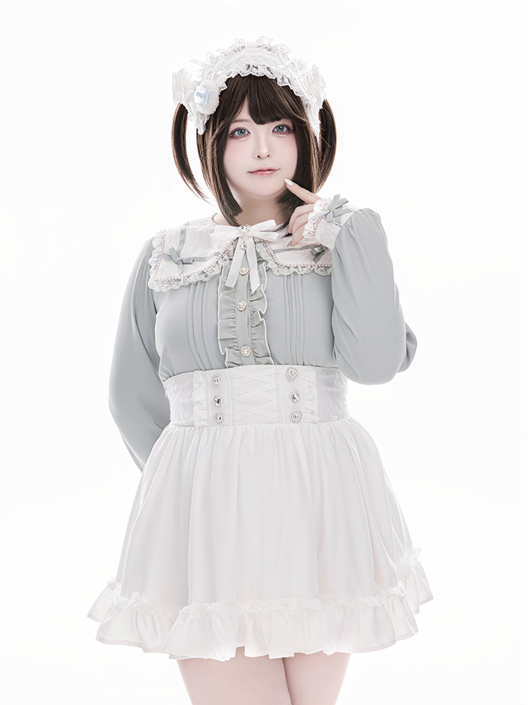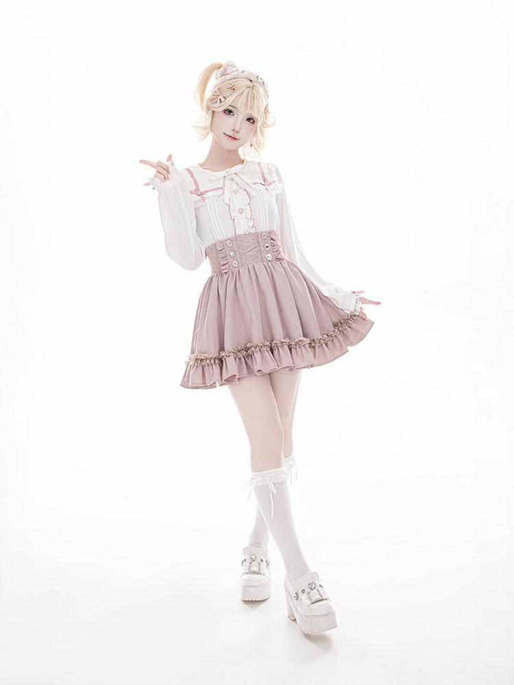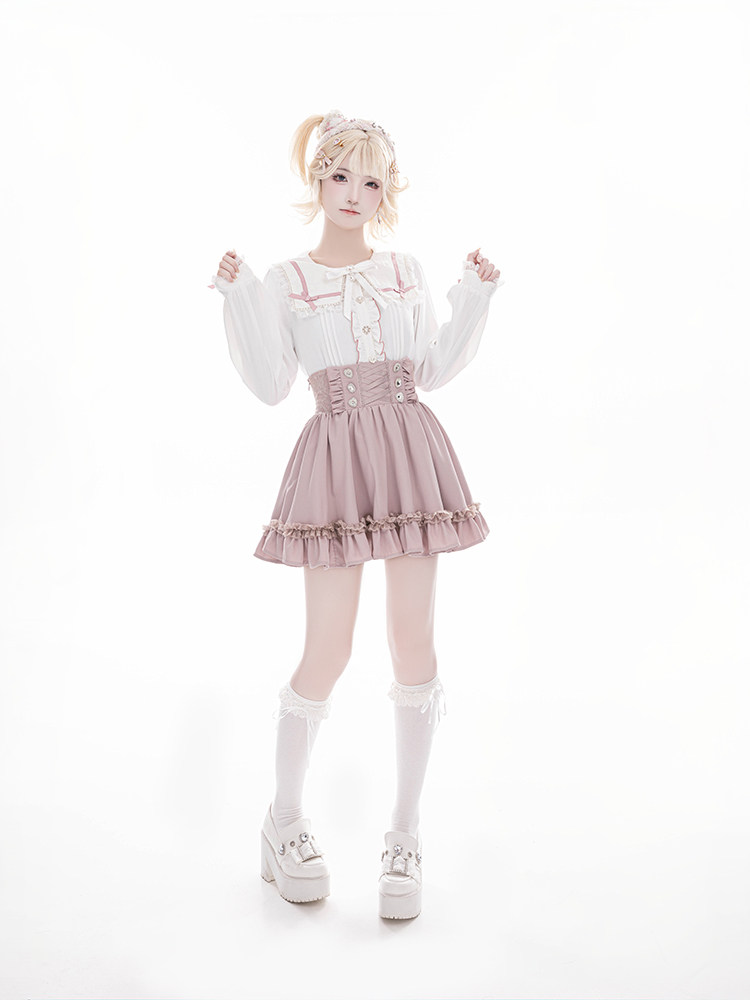 【Fluffy Heart】推活系列 日系少女蕾丝方领 长袖衬衫 四色 现货 [Original Page Link]