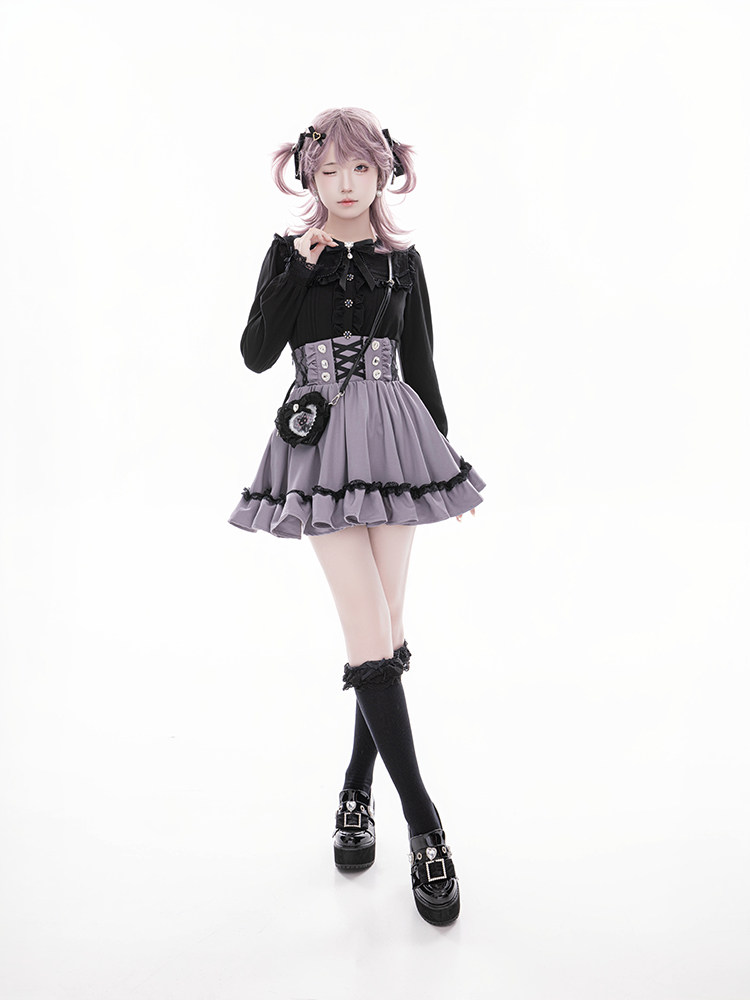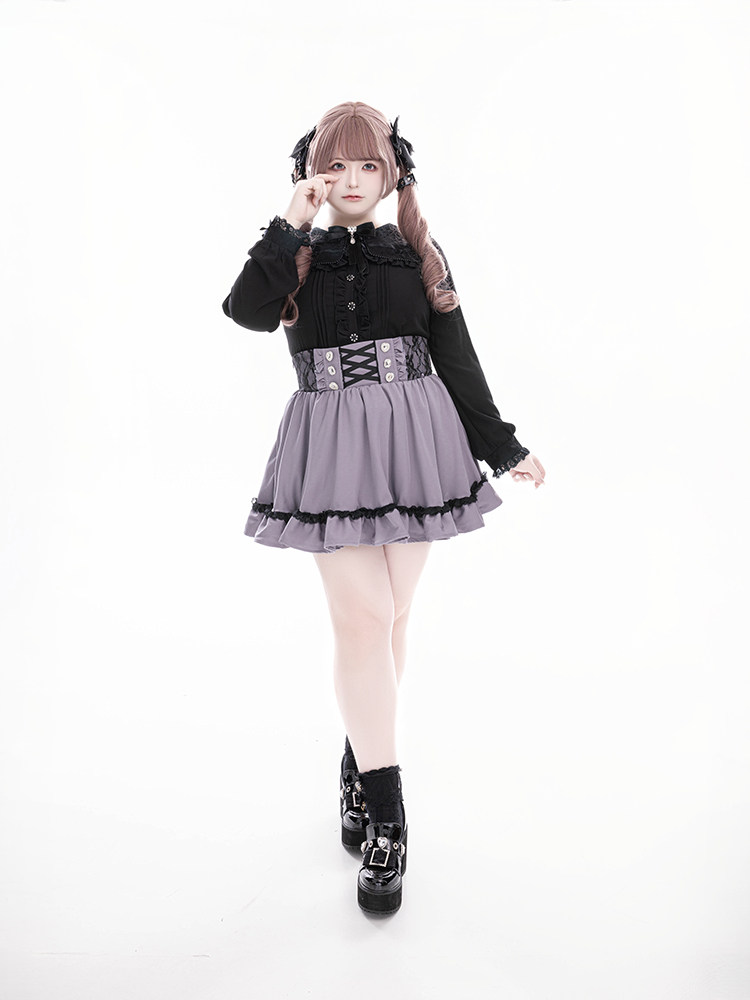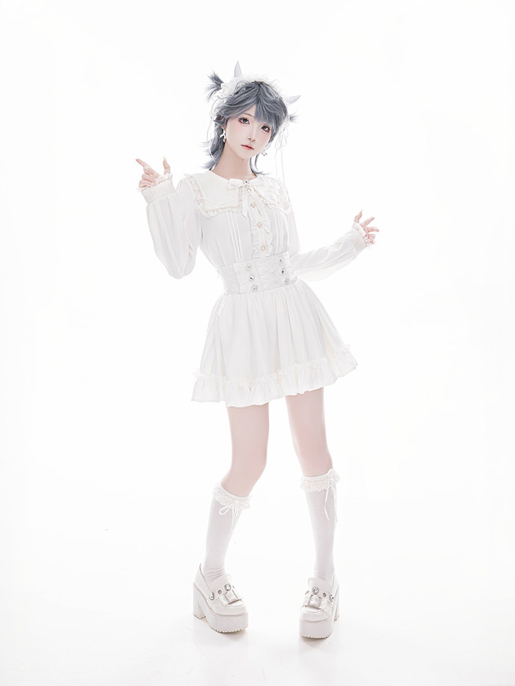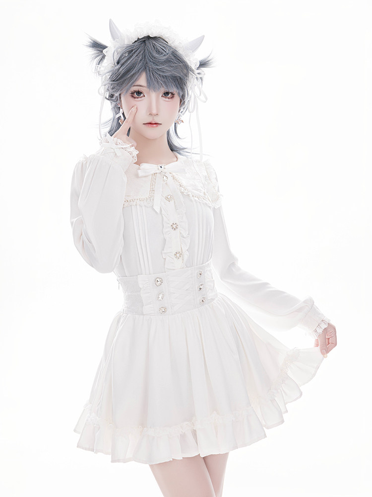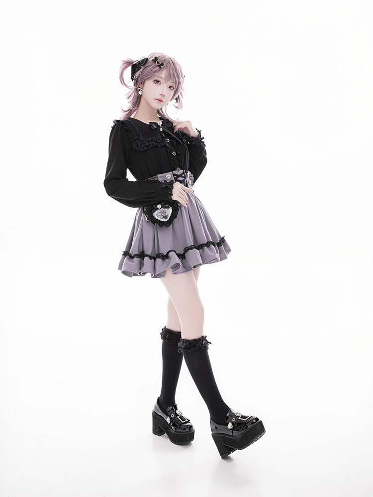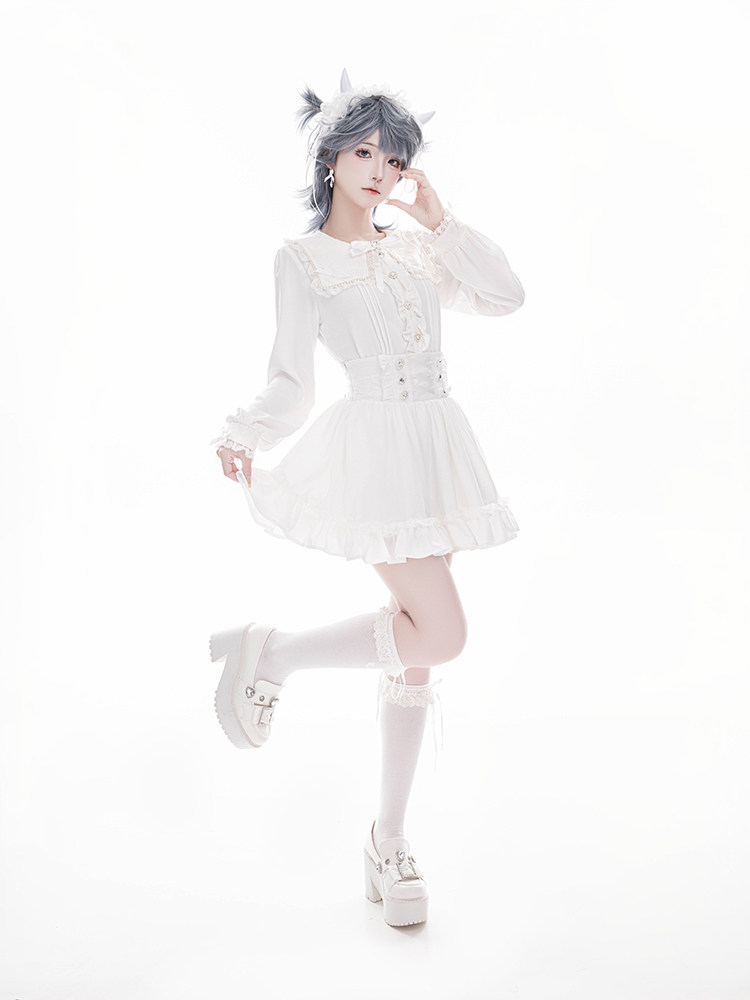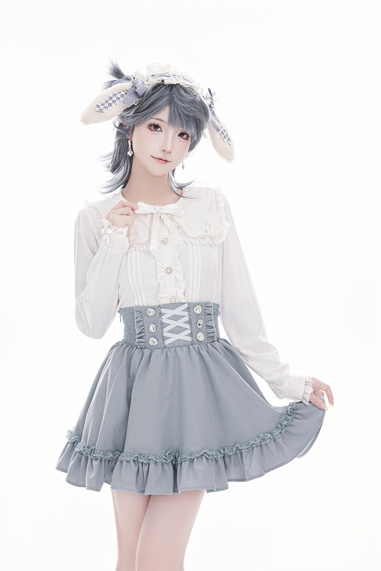 【Fluffy Heart】推活系列 日系少女蕾丝方领 长袖衬衫 四色 现货 [Original Page Link]