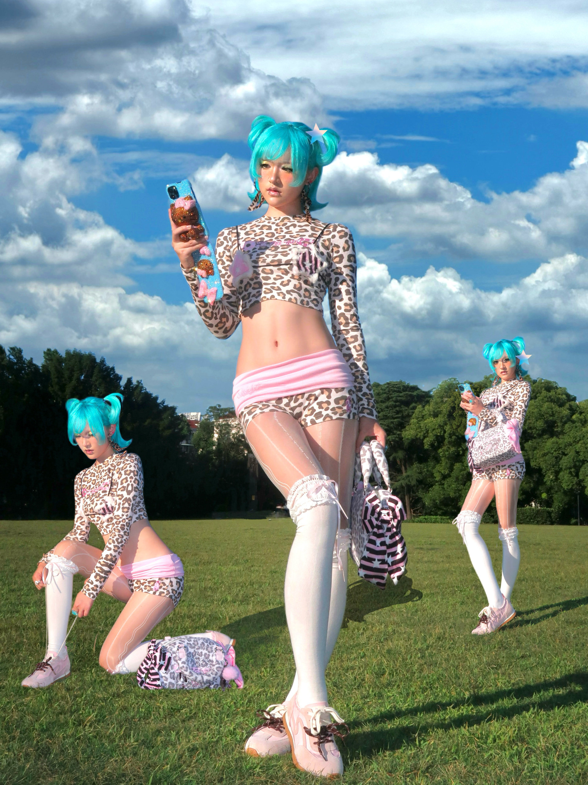 SelfishGhost原创涩谷辣妹二次元满印豹纹长袖打底可爱套装 [Original Page Link]