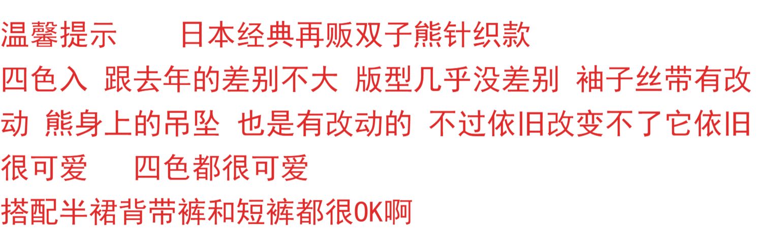 现货发!日单25年再贩年秋冬经典再贩可爱双子小熊针织衫 [Original Page Link]