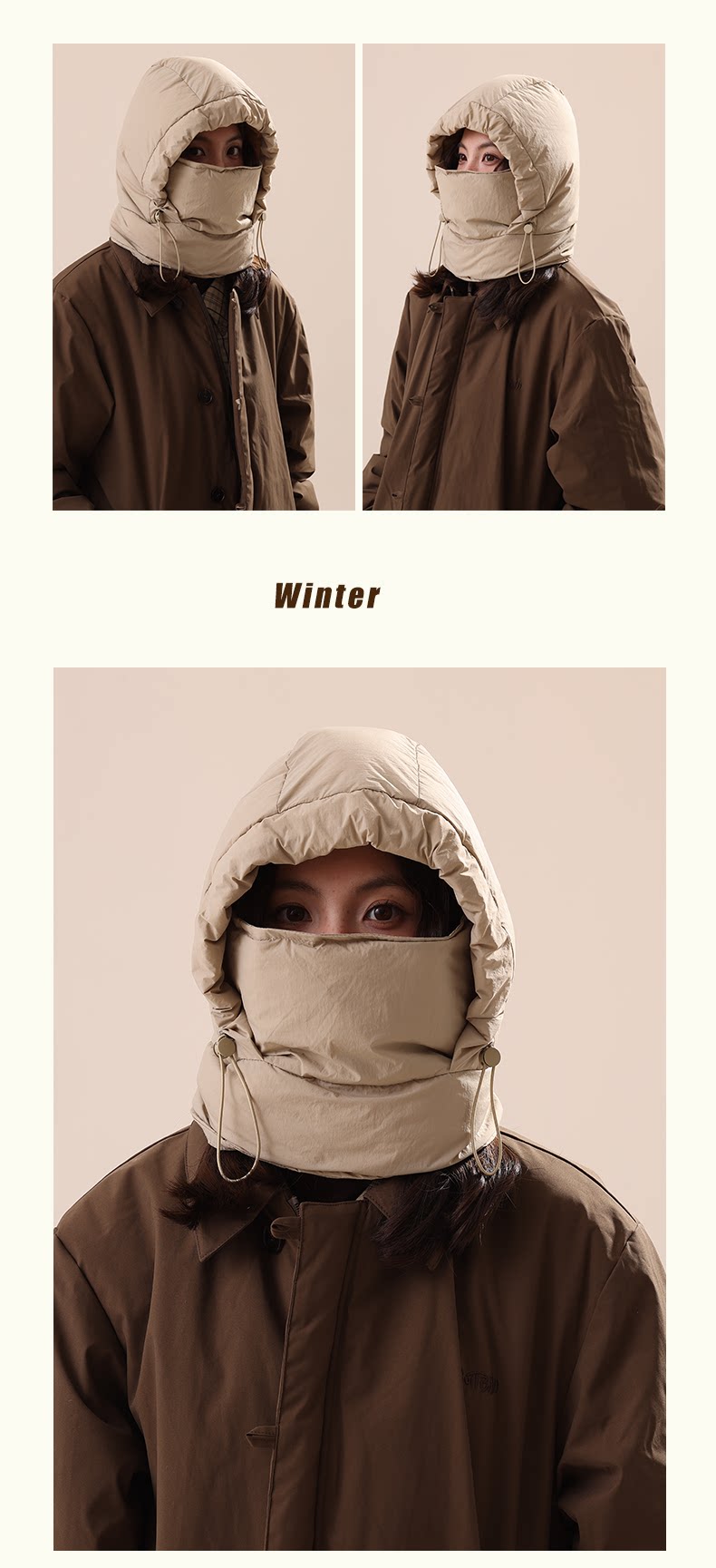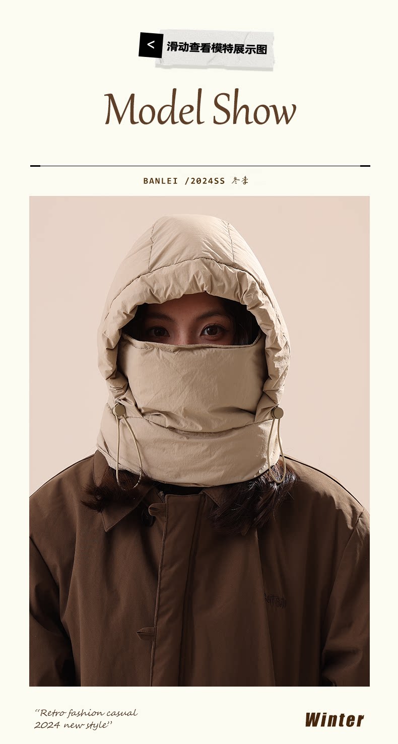 采购产品围巾,面罩,一件式兜帽,妇女冬季骑行保暖羊毛衬里的帽子,防风和防寒滑雪雷锋帽 [Original Page Link]