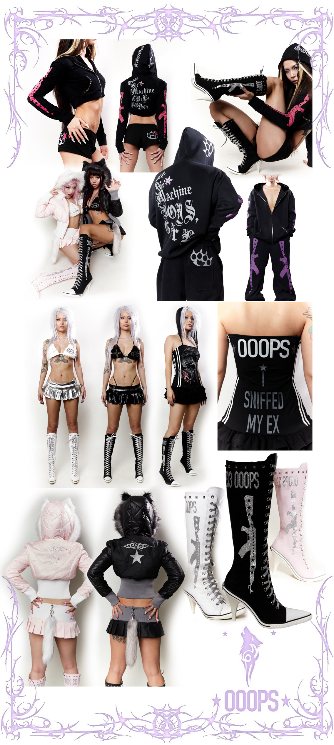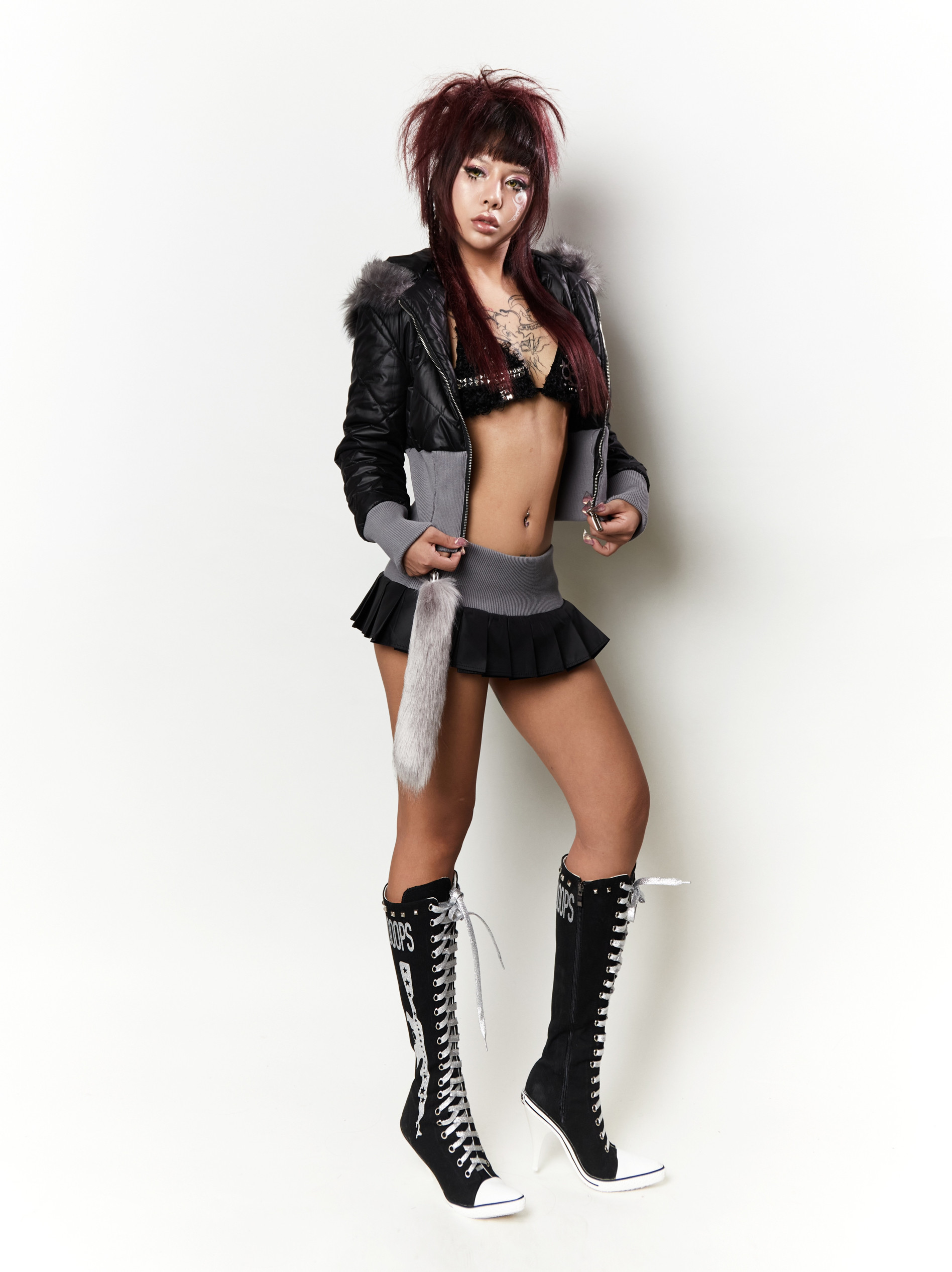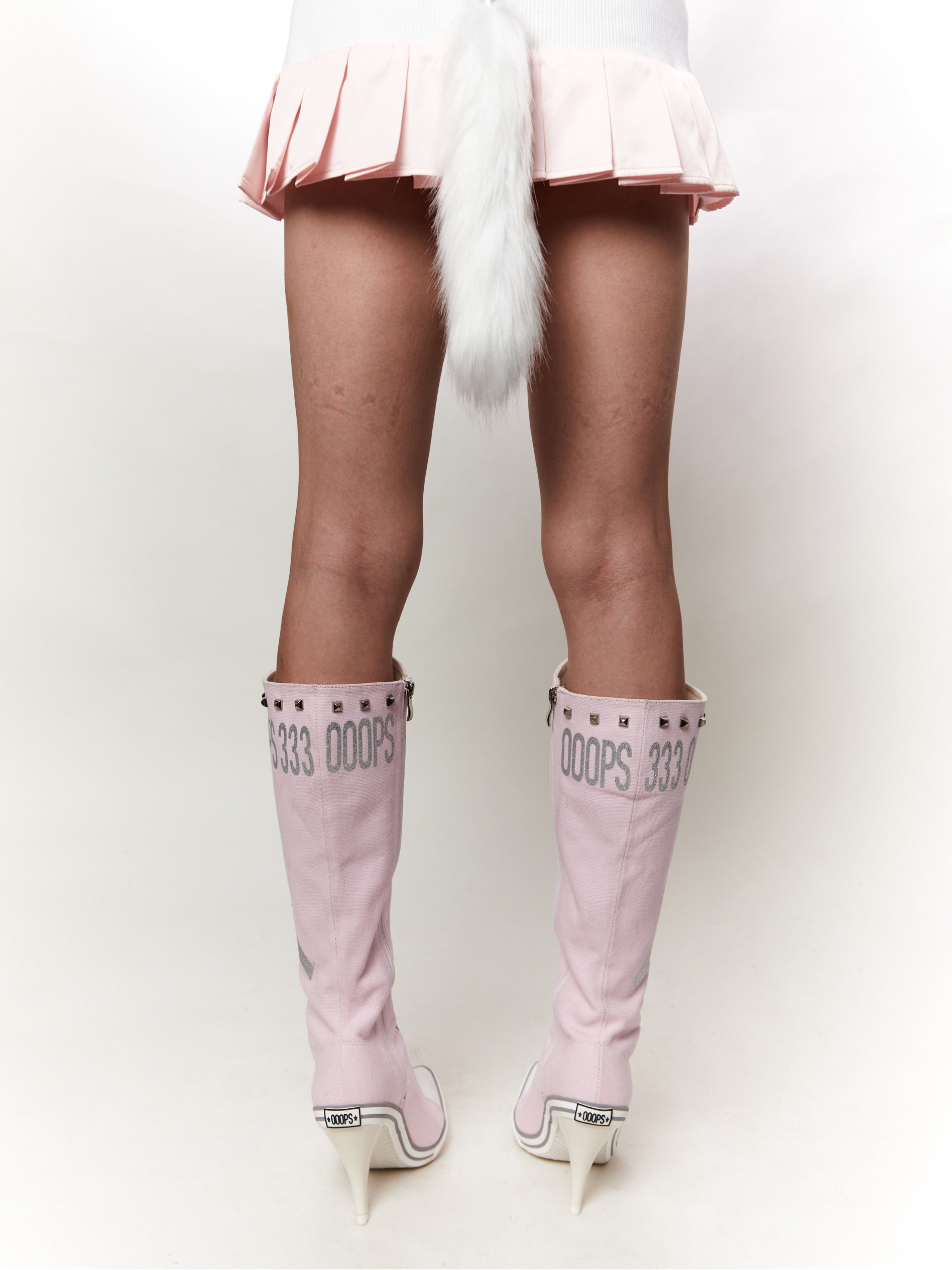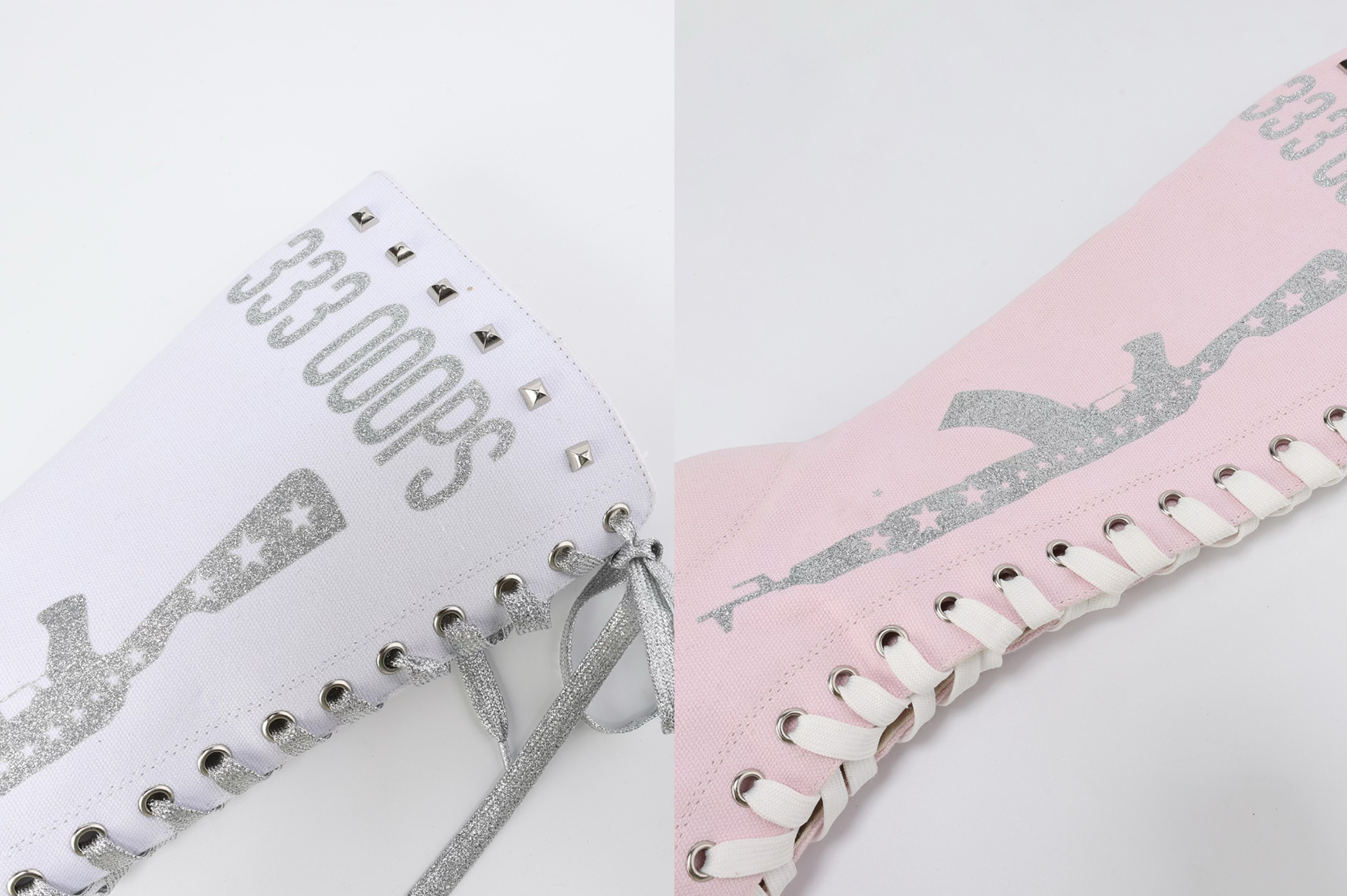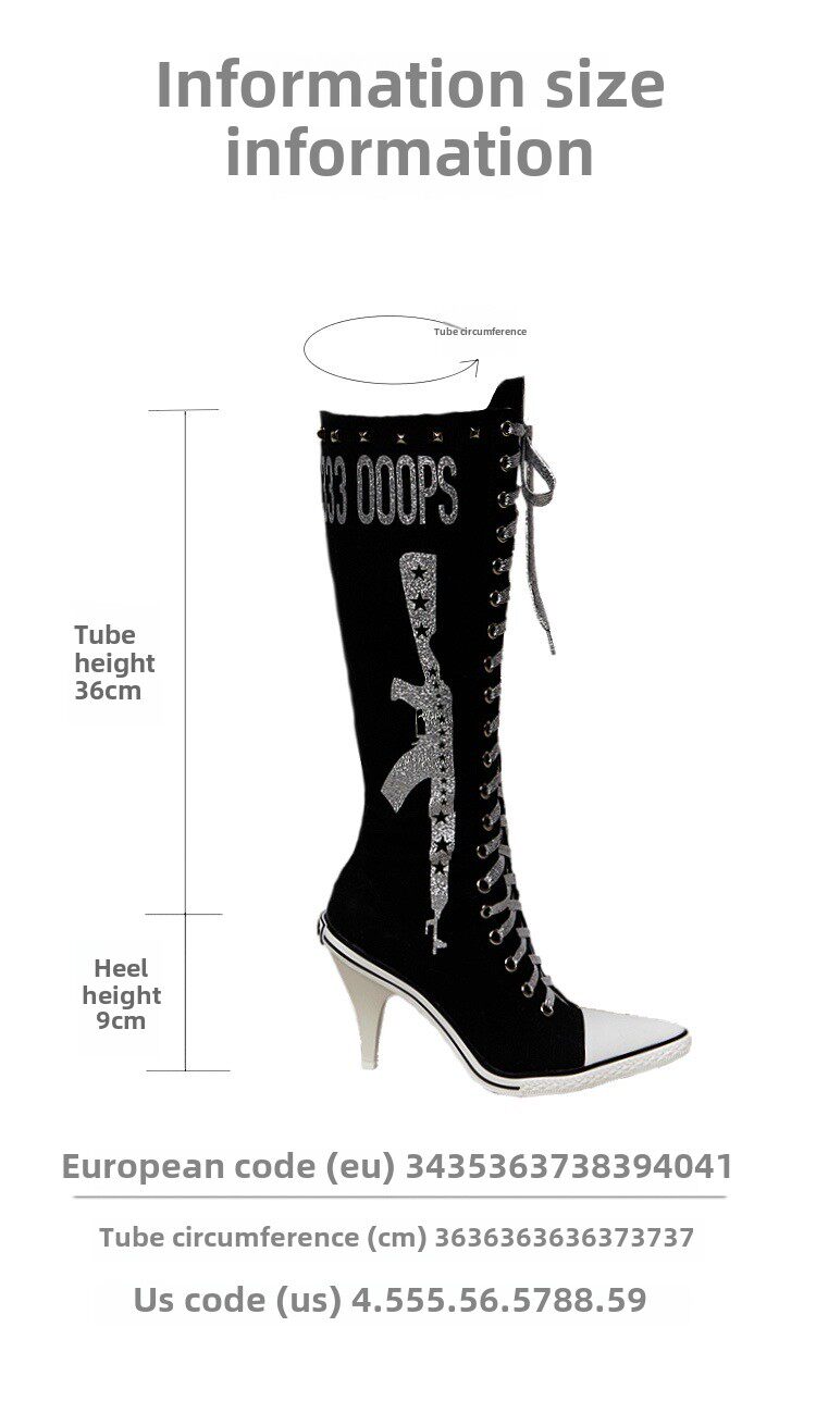 Ooops 原创重工辣妹铆钉闪粉印花帆布系带高帮及膝heels高跟鞋靴 [Original Page Link]