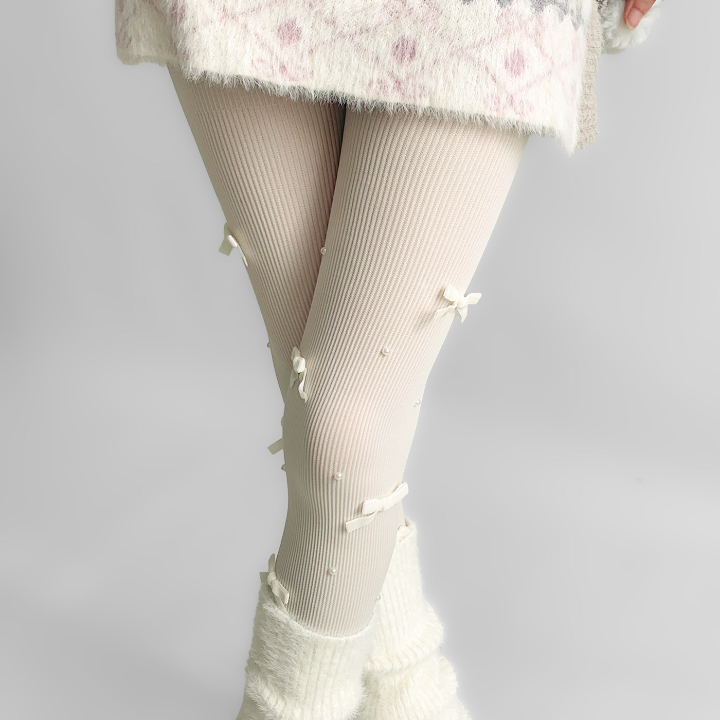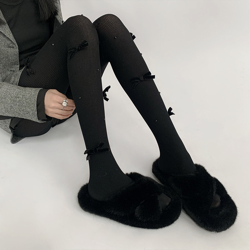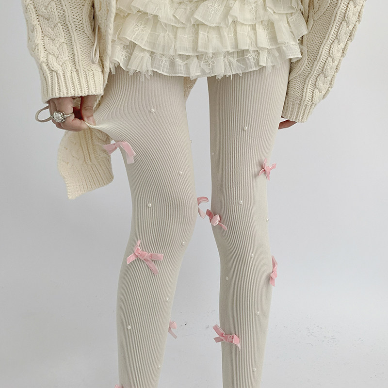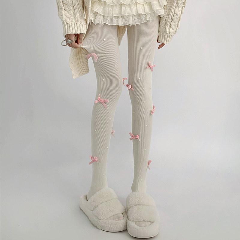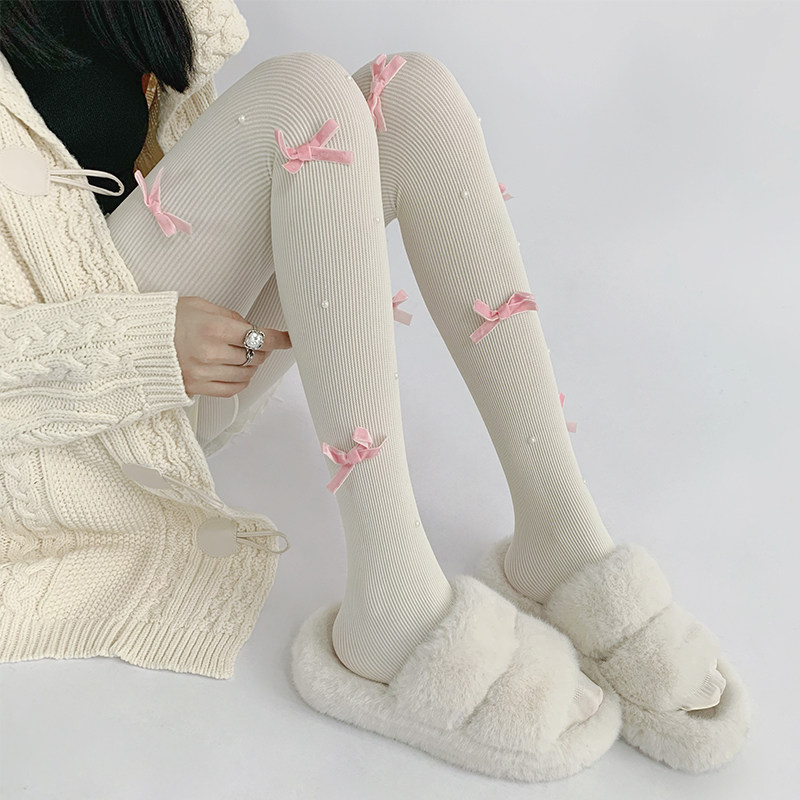 夜间教习室蝴蝶结丝袜女冬lolita白丝打底裤袜可爱日系珍珠袜子 [Original Page Link]