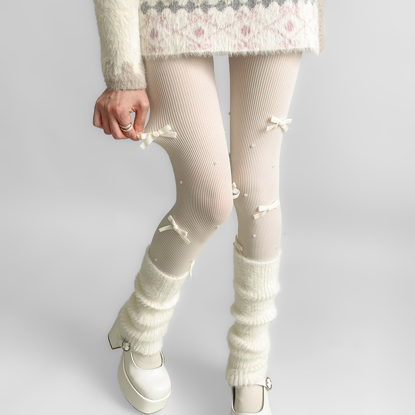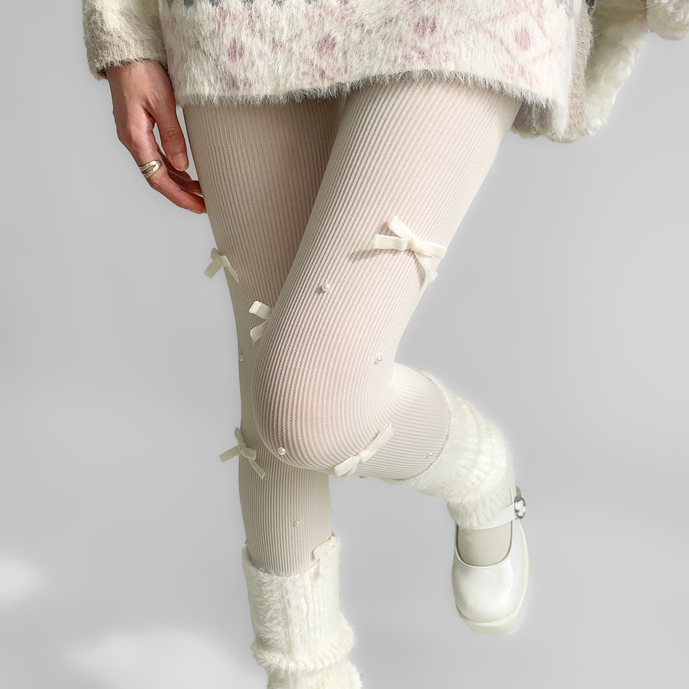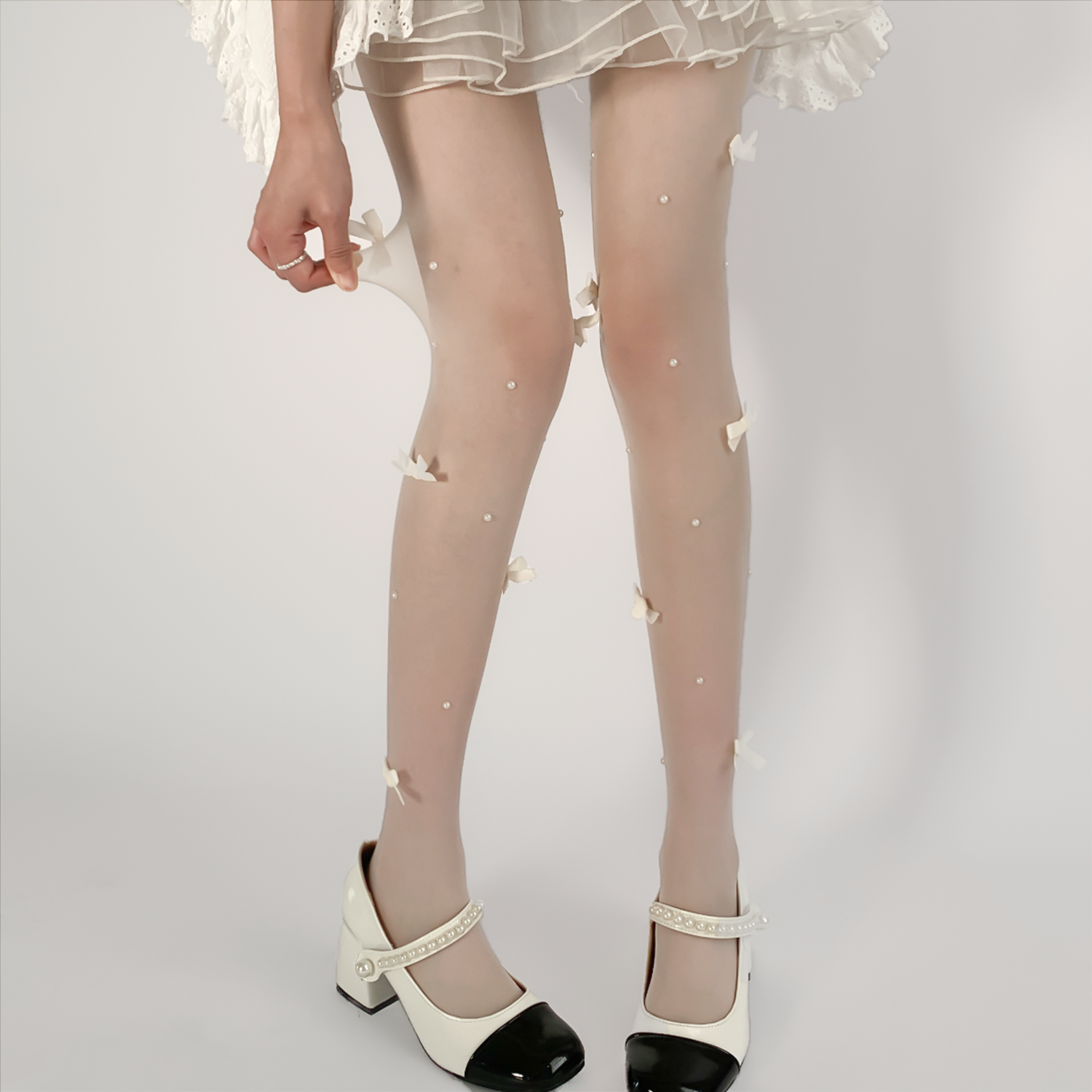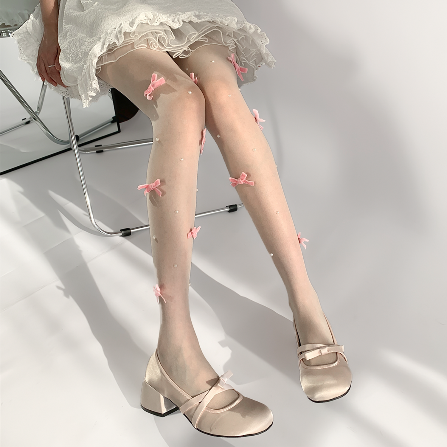 夜间教习室蝴蝶结丝袜女冬lolita白丝打底裤袜可爱日系珍珠袜子 [Original Page Link]
