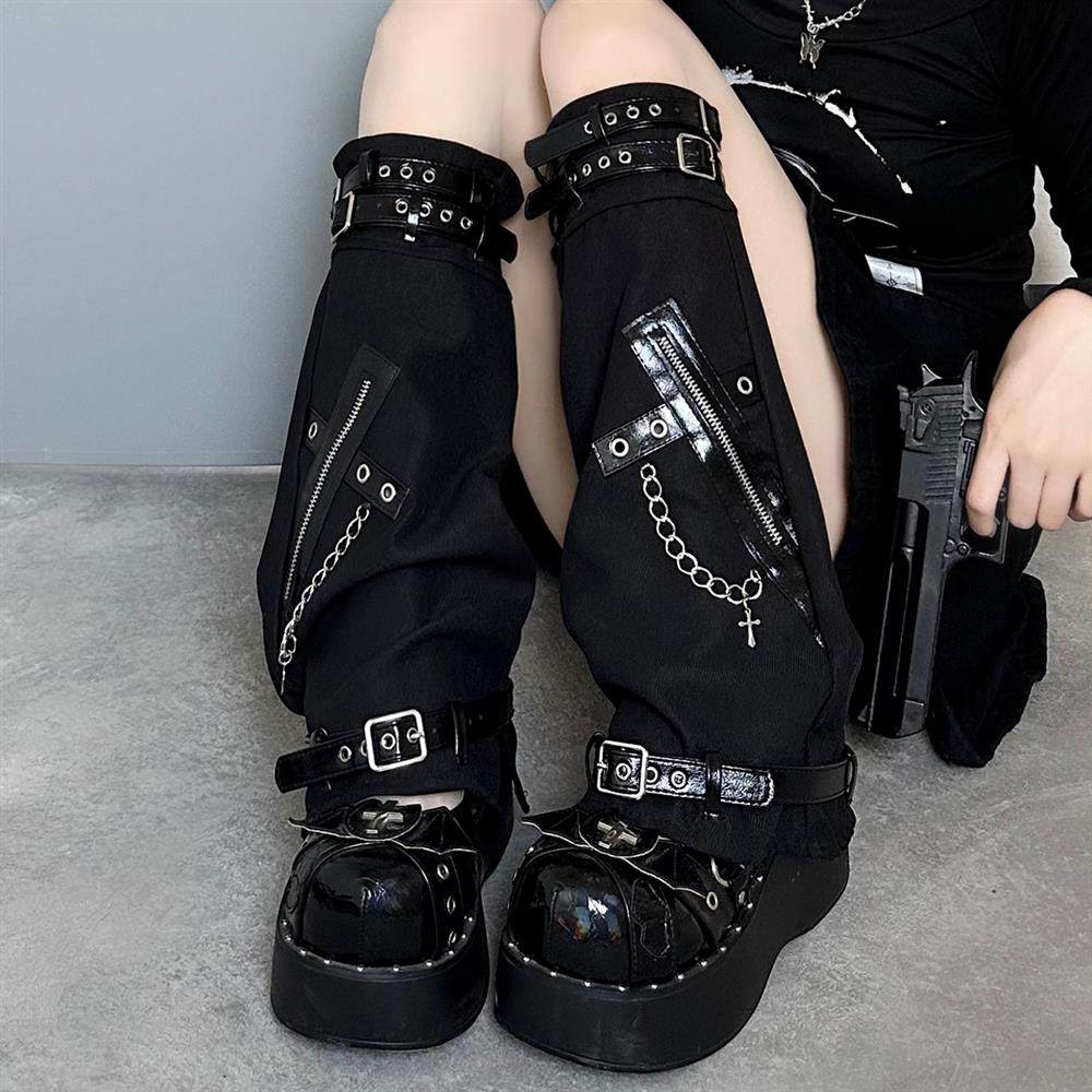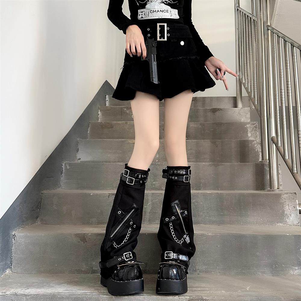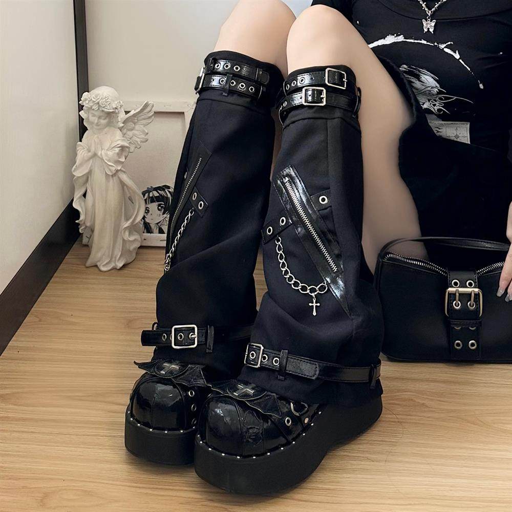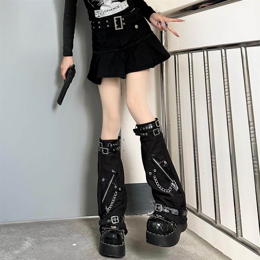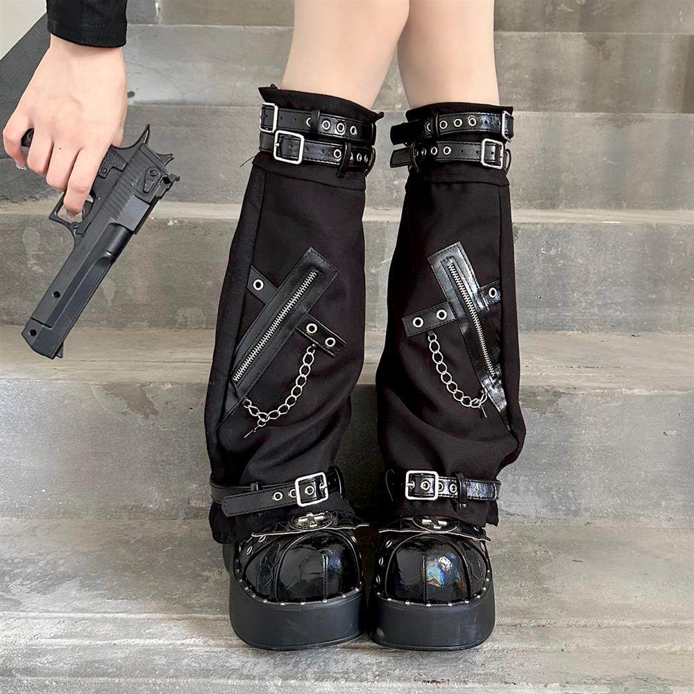 y2k十字架炼条皮扣腿套女性感辣妹个性暗黑朋克泡泡袜套jk亚文化 [Original Page Link]