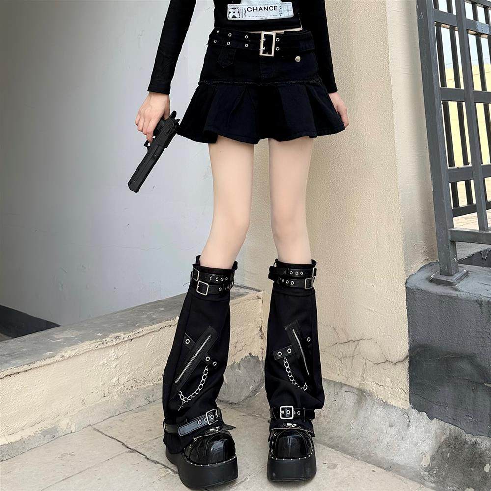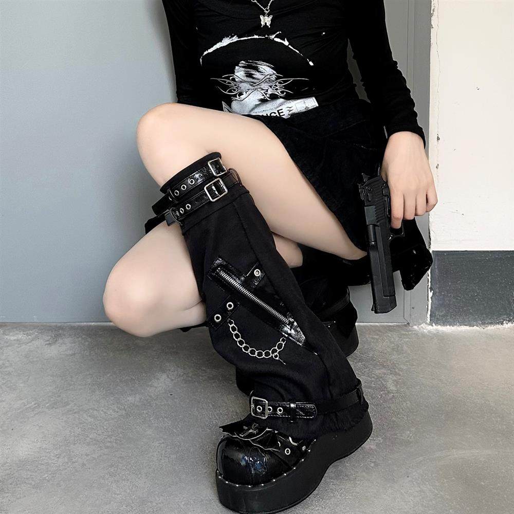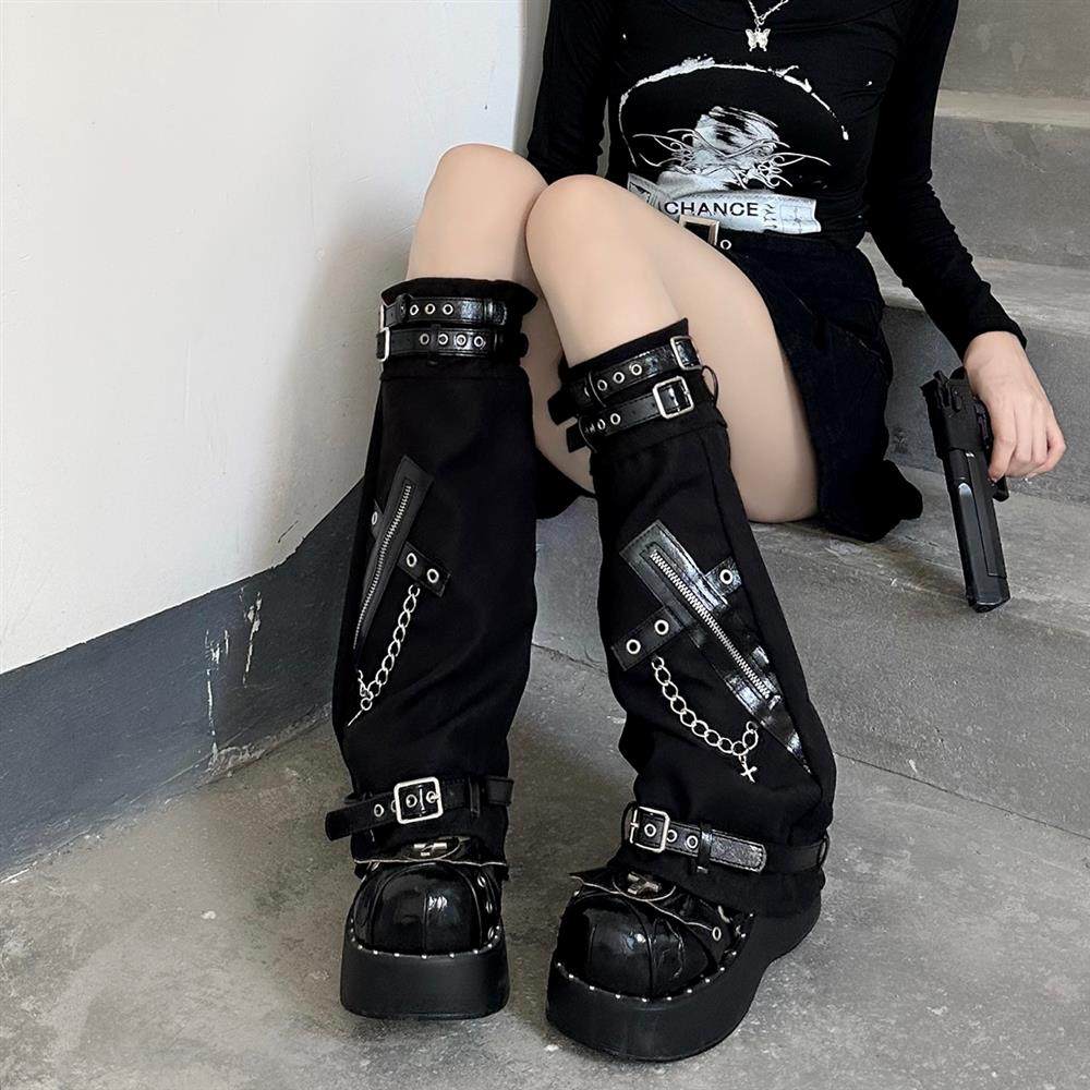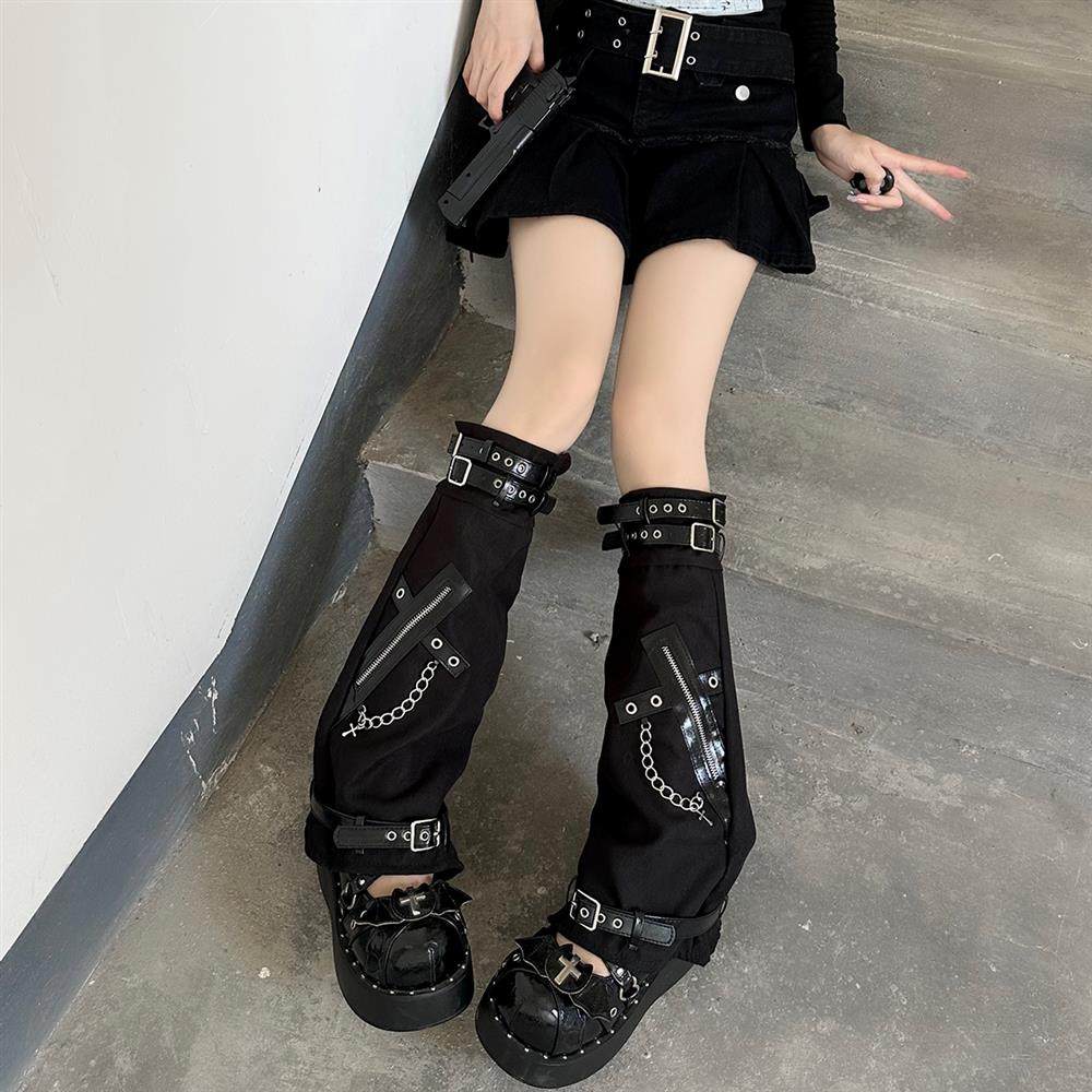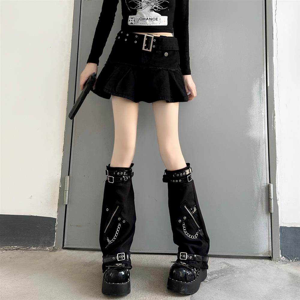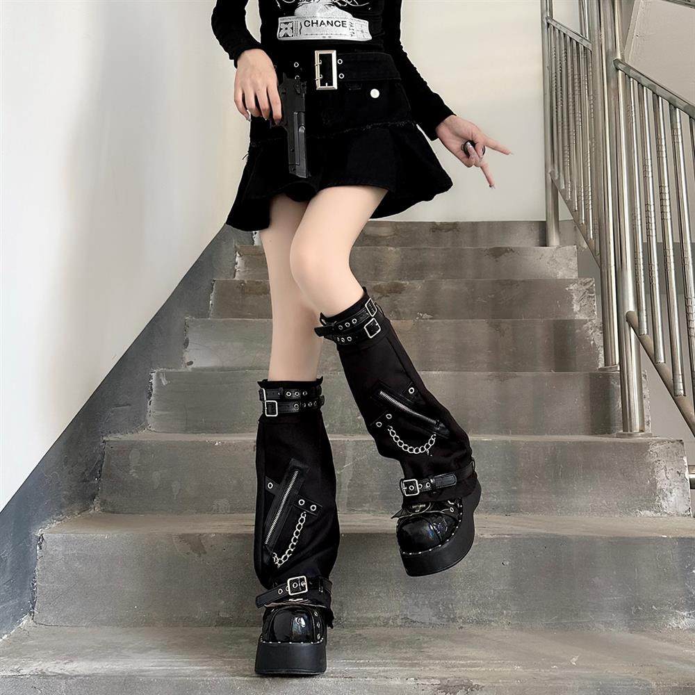 y2k十字架炼条皮扣腿套女性感辣妹个性暗黑朋克泡泡袜套jk亚文化 [Original Page Link]