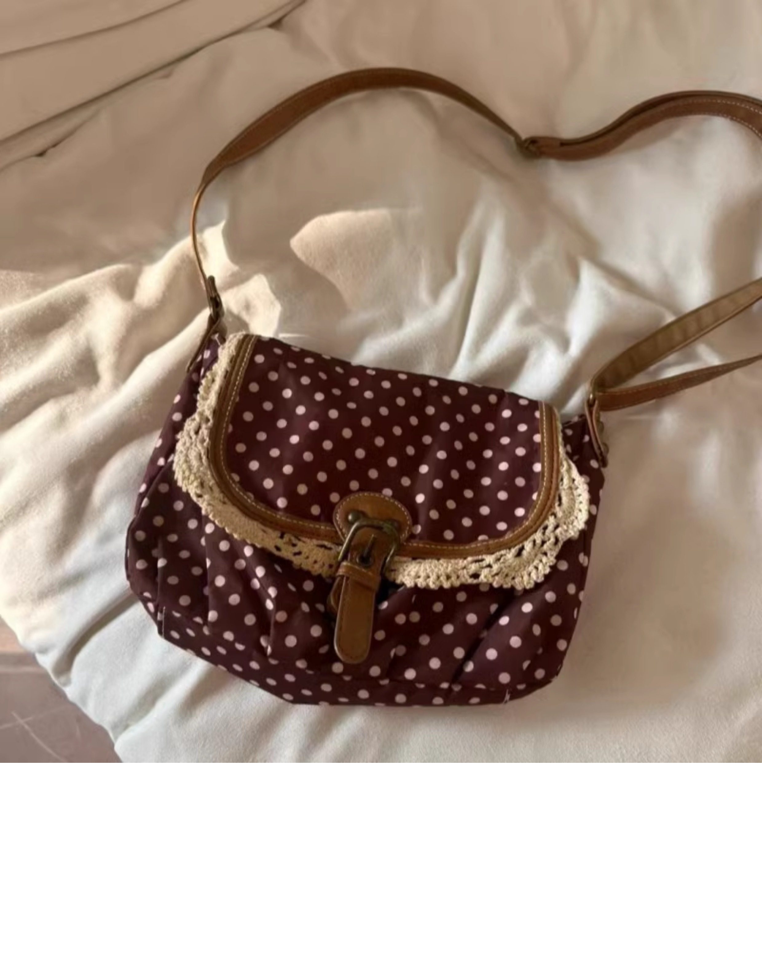 2204新款韩版波点小众设计古著包包女单肩斜挎包高级感圆点帆布包 [Original Page Link]