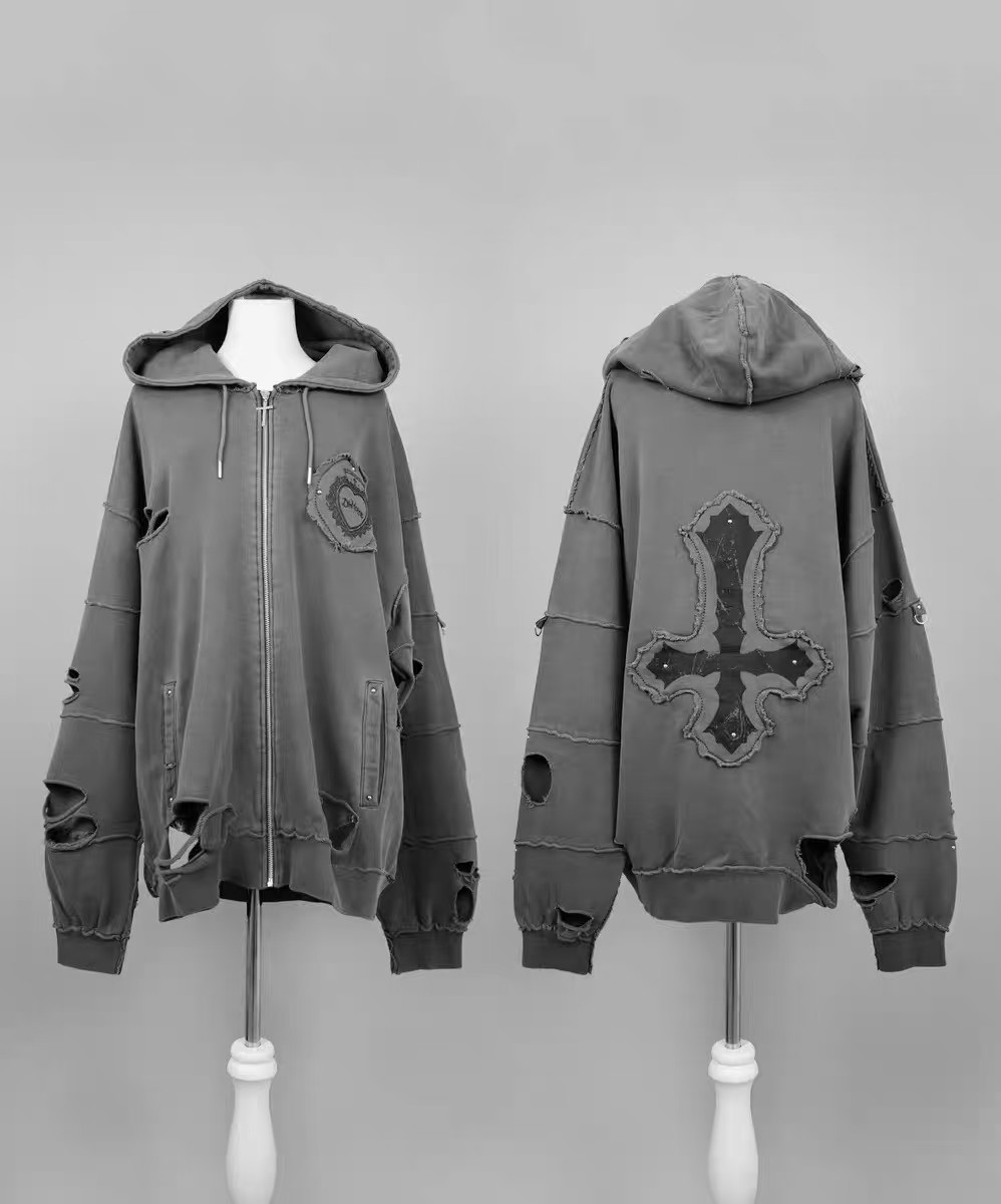 甜甜小迷狐十字架复古亚文化破洞哥特朋克连帽卫衣开衫外套 [Original Page Link]