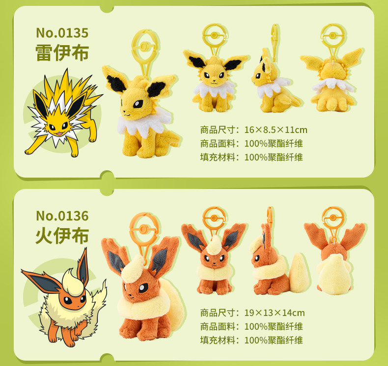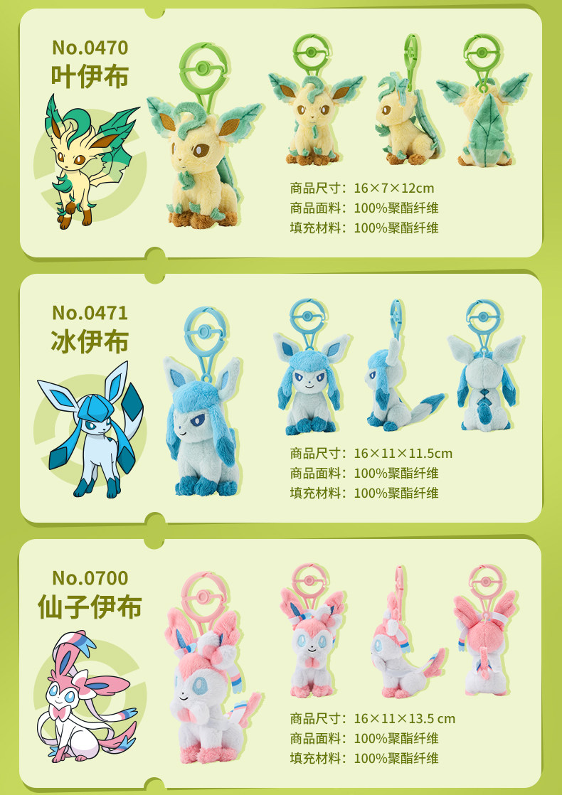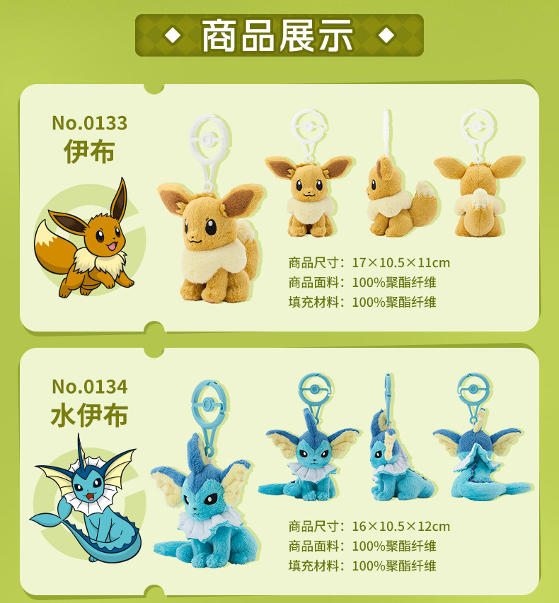 宝可梦Pokémon 精灵球扣 毛绒挂件 仙子伊布水伊布火伊布叶伊布 [Original Page Link]