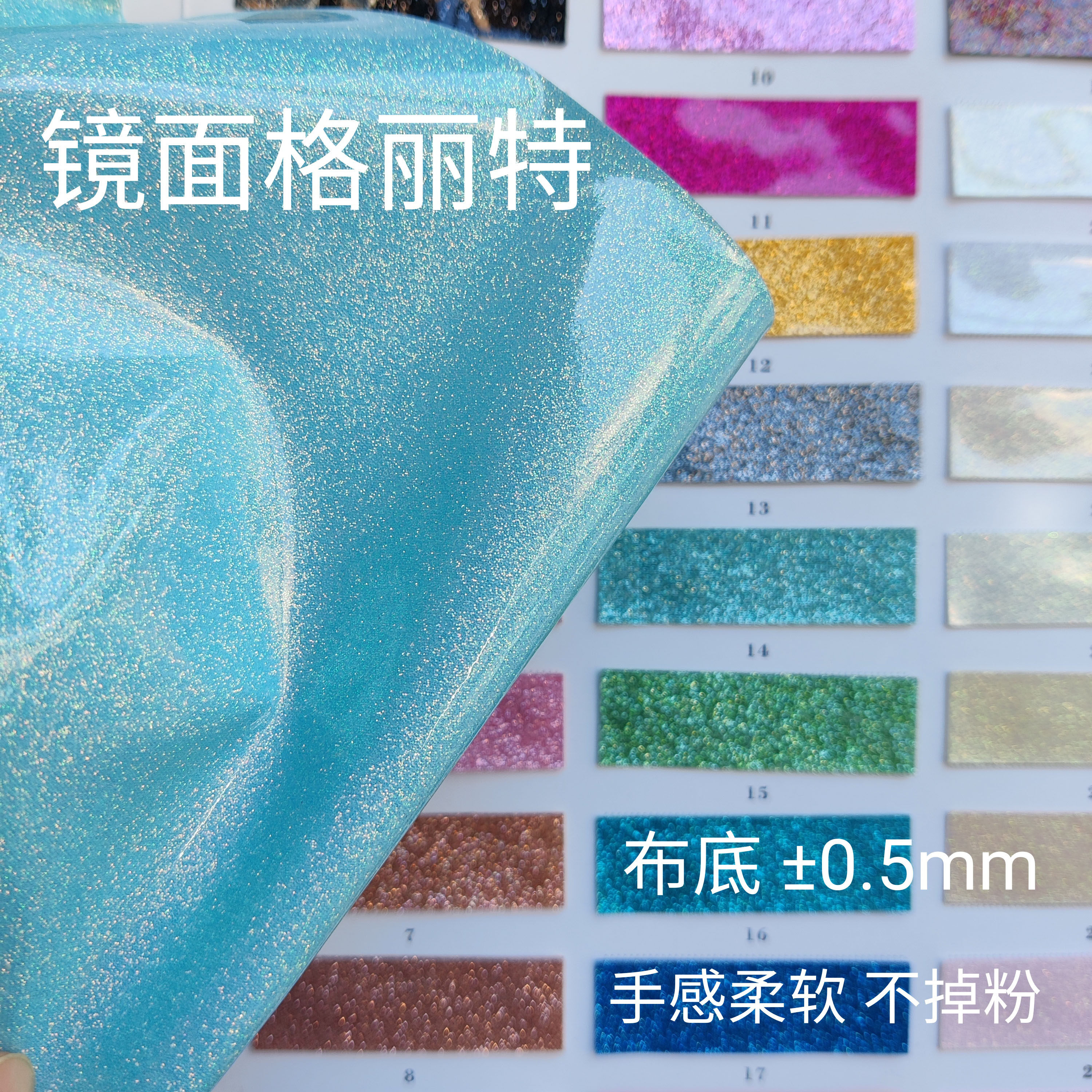 透明金葱格丽特闪粉格利特pvc人造革彷皮面料手袋箱包不掉粉镜面 [Original Page Link]