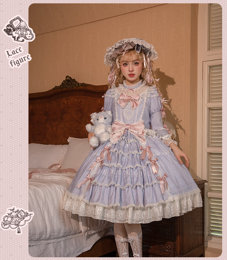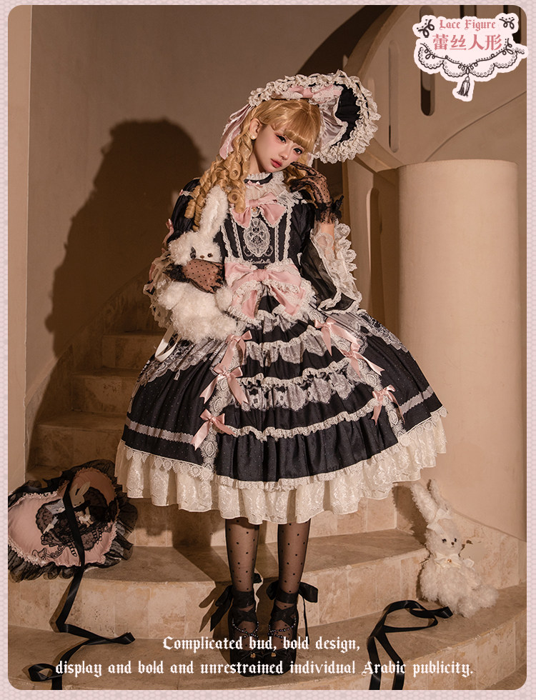 Lace Lolita Dress Original Design Elegant Embroidery Doll-Style Dress Flowers and Pearl Box Brand CLA Style