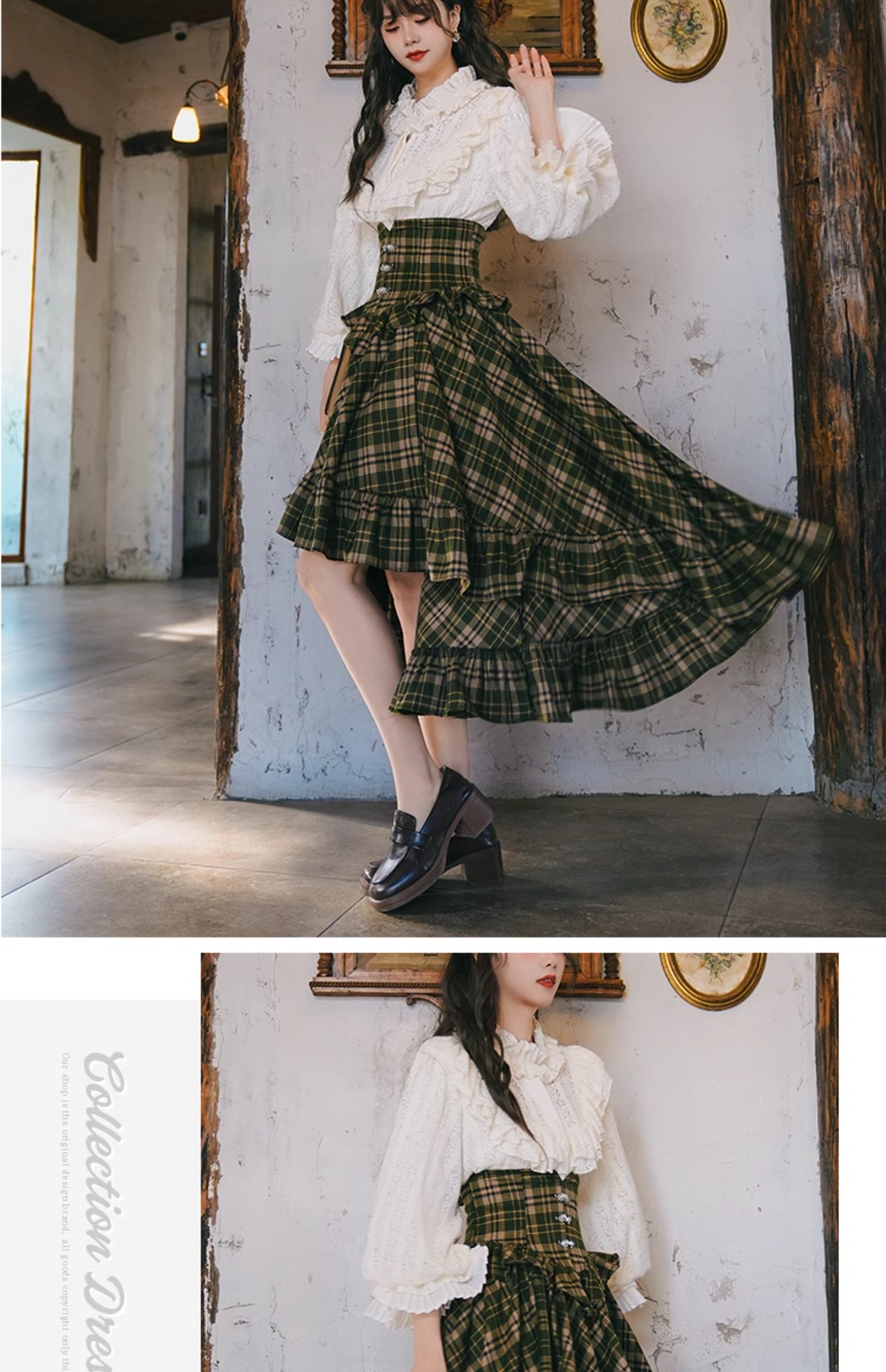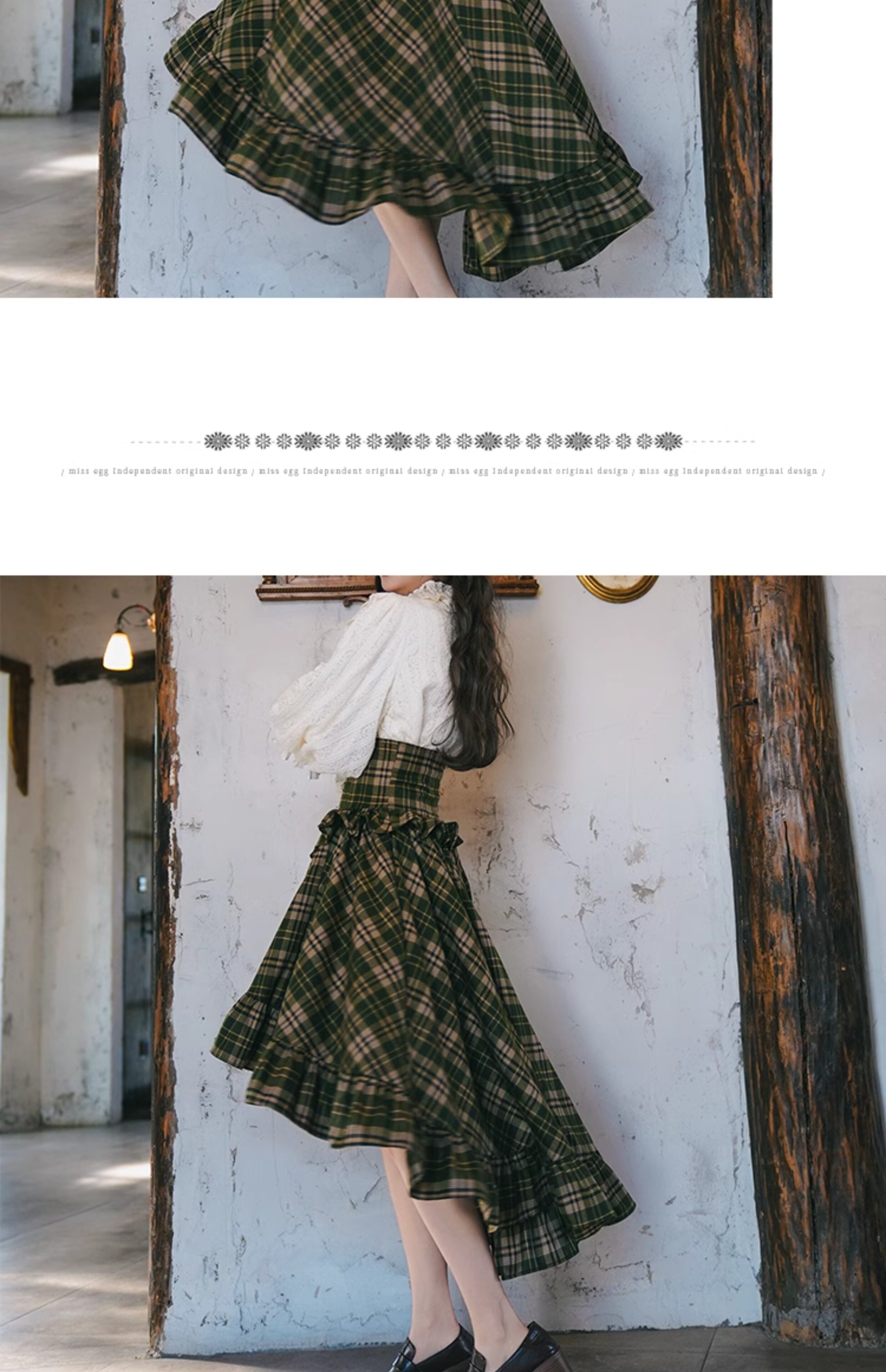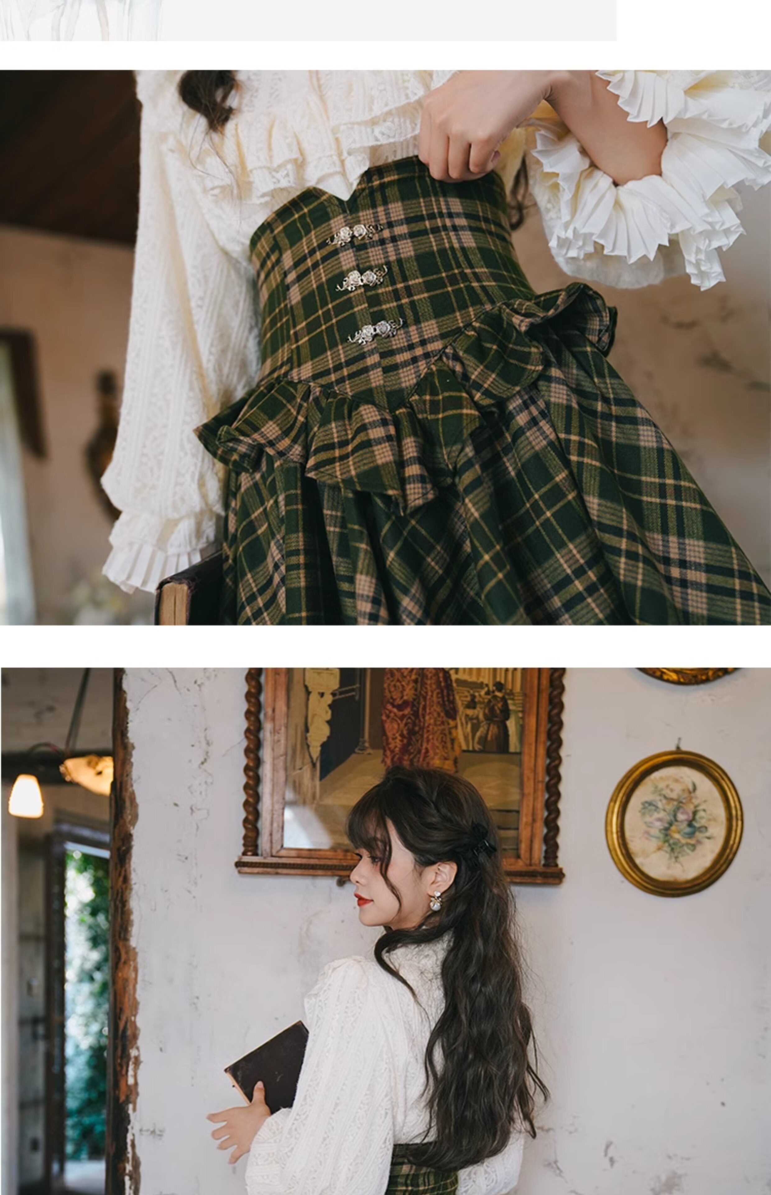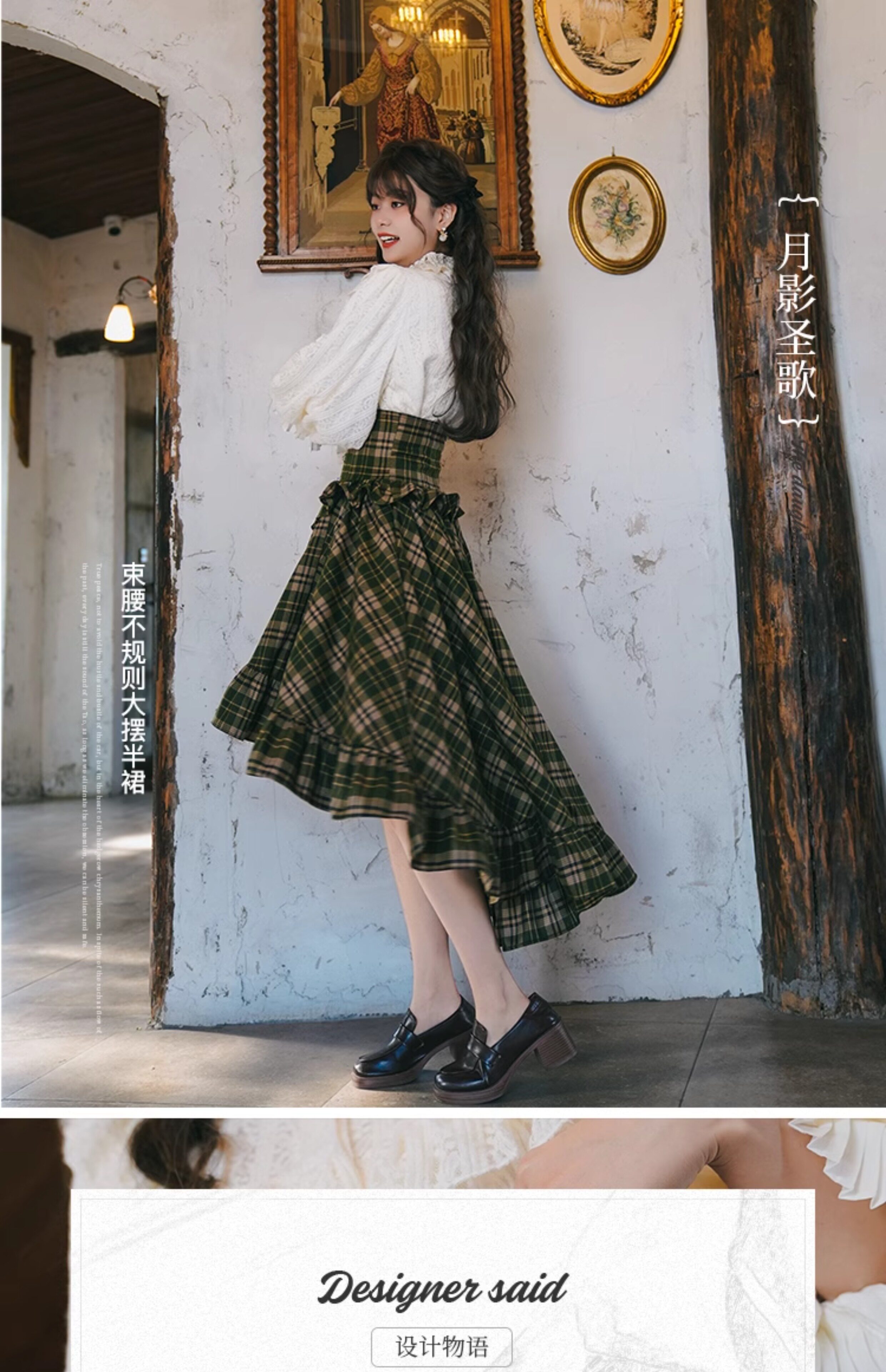 Mi'ai Original "Moonlight Hymn" Court-Style Vintage Victorian Check Waist-cinching Swallowtail Full Skirt Thick Long Skirt