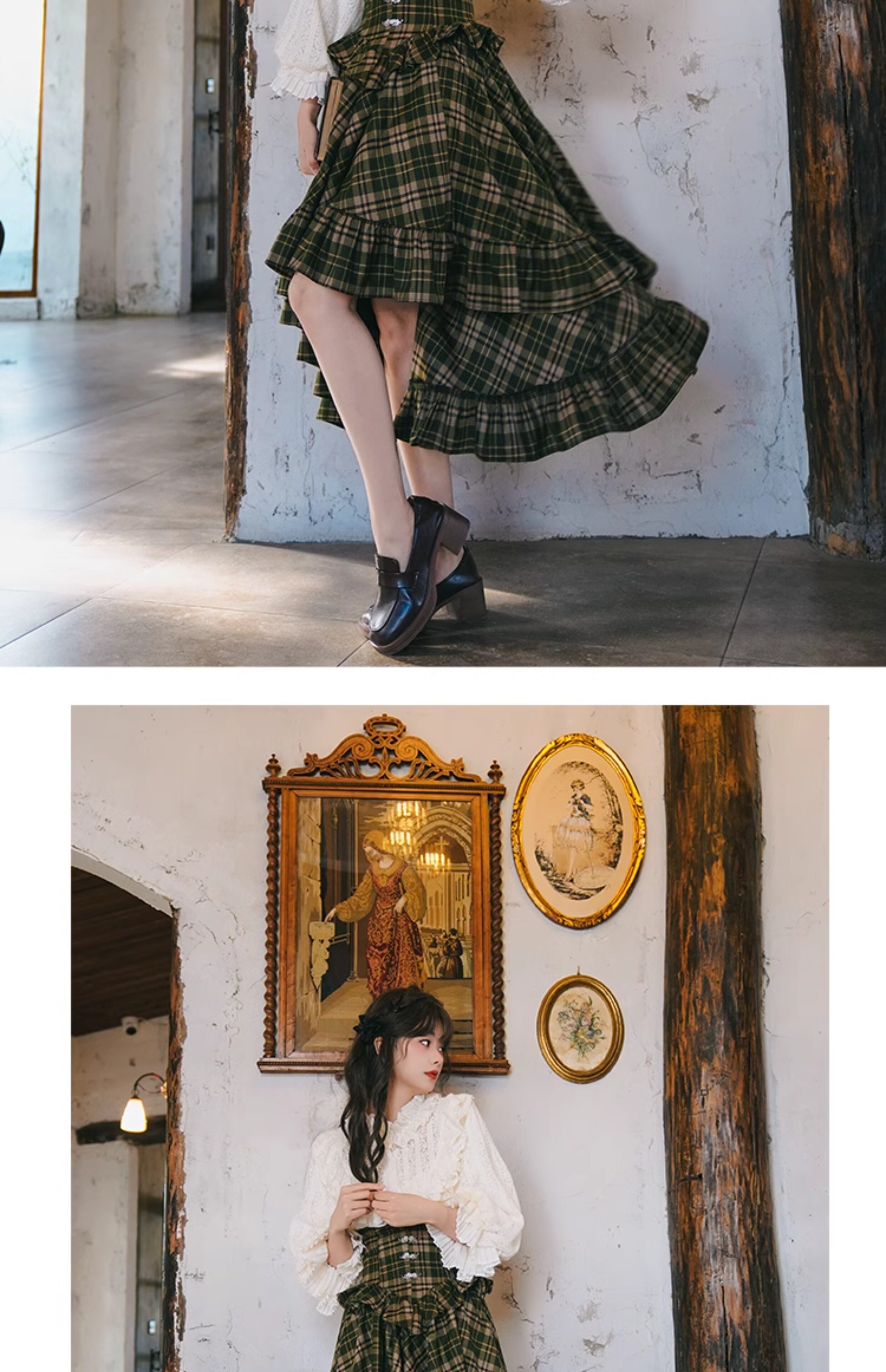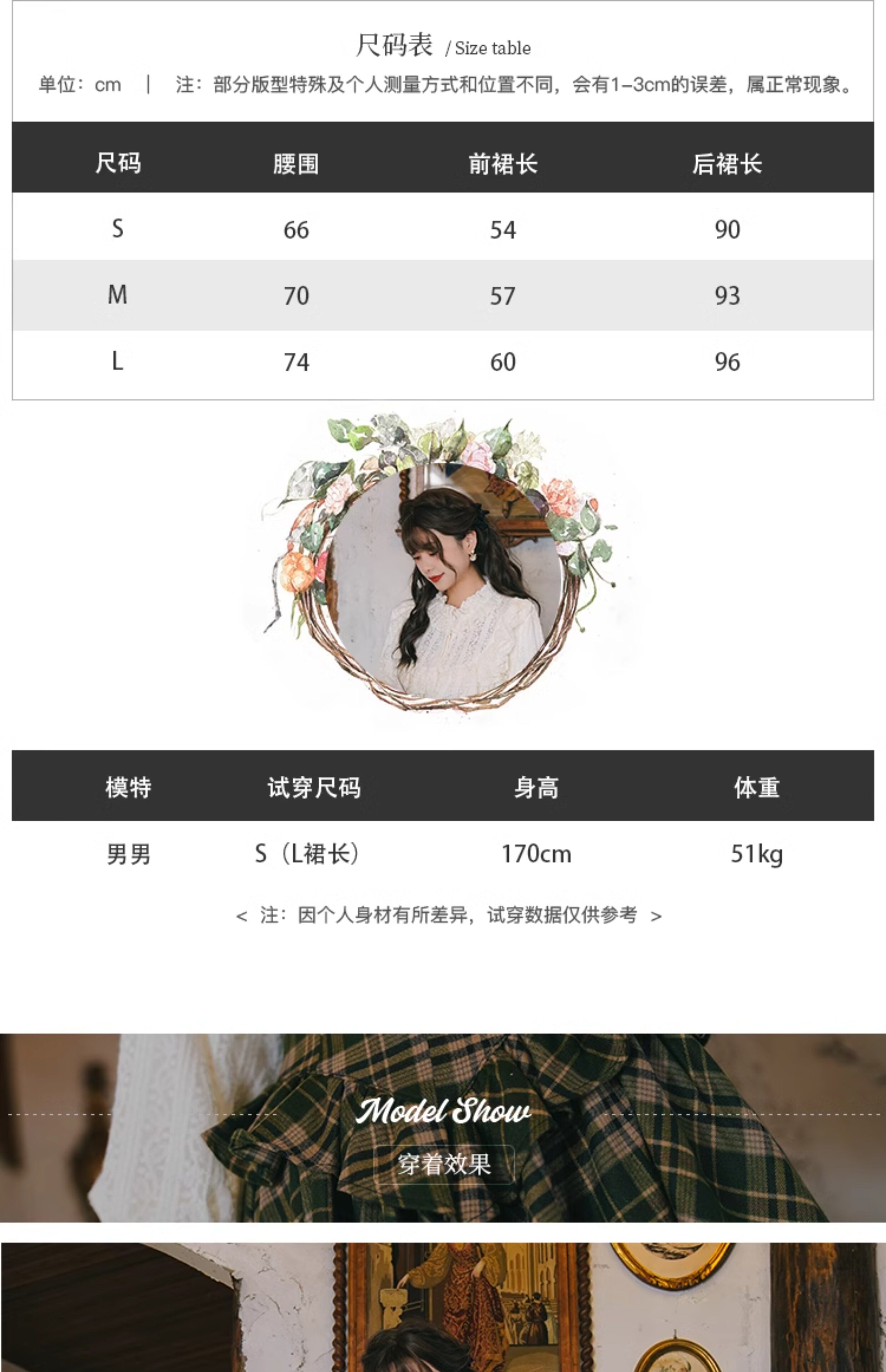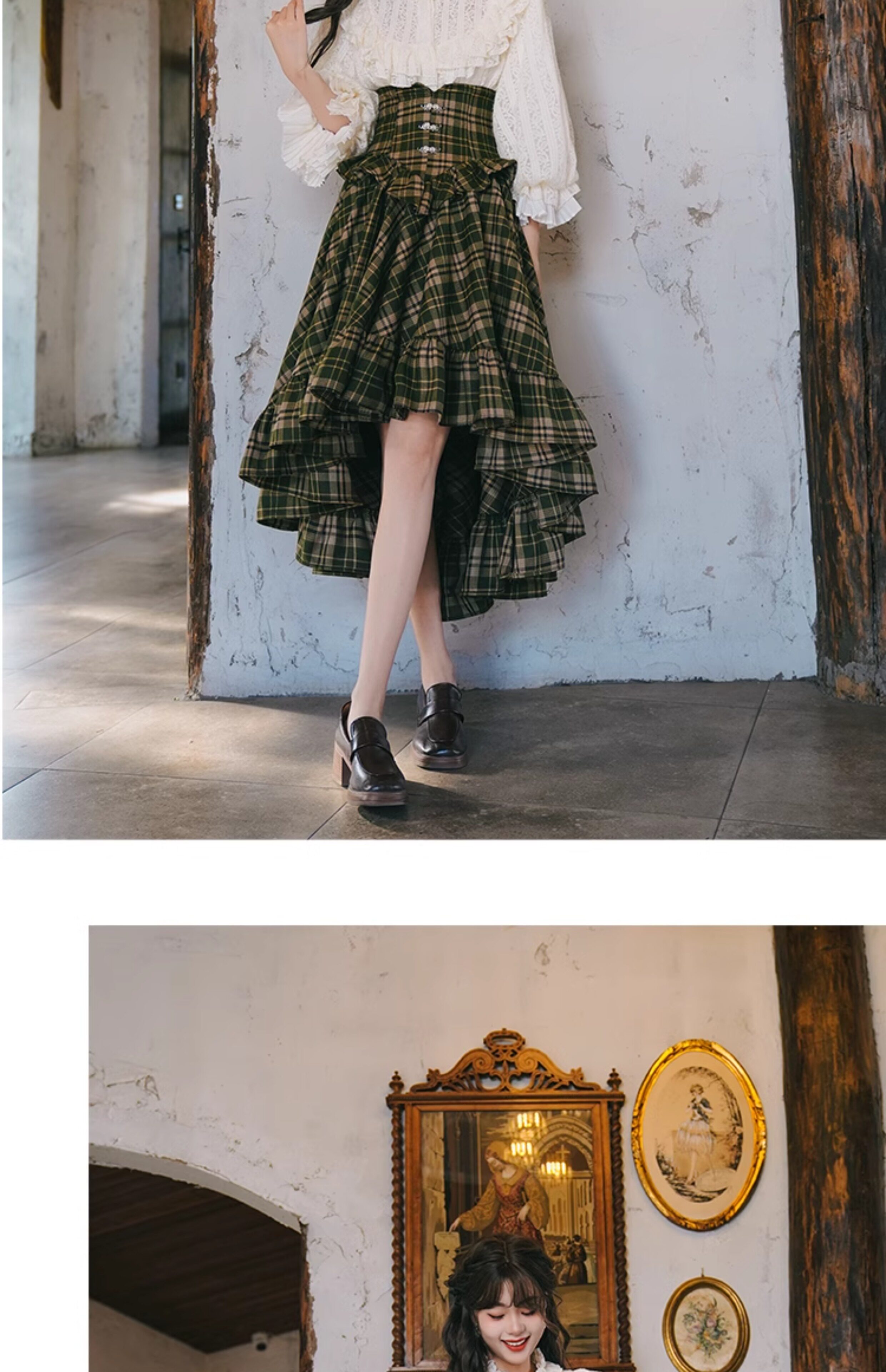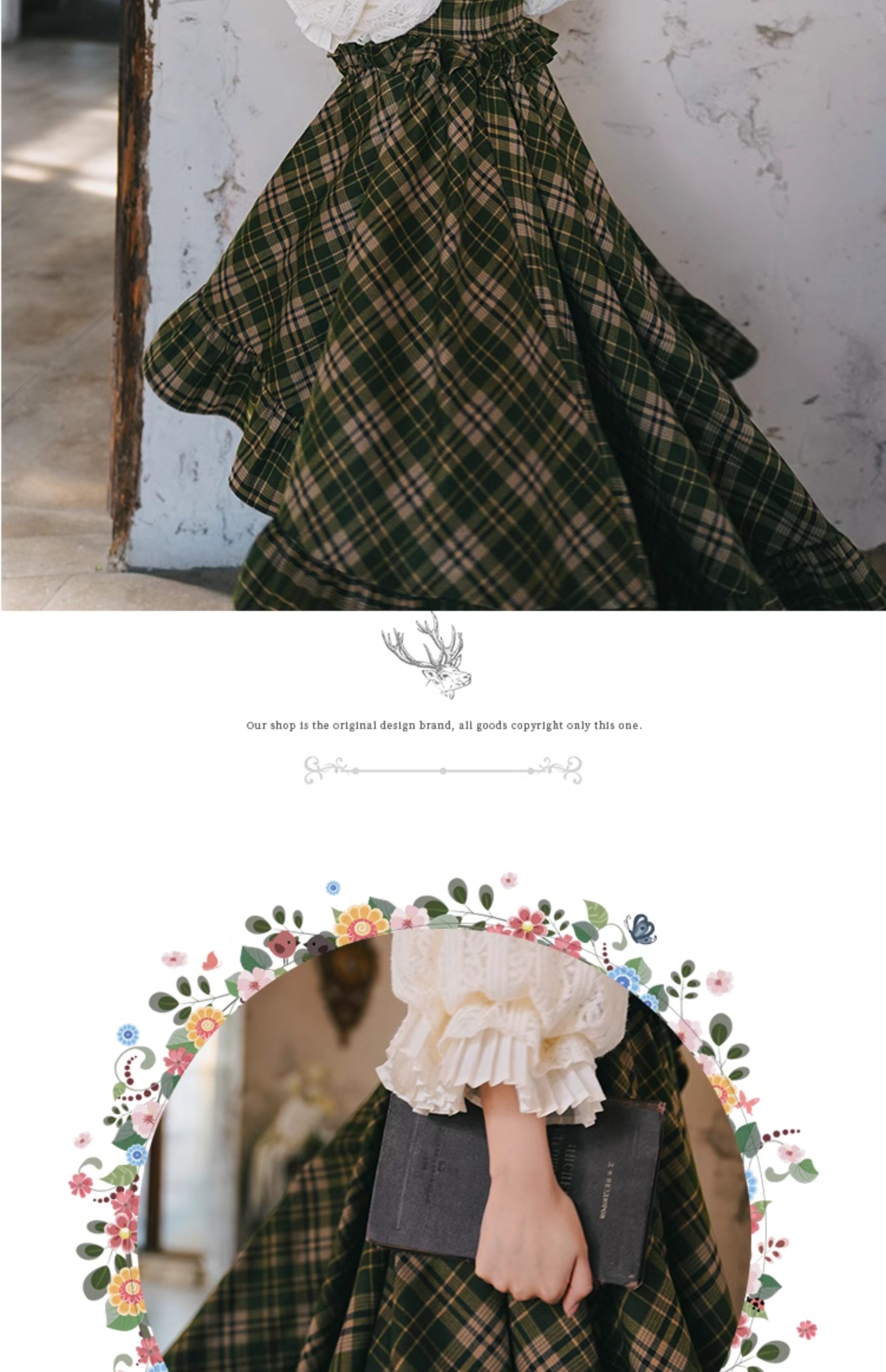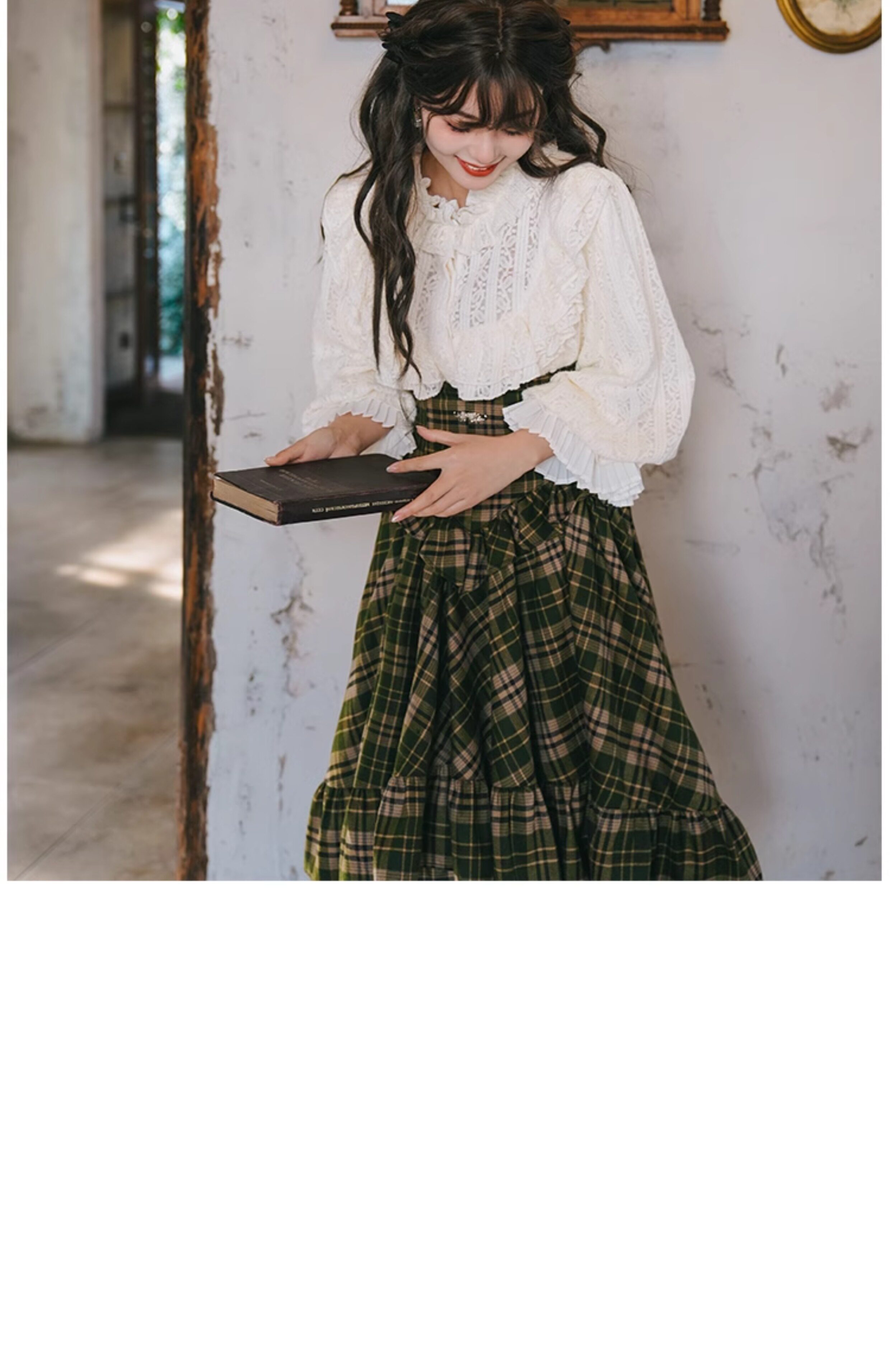 Mi'ai Original "Moonlight Hymn" Court-Style Vintage Victorian Check Waist-cinching Swallowtail Full Skirt Thick Long Skirt