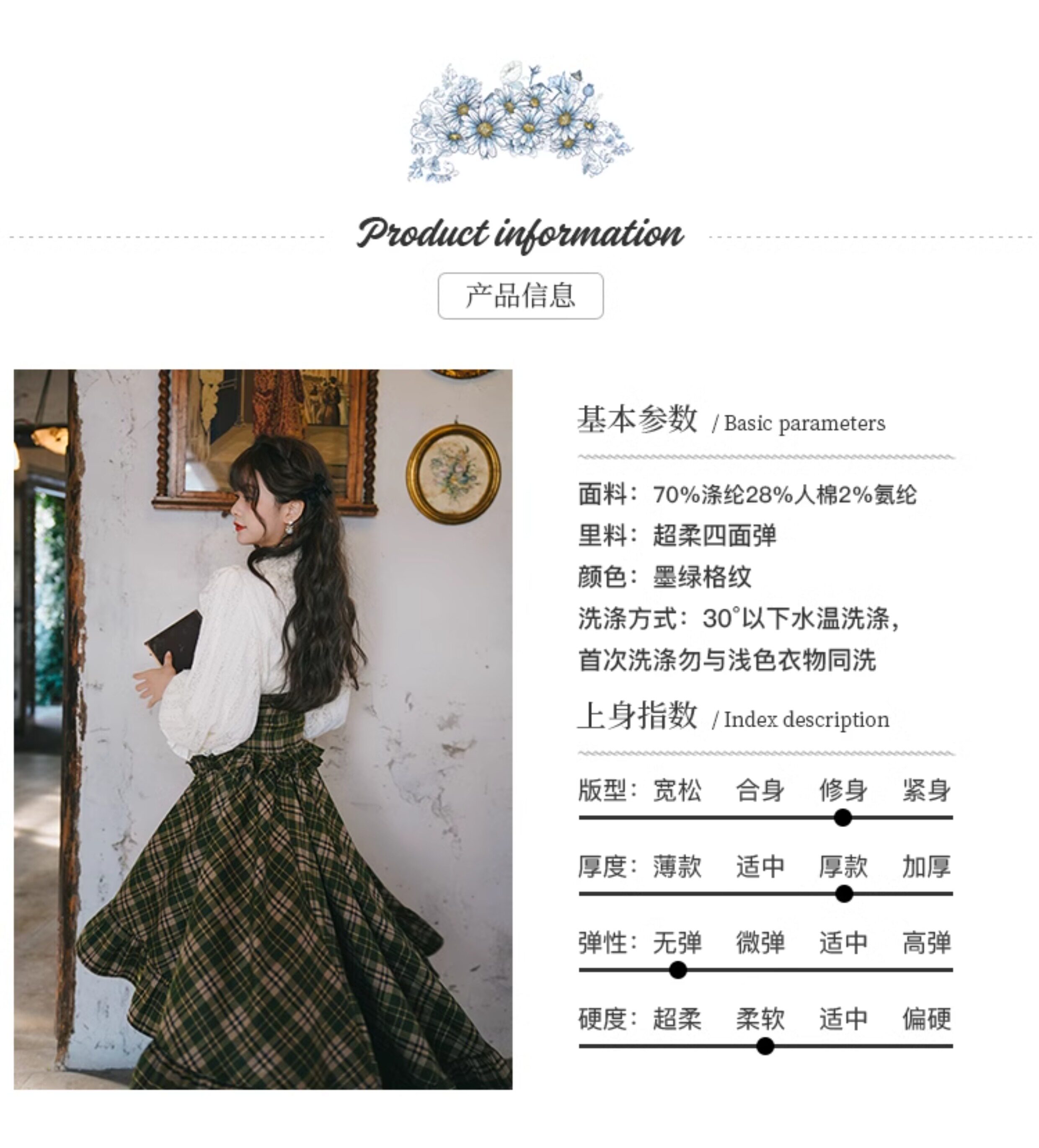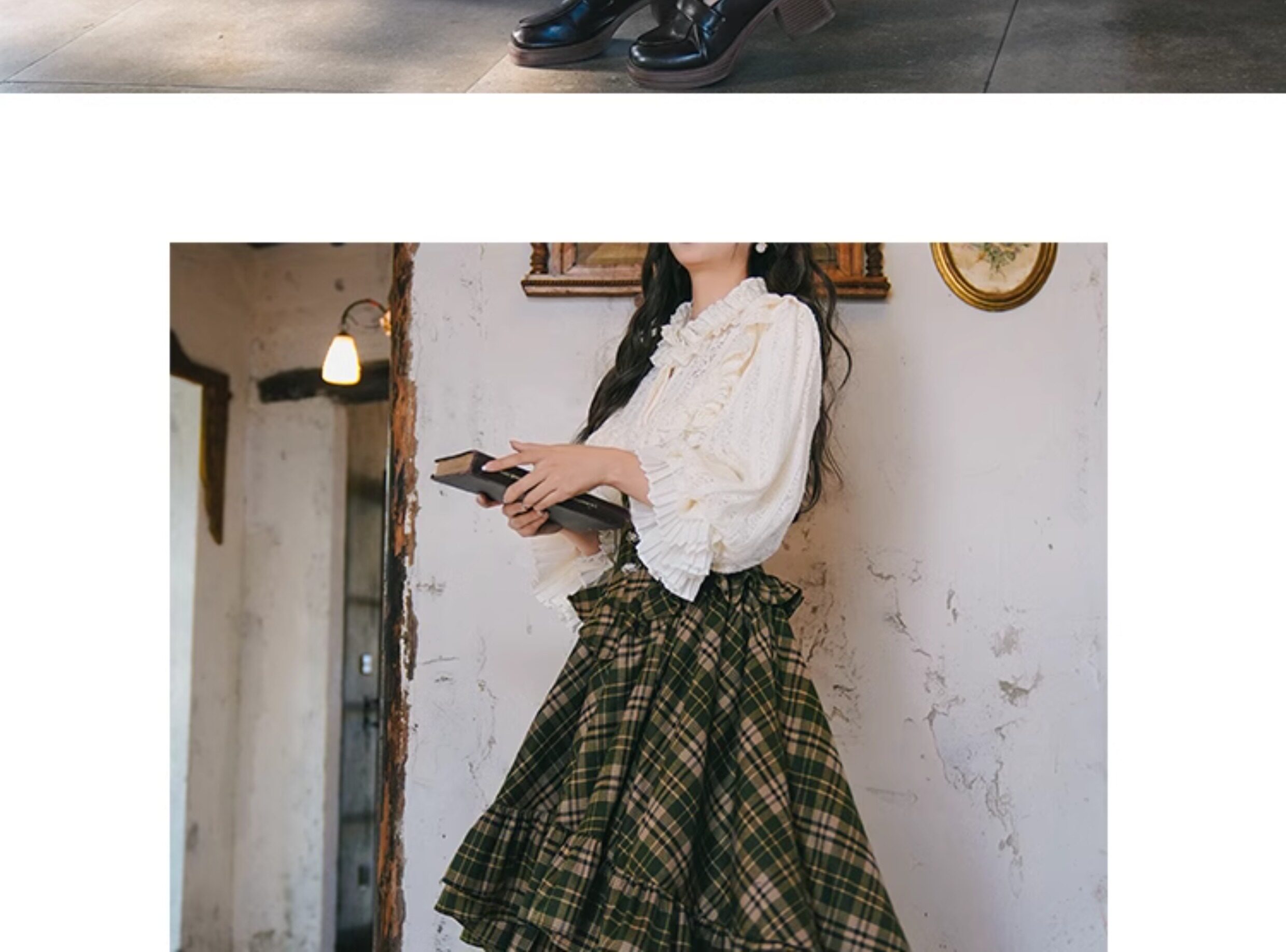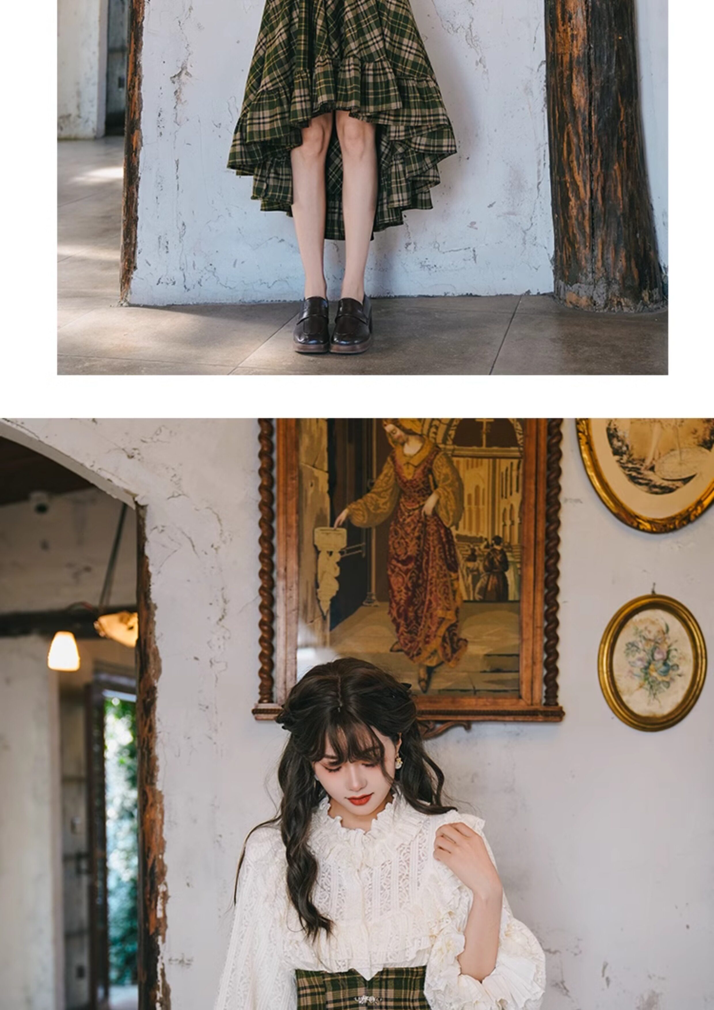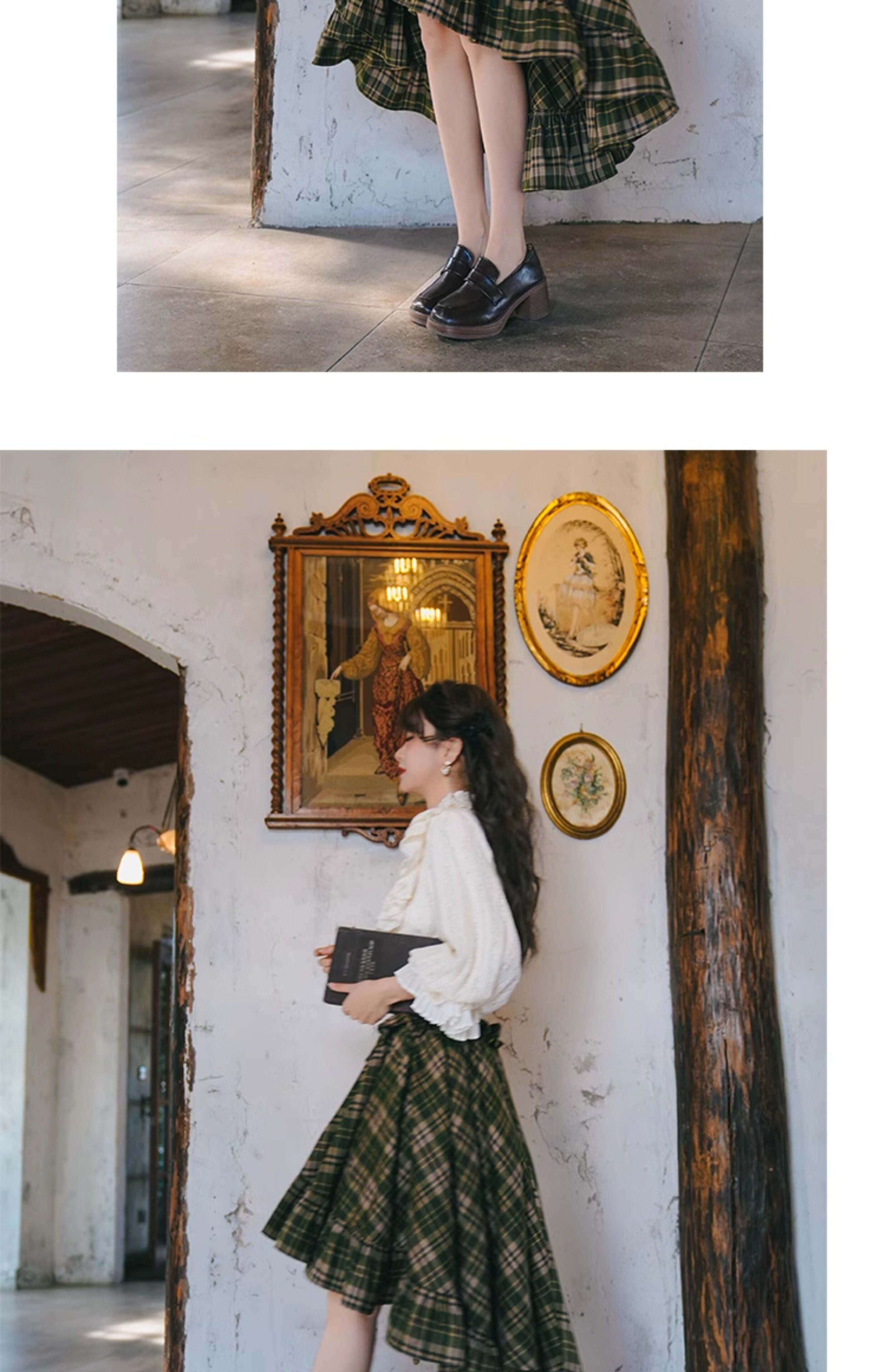Mi'ai Original "Moonlight Hymn" Court-Style Vintage Victorian Check Waist-cinching Swallowtail Full Skirt Thick Long Skirt