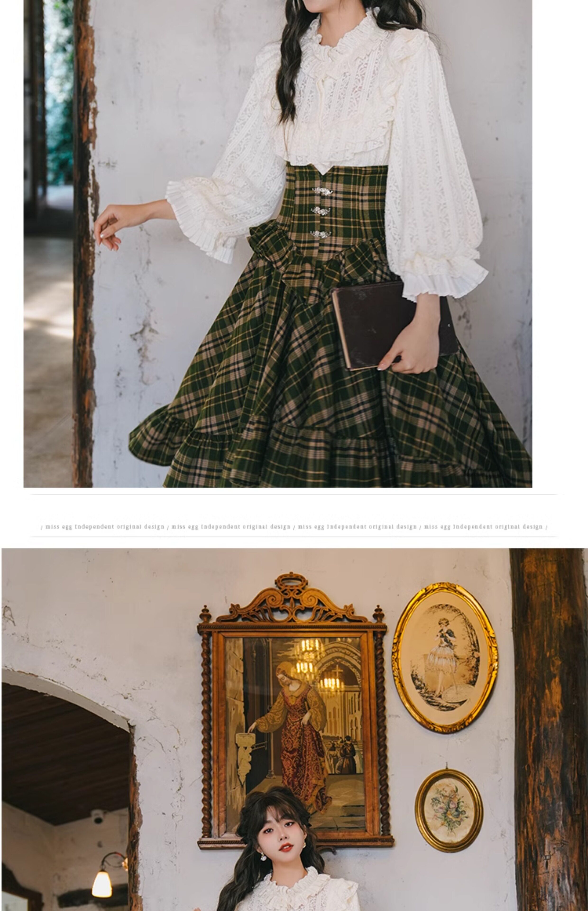 弥爱原创《月影圣歌》宫廷覆古维多利亚格纹束腰燕尾大摆裙厚长裙 [Original Page Link]