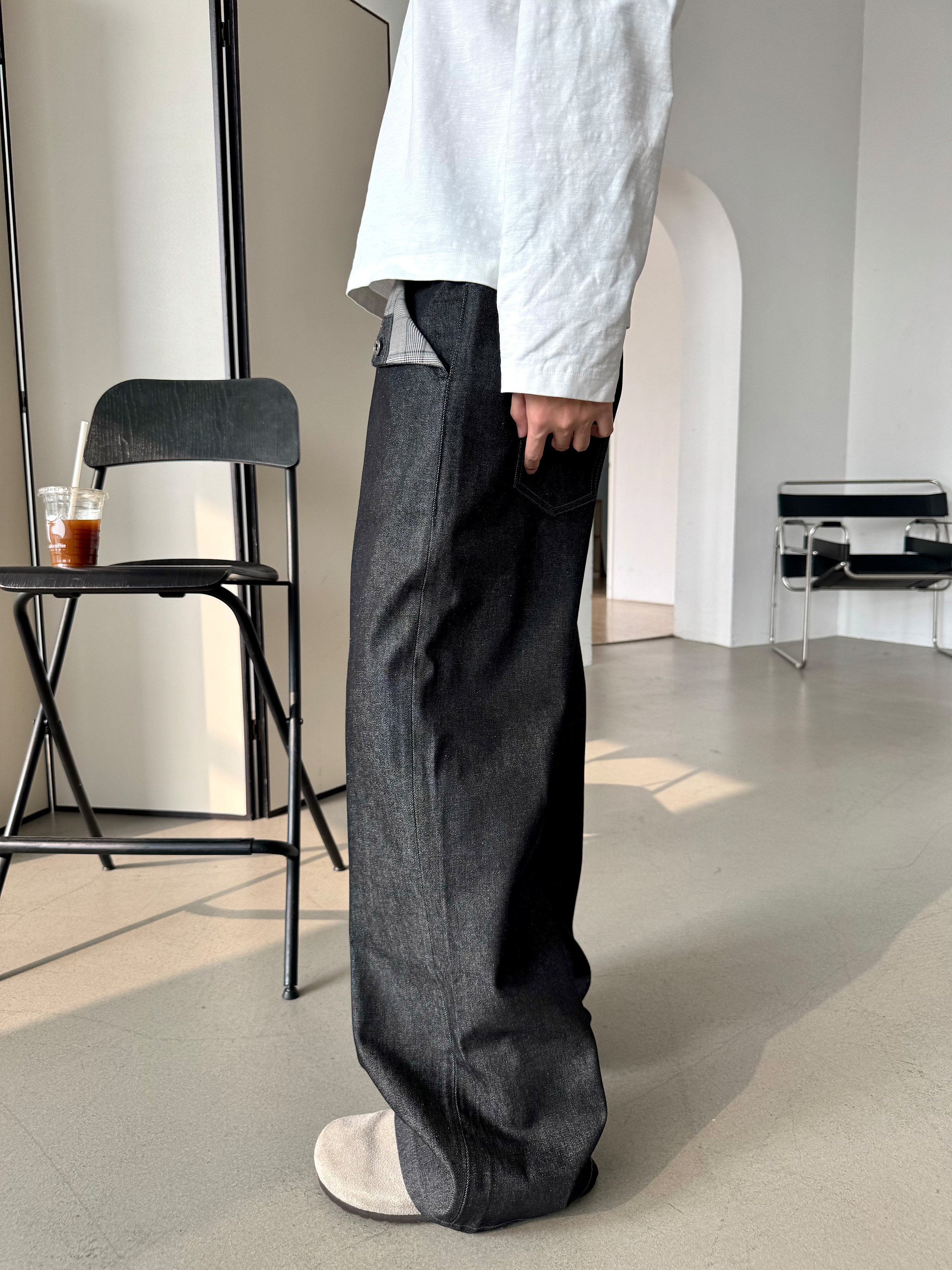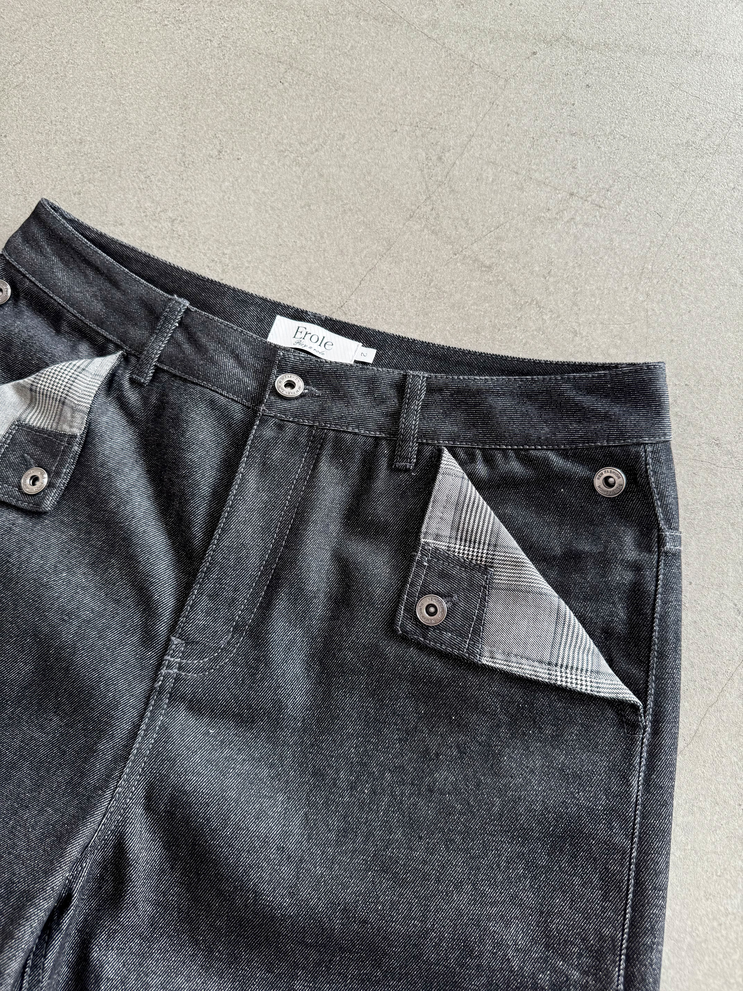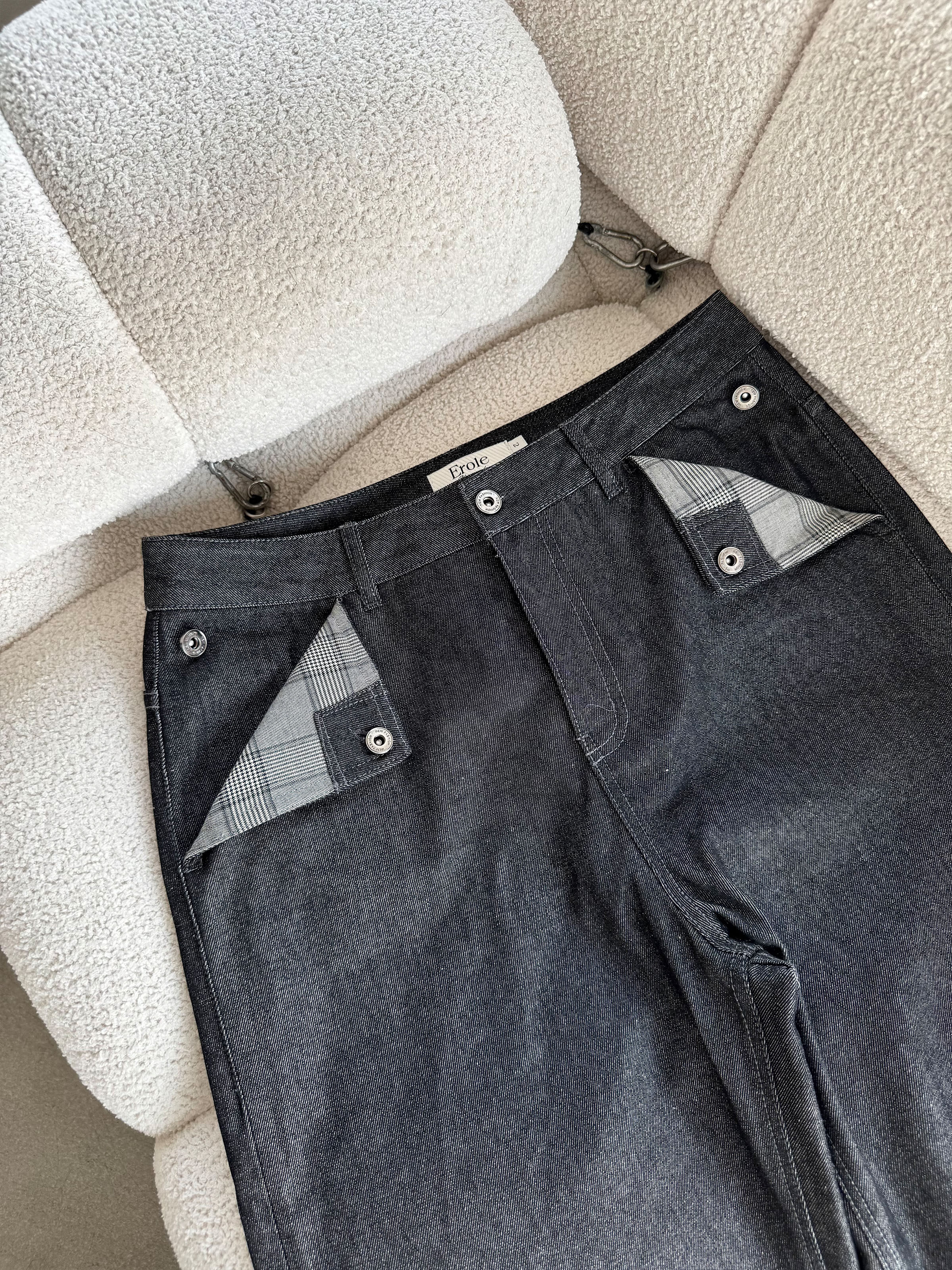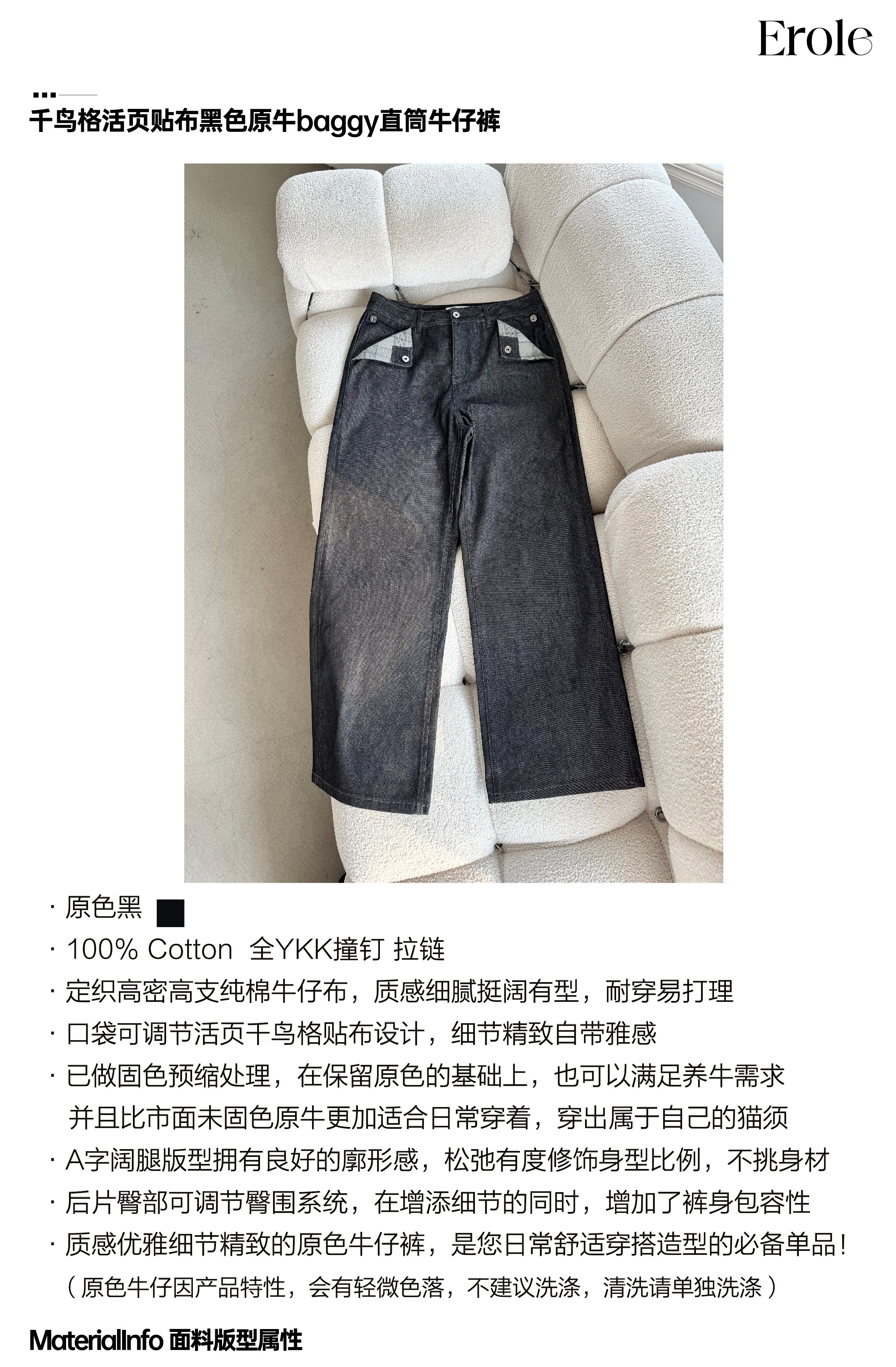 Erole 千鸟格活页贴布百搭黑原牛baggy宽松直筒牛仔裤 全YKK辅料 [Original Page Link]