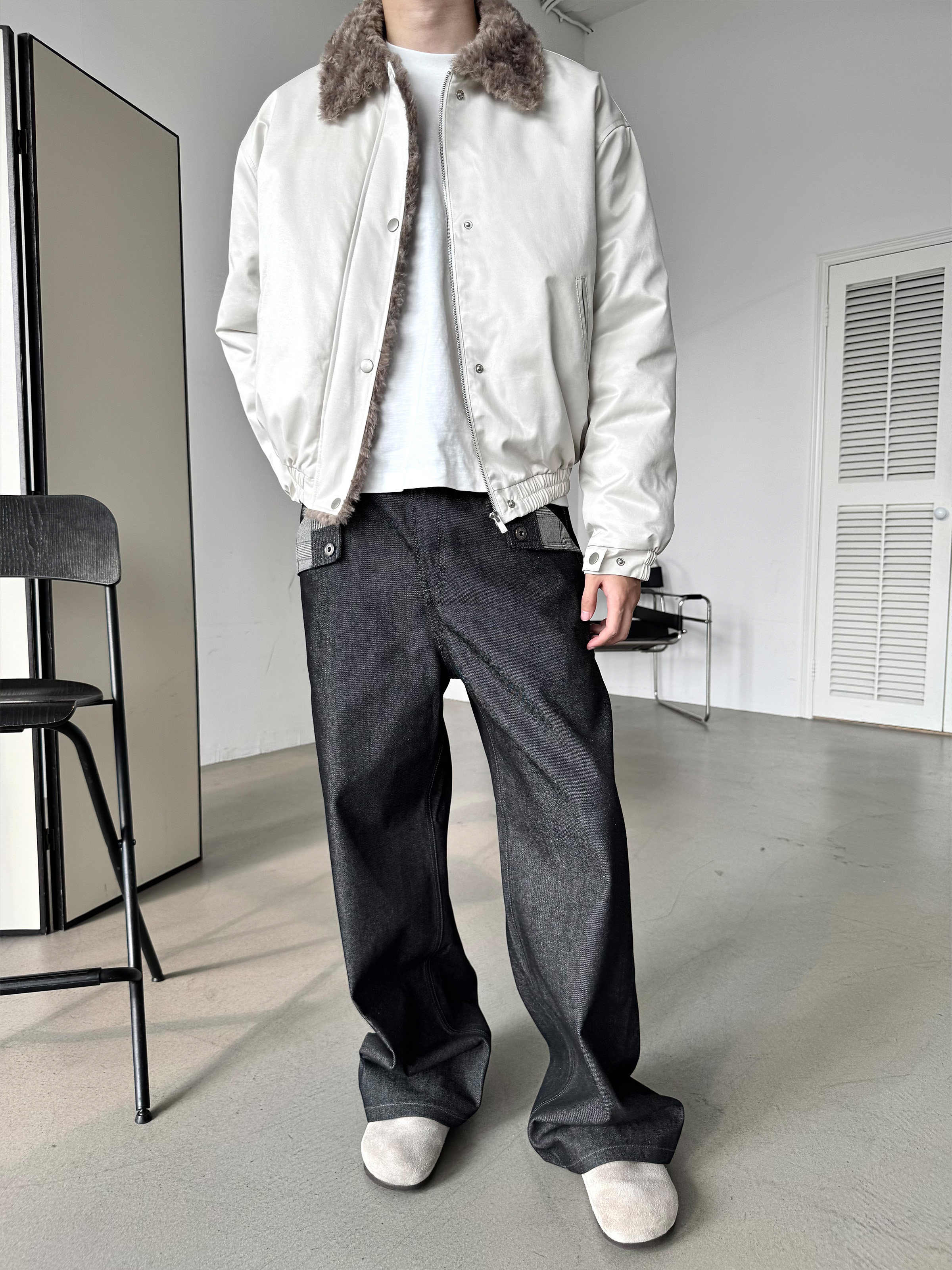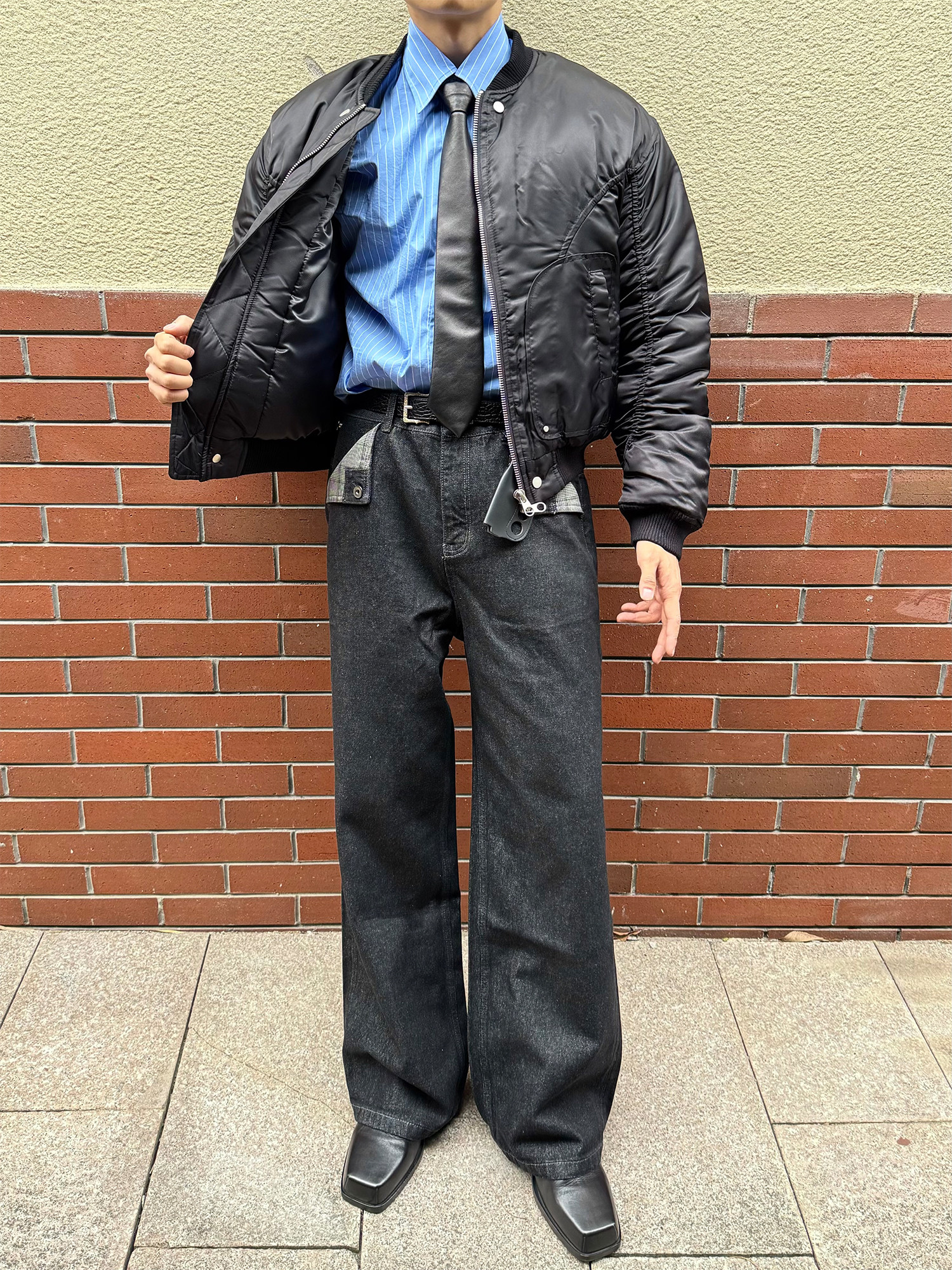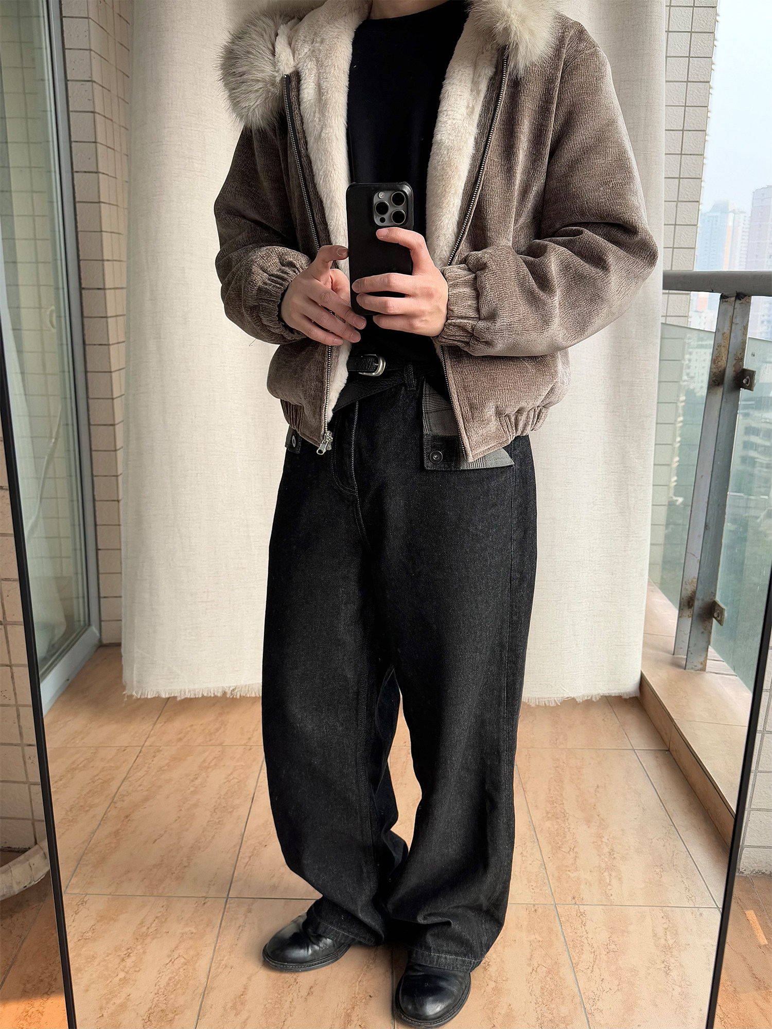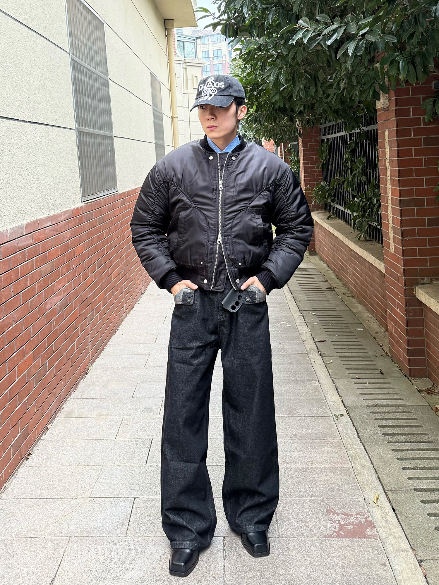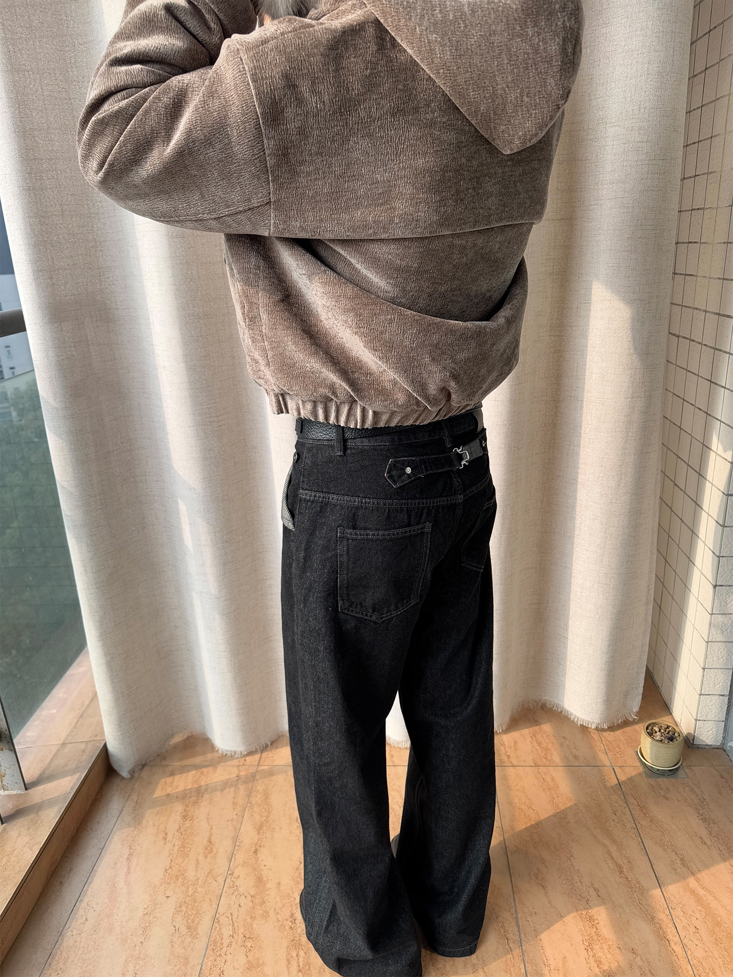 Erole 千鸟格活页贴布百搭黑原牛baggy宽松直筒牛仔裤 全YKK辅料 [Original Page Link]