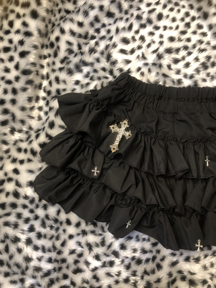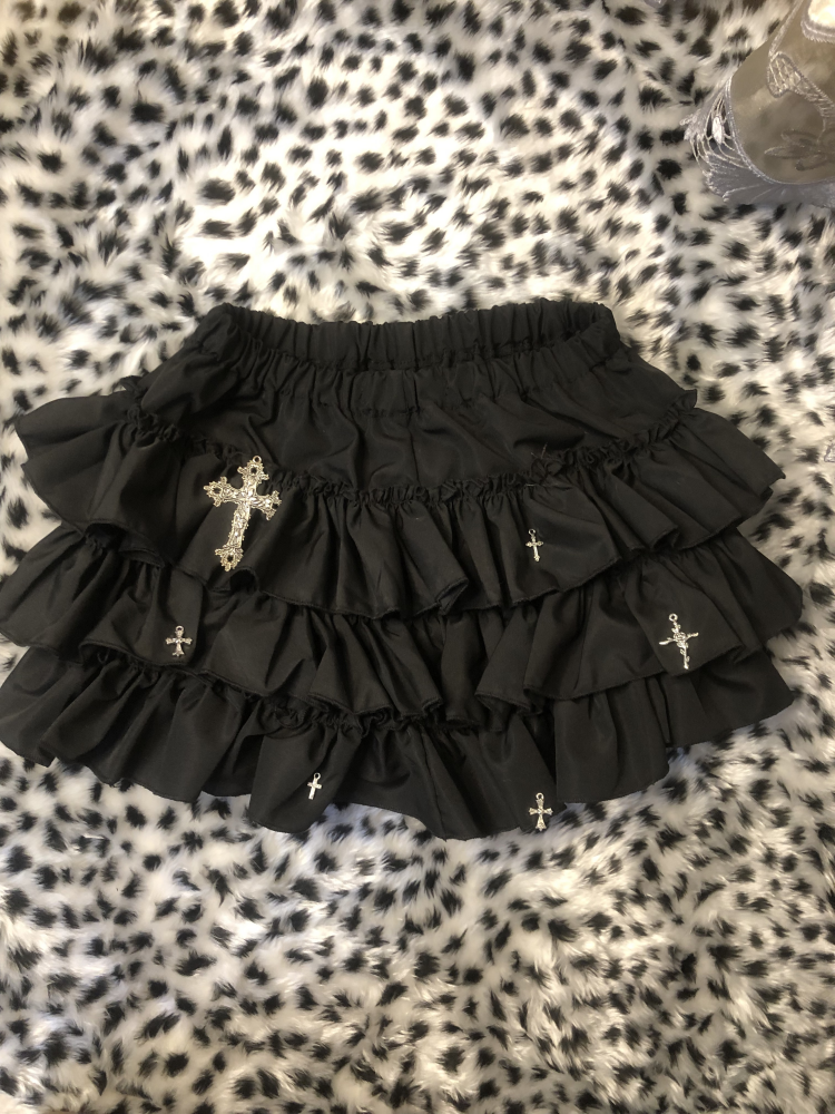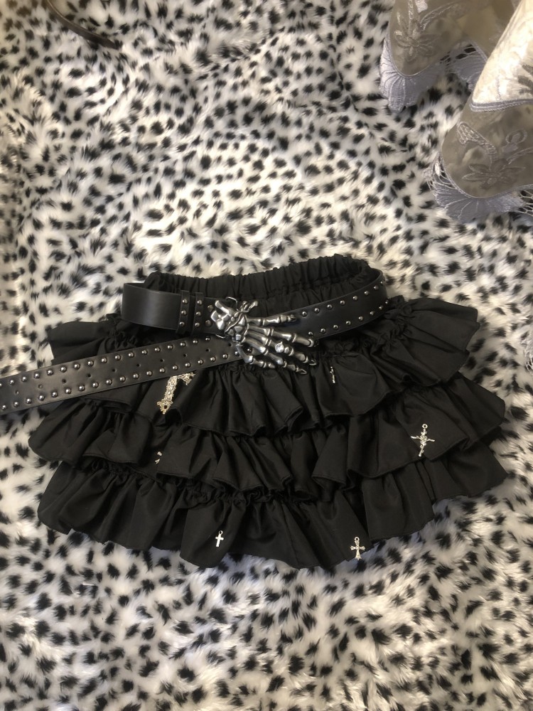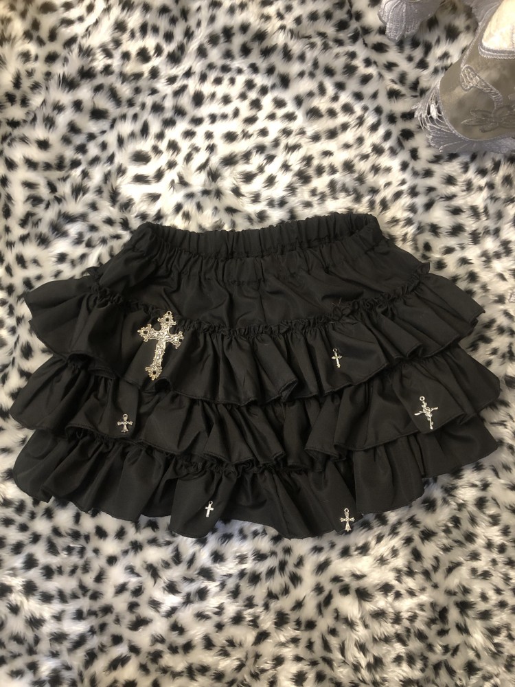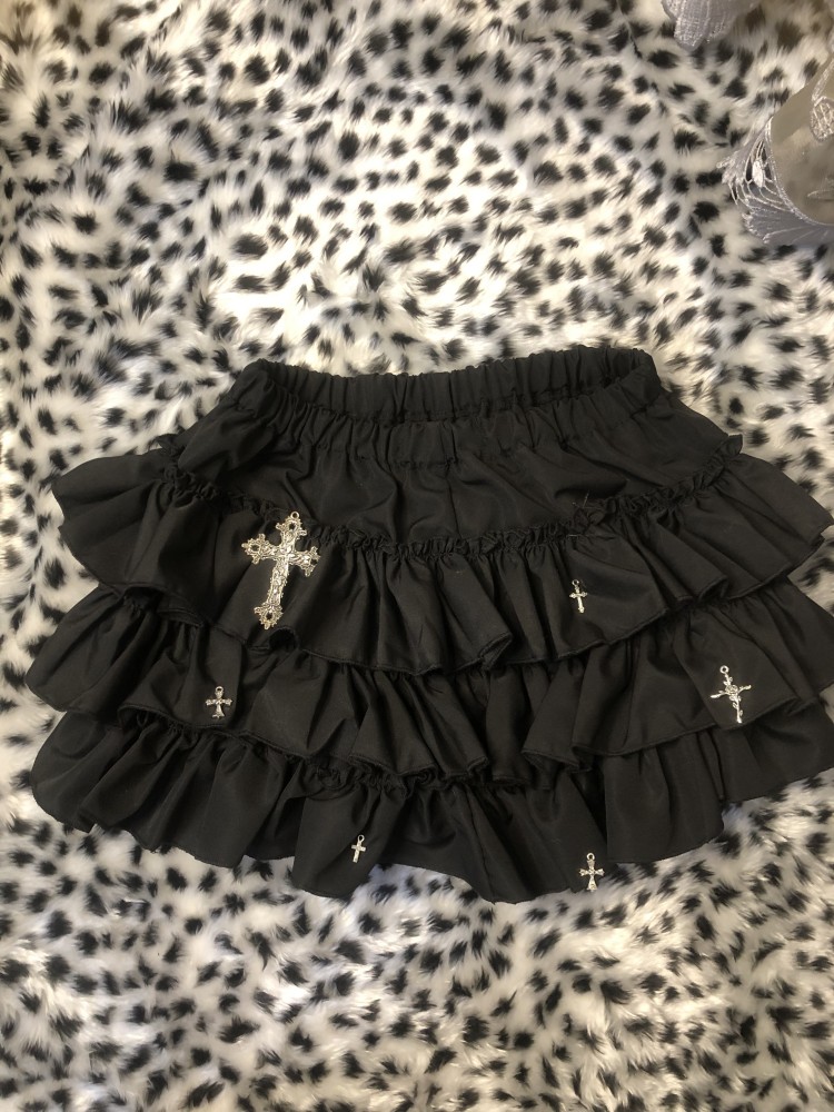 原创千禧辣妹亚文化轻朋克风黑色蛋糕短裙蓬蓬裙高腰防走光半身裙 [Original Page Link]