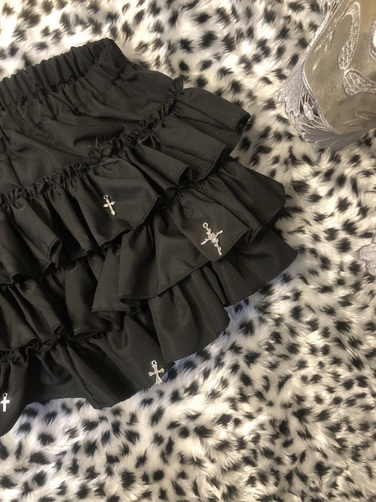 Original millennial hottie subculture light punk style black cake short skirt tutu high waist anti-exposure skirt