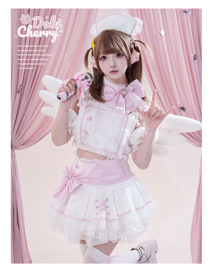 DokiCherry Original Stage Outfit, Tagkita Brand White and Pink Color Scheme Stage Outfit, Cute Underground Idol Set