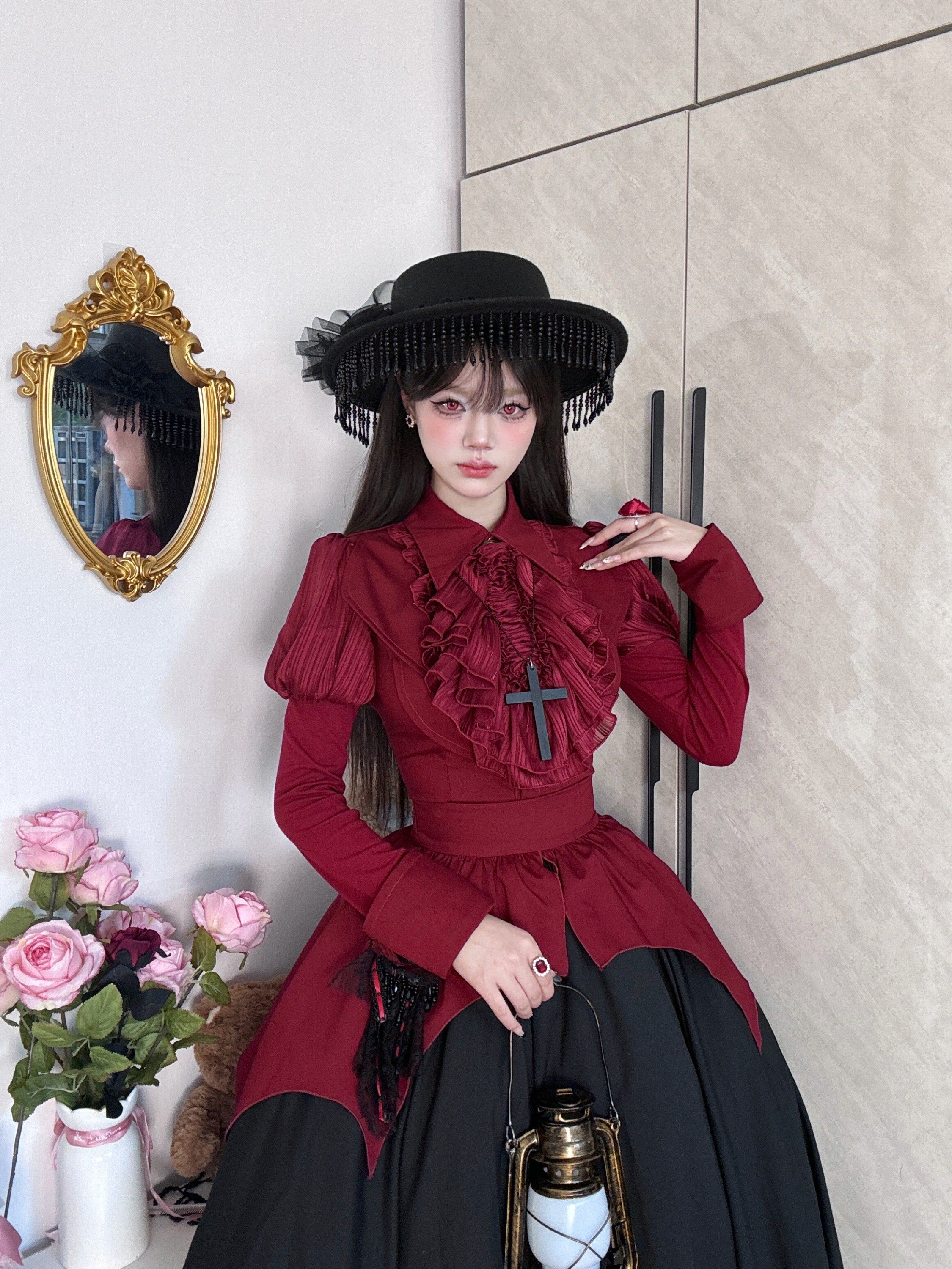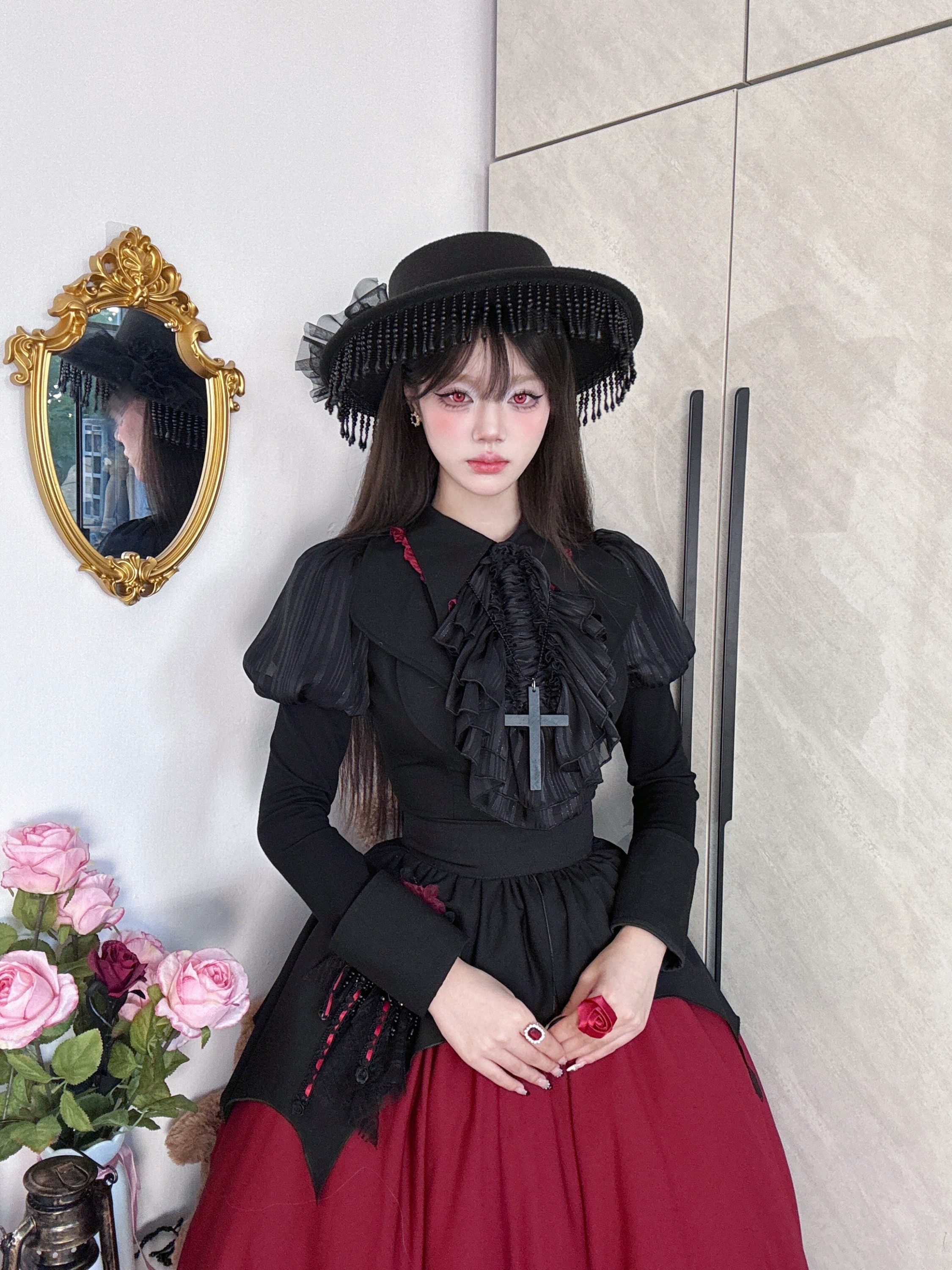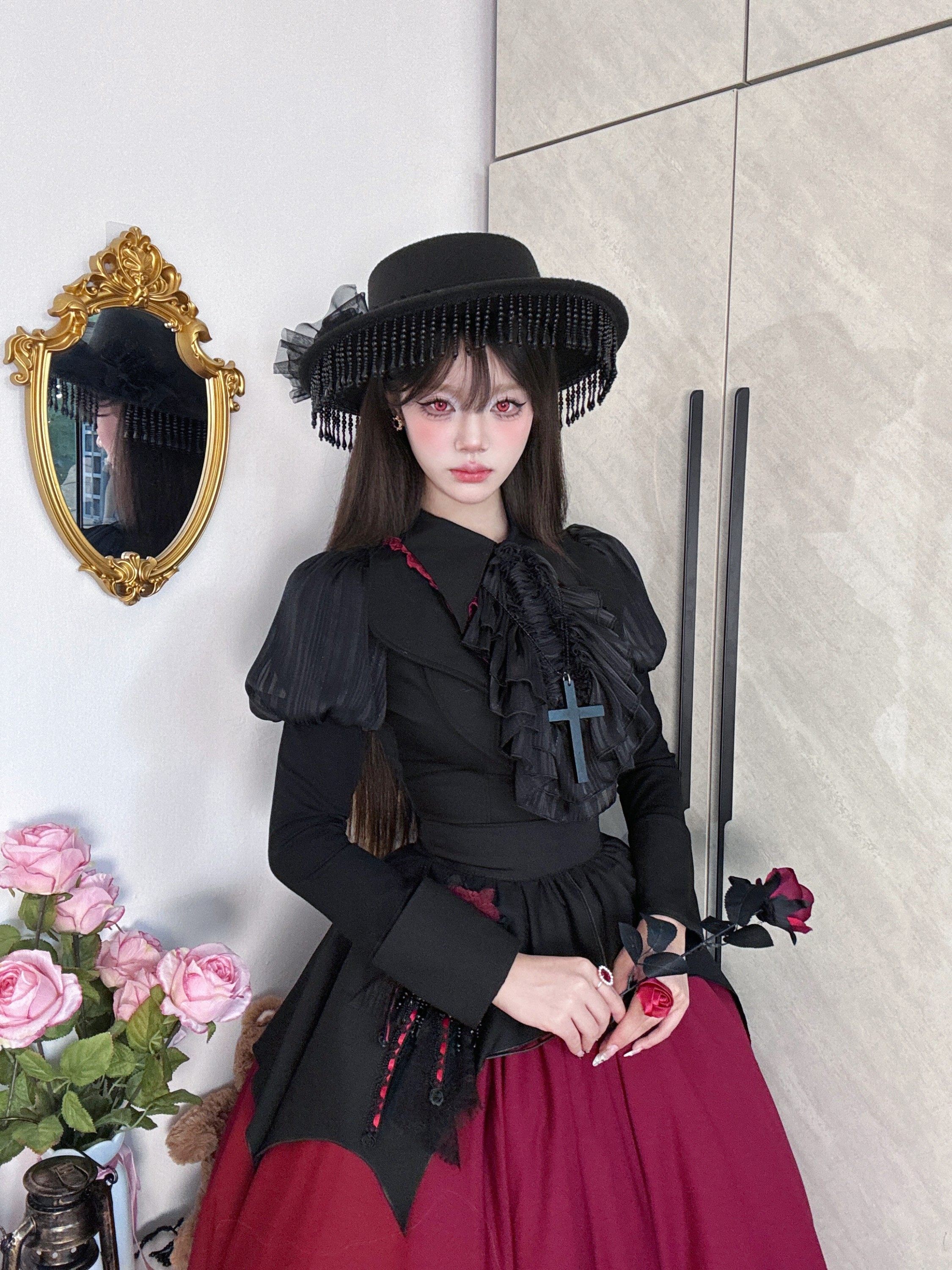 Dragon Cat Lolita Original Homemade Bib, Small Accessories, Bow Tie, Shirt, Gay Outfit with Black and Red Gothic Tail