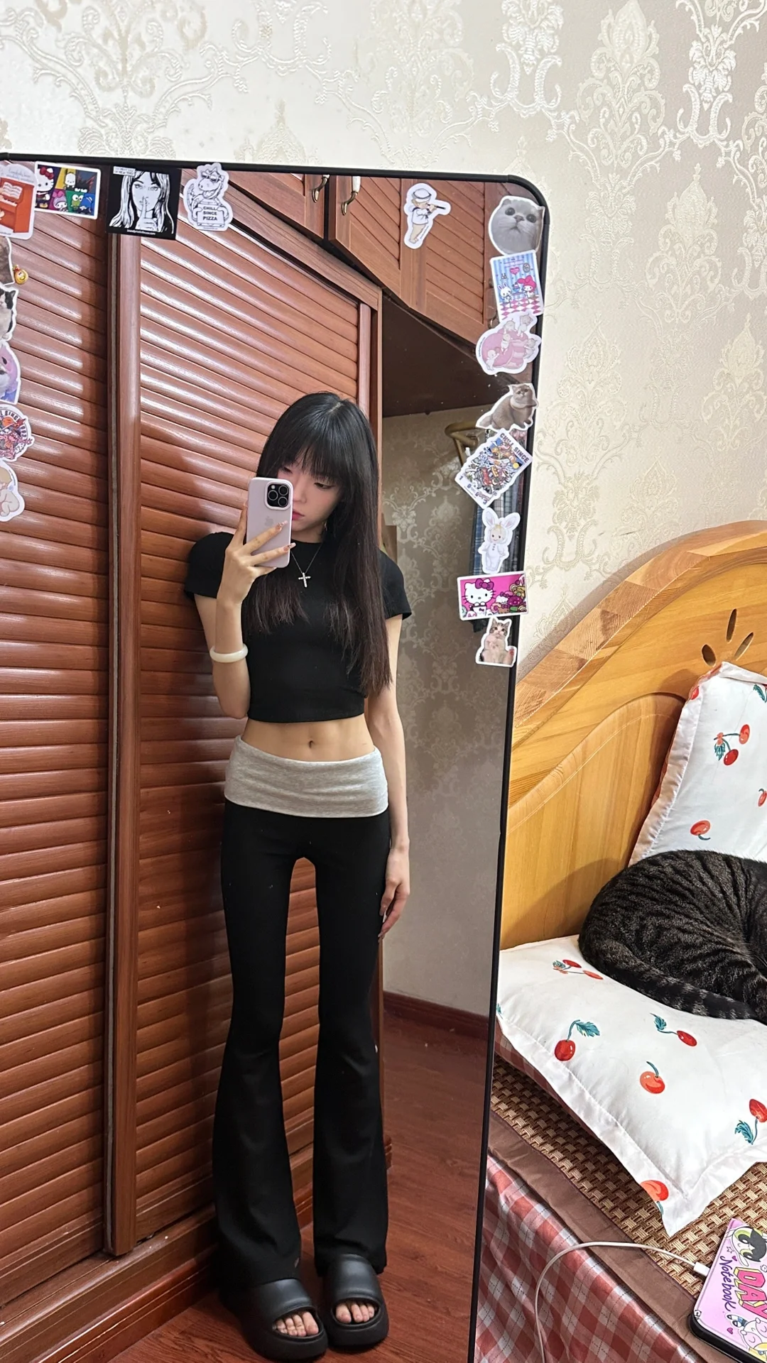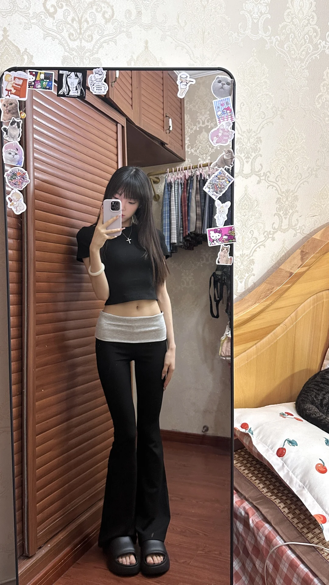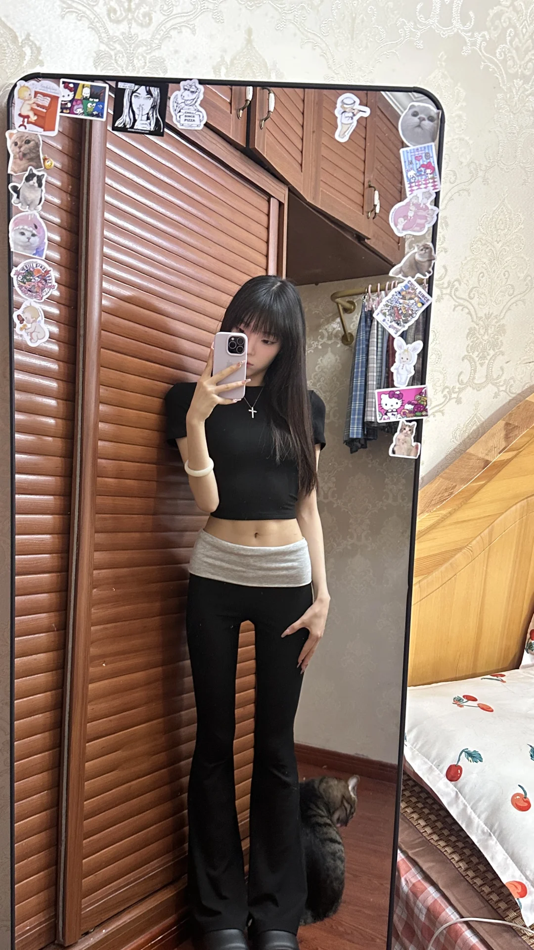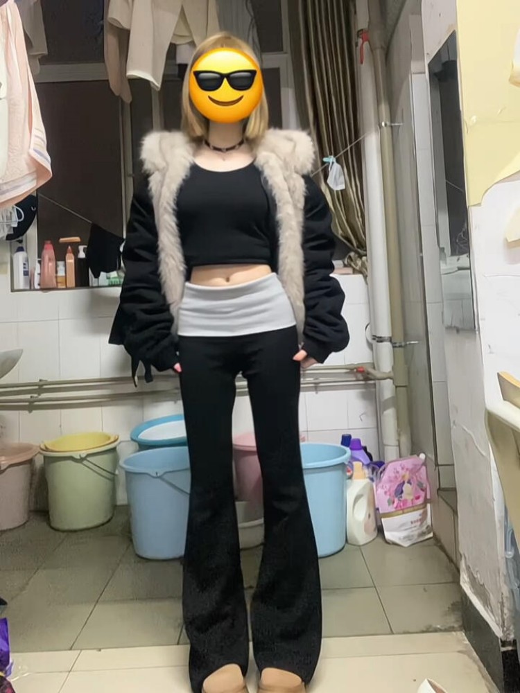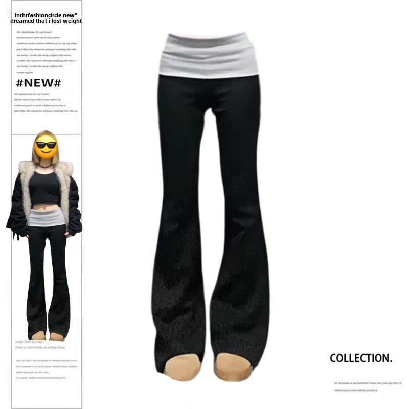 大码慵懒风翻边低腰微喇瑜伽卫裤女2025春辣妹修身显瘦运动休闲裤 [Original Page Link]