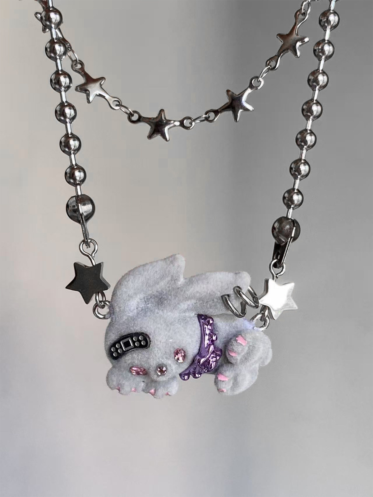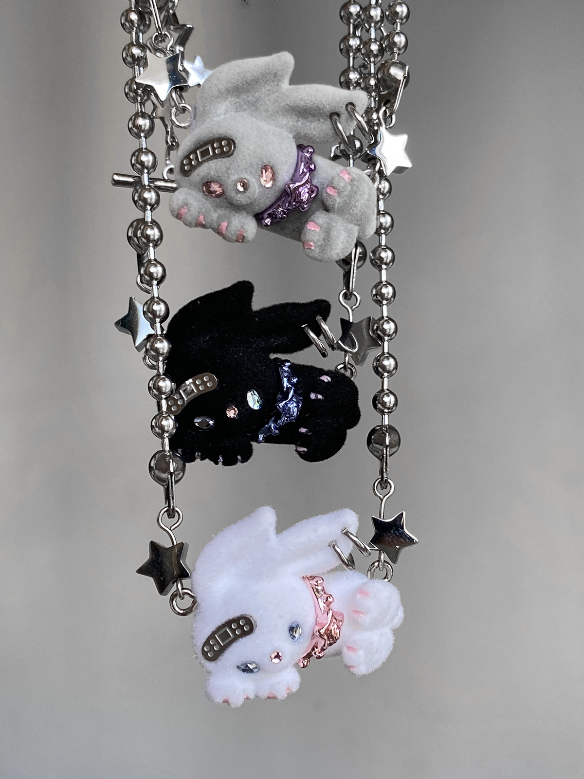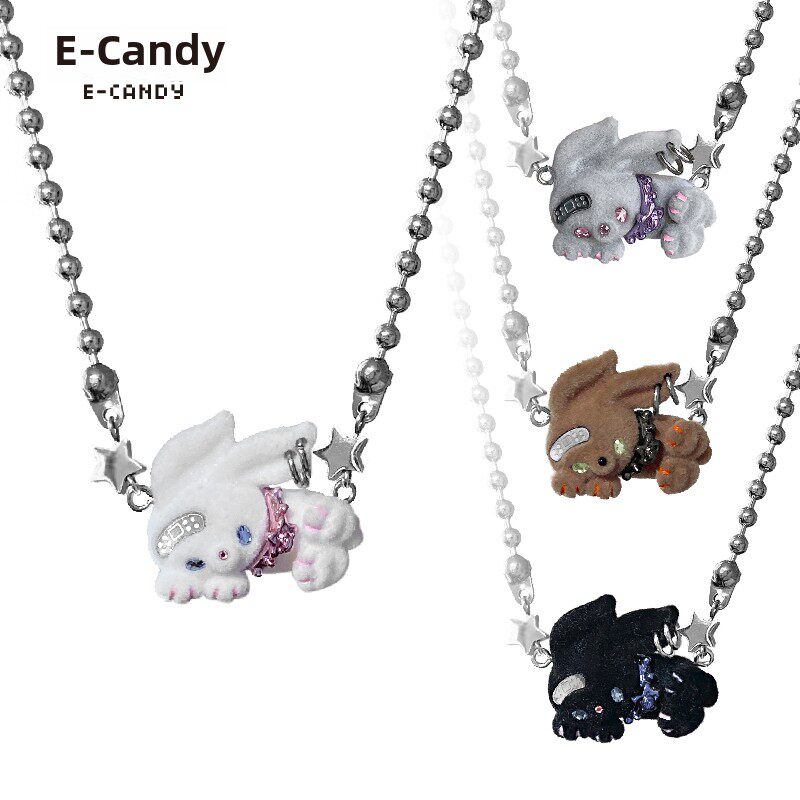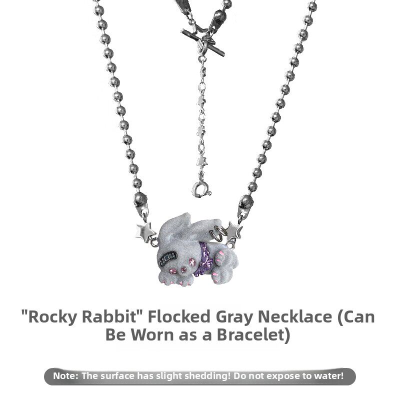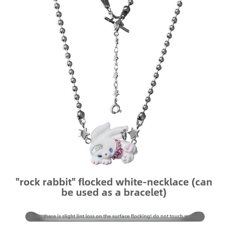电子糖部原创[摇滚兔子]黑白棕植绒可爱朋克叛逆铆钉项炼手炼两用 [Original Page Link]