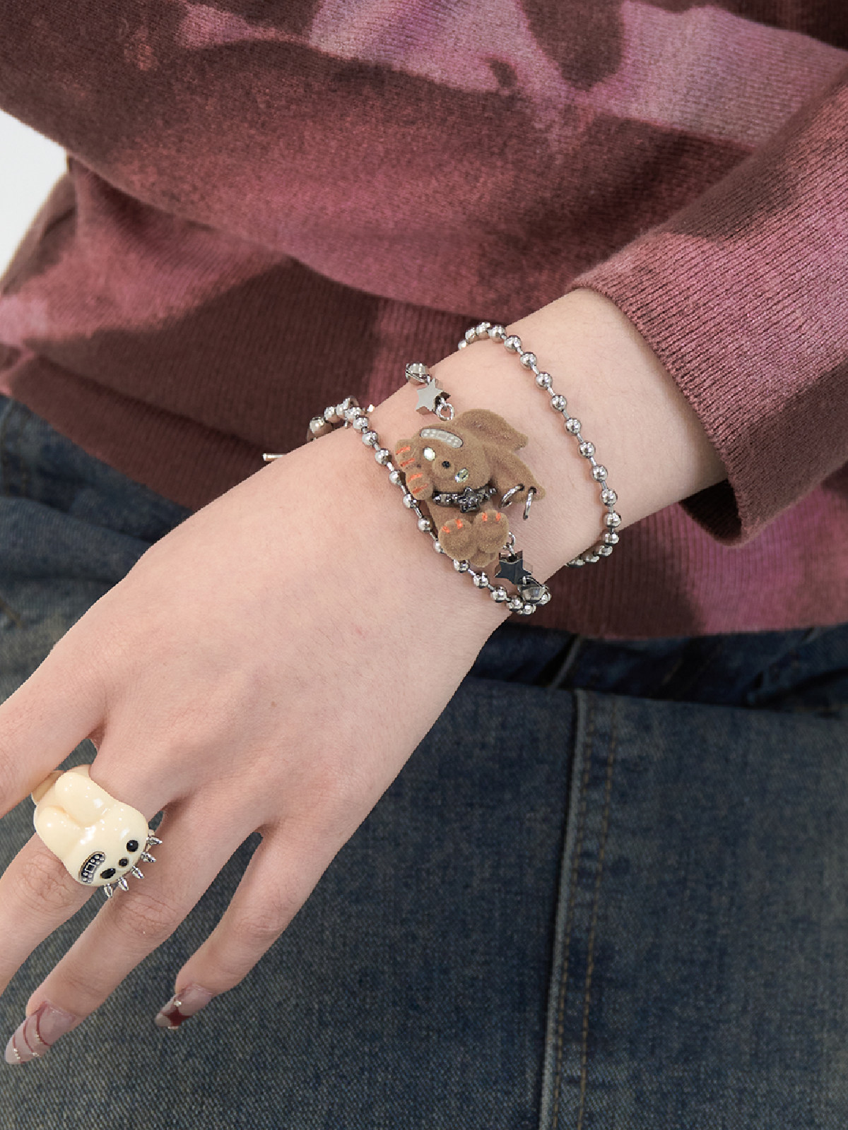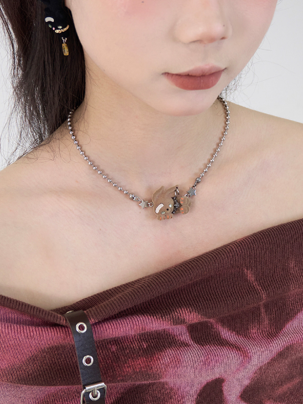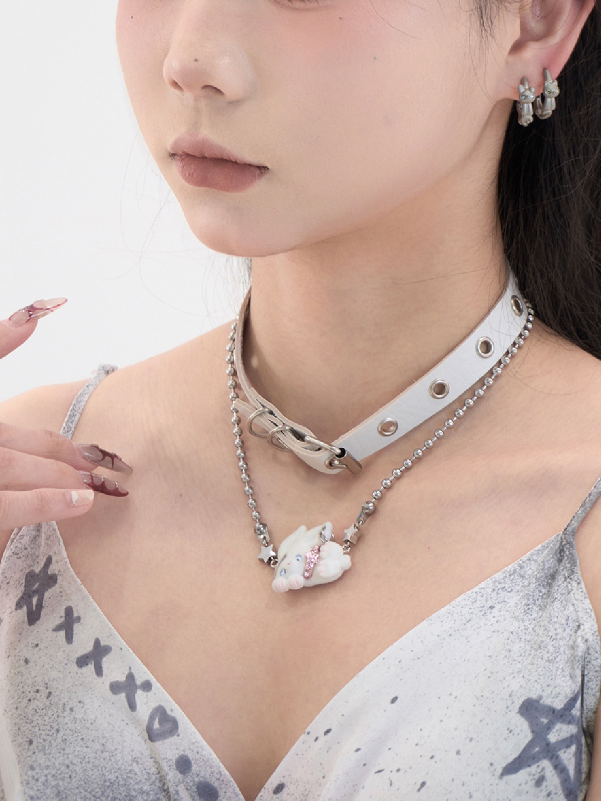 电子糖部原创[摇滚兔子]黑白棕植绒可爱朋克叛逆铆钉项炼手炼两用 [Original Page Link]