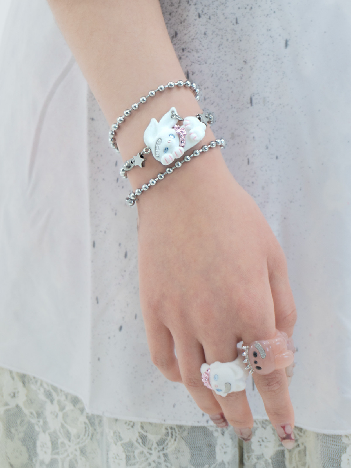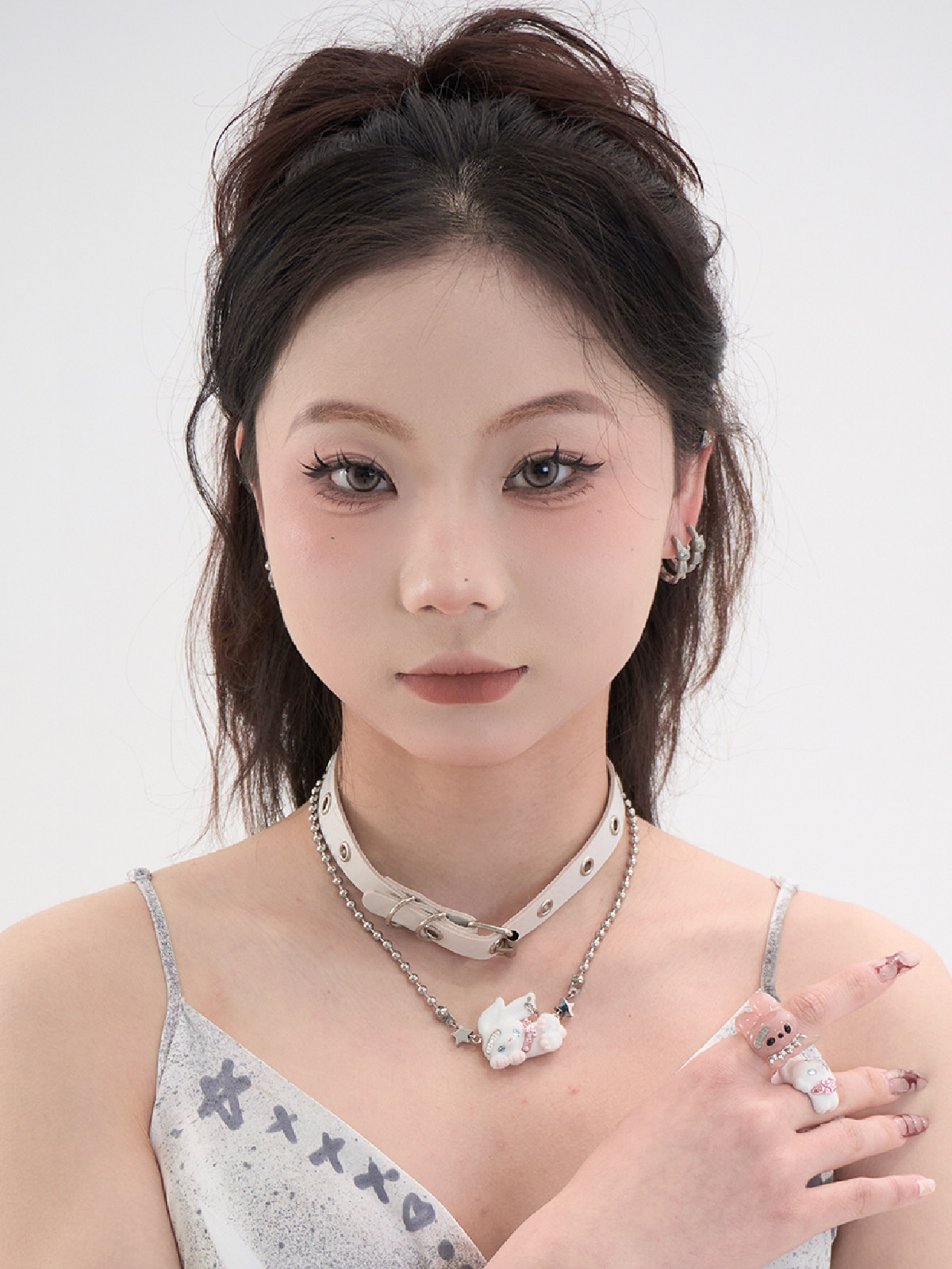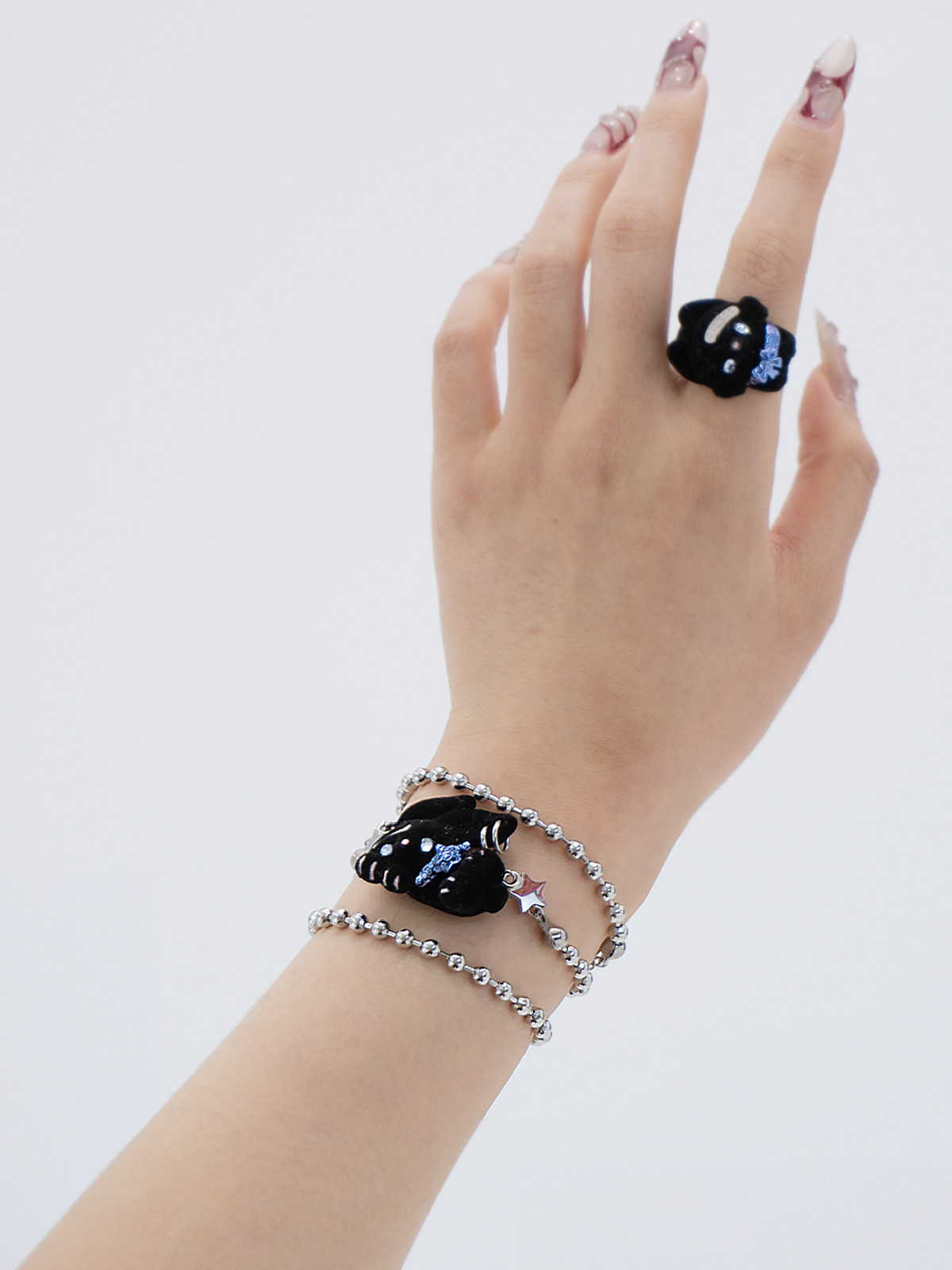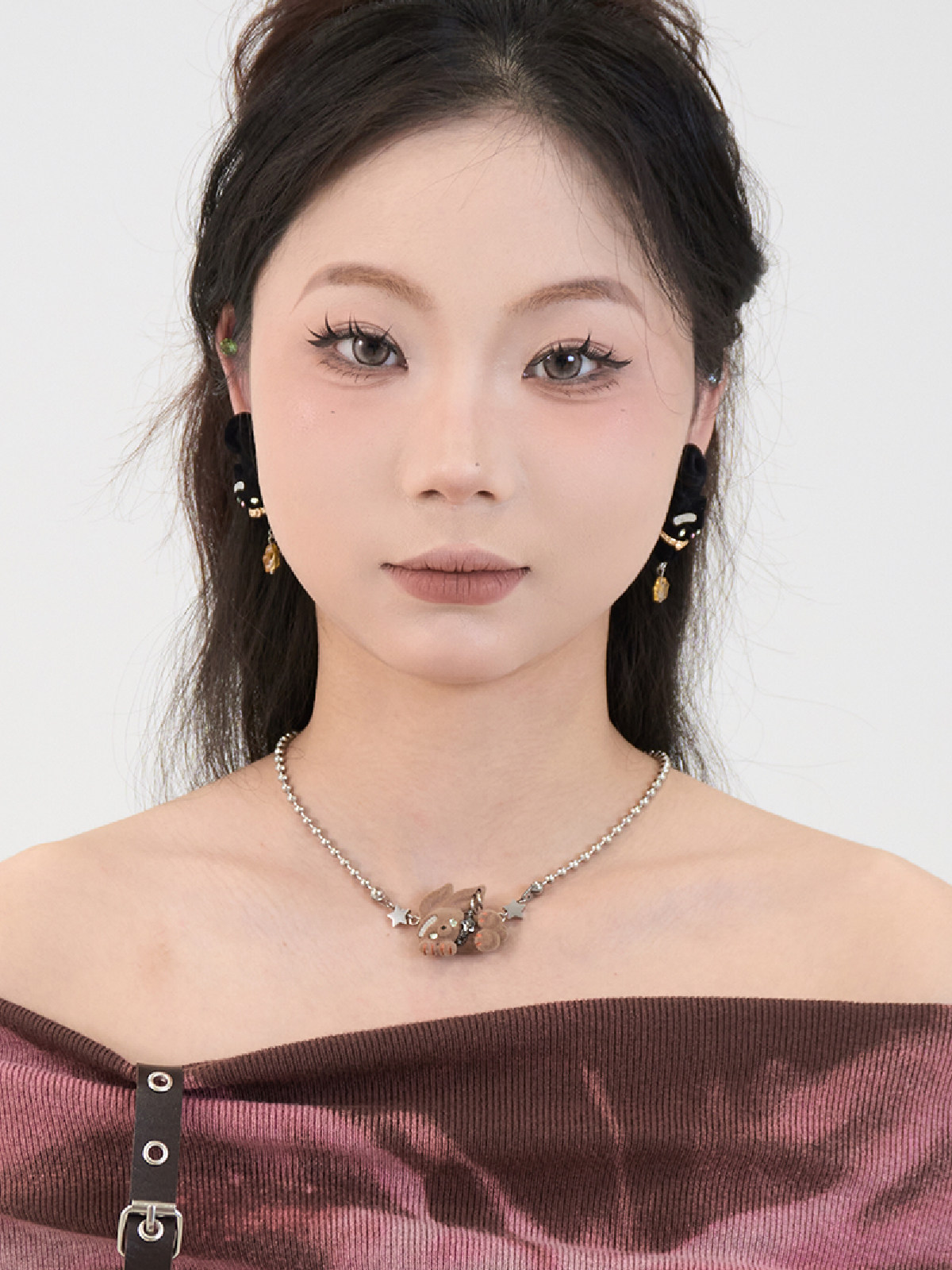电子糖部原创[摇滚兔子]黑白棕植绒可爱朋克叛逆铆钉项炼手炼两用 [Original Page Link]