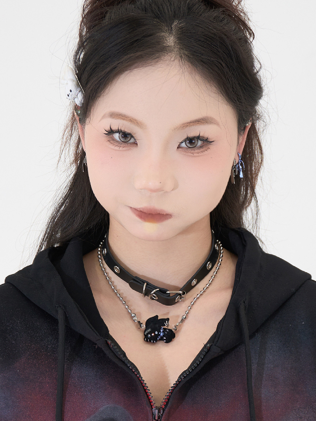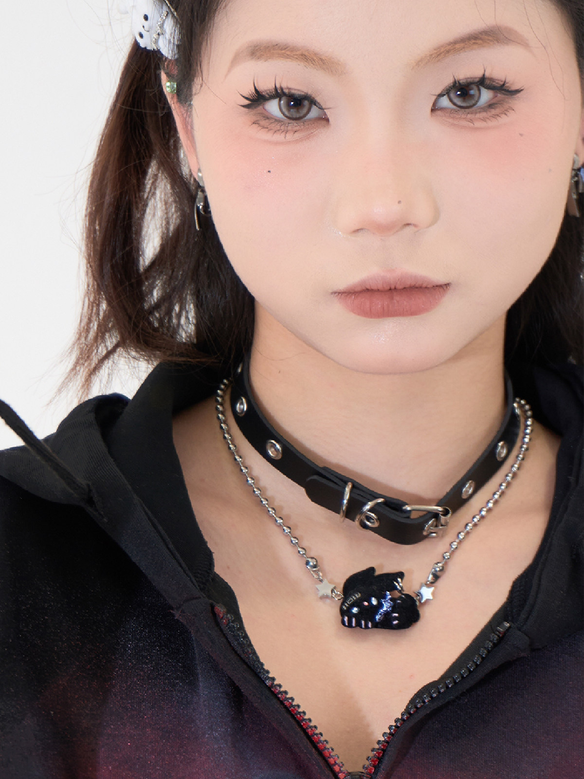 Original by Electronic Candy Department [Rock Rabbit] Black, White, Brown Flocked Cute Punk Rebellious Rivet Necklace/Bracelet (Dual Use)