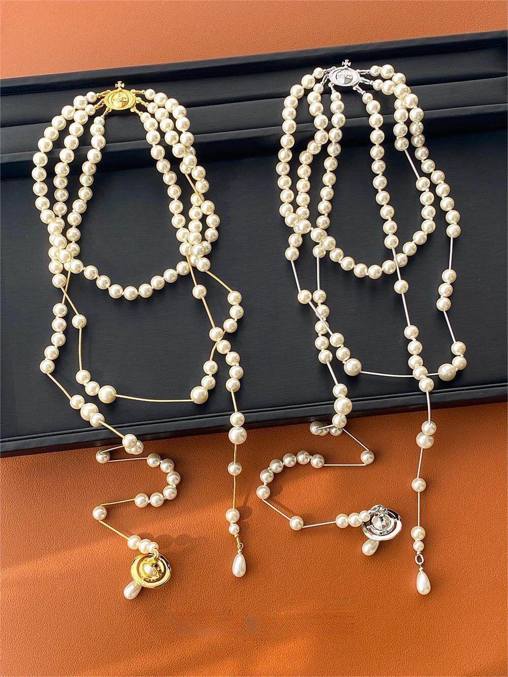 Double-layered pearl Saturn necklace, a luxurious and sophisticated choker for women, a multi-layered niche collarbone necklace.