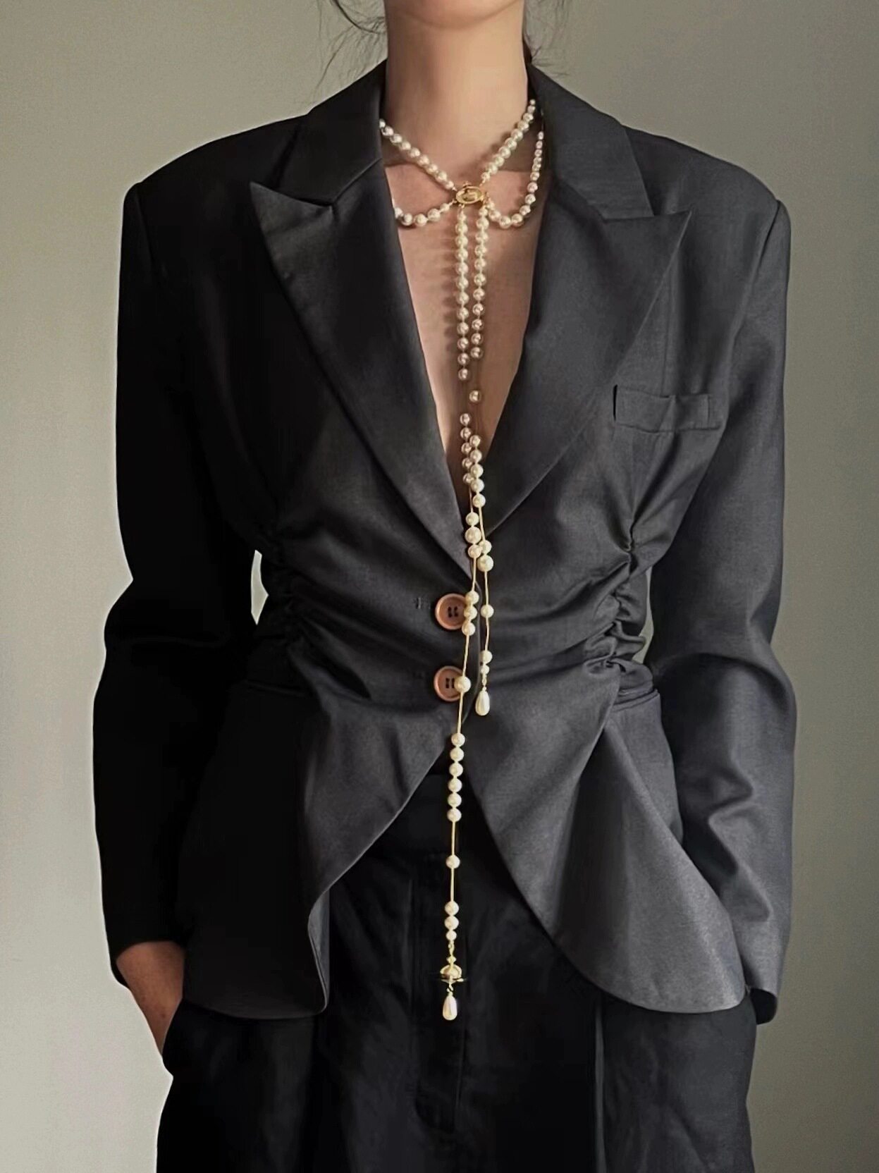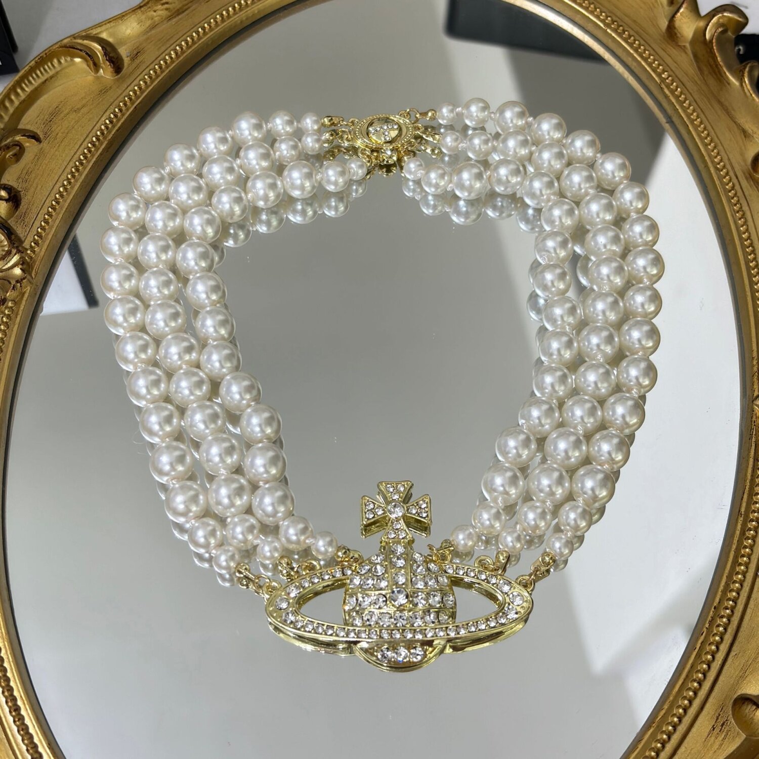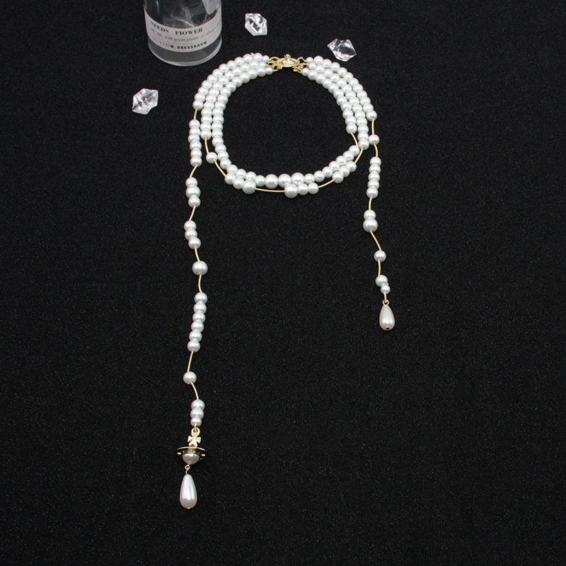 双层珍珠土星项炼女轻奢高级感choker颈炼礼服配饰多层小众锁骨炼 [Original Page Link]
